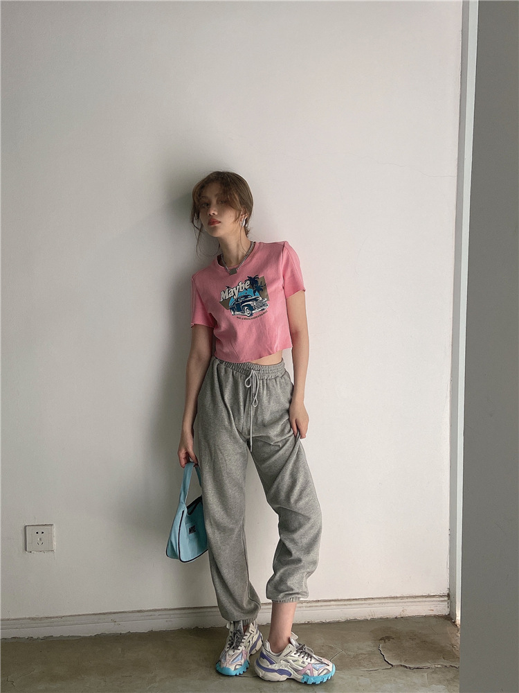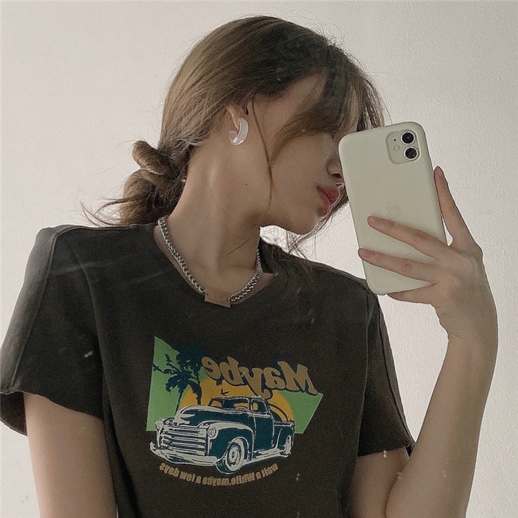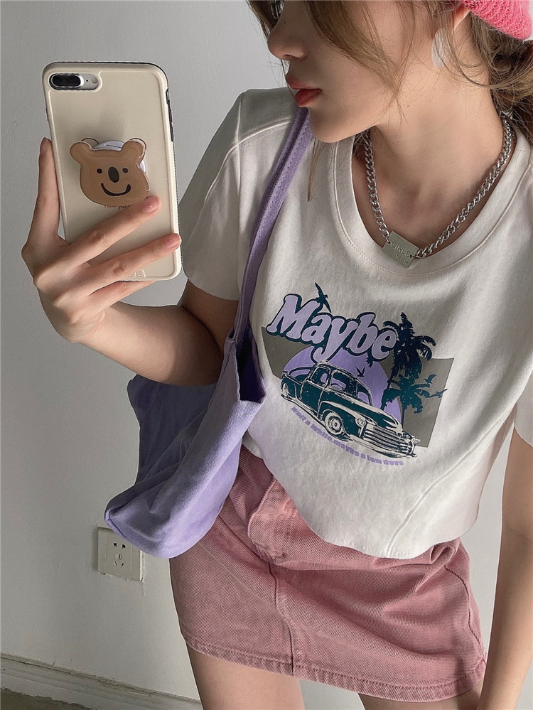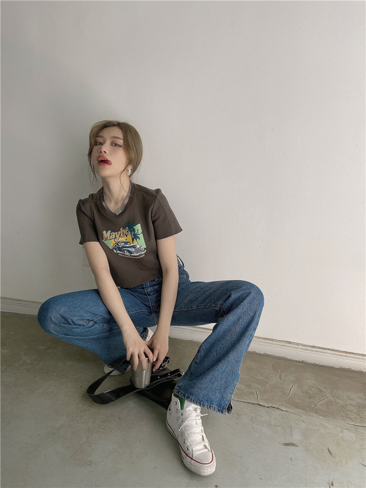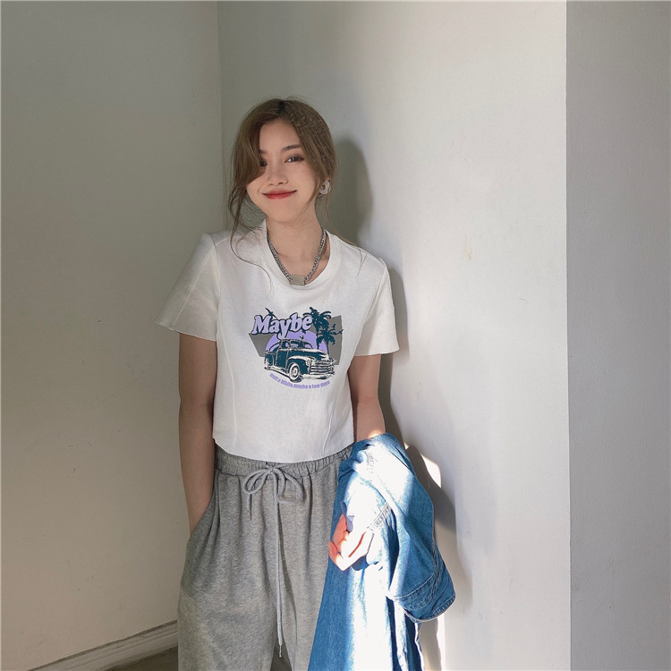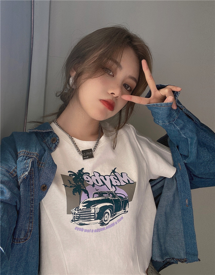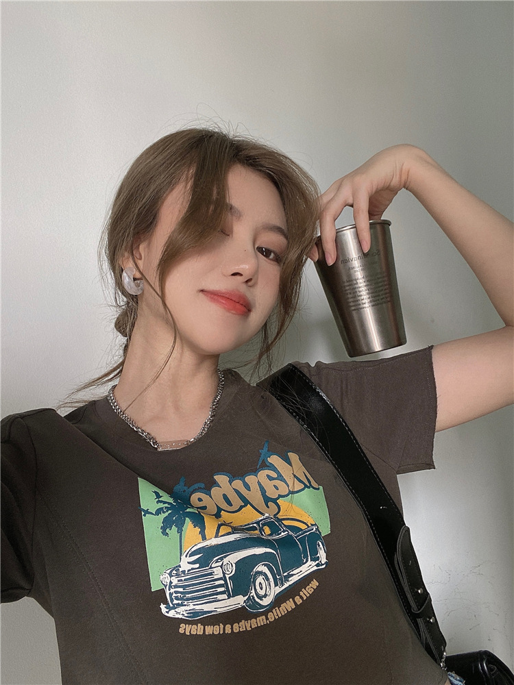 韩版ins印花T恤女夏季宽松短款露脐chic港味2025年新款短袖上衣潮