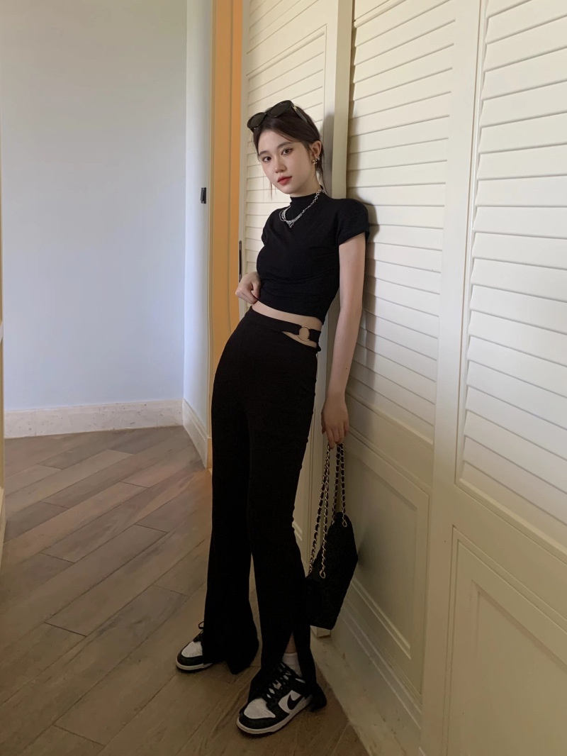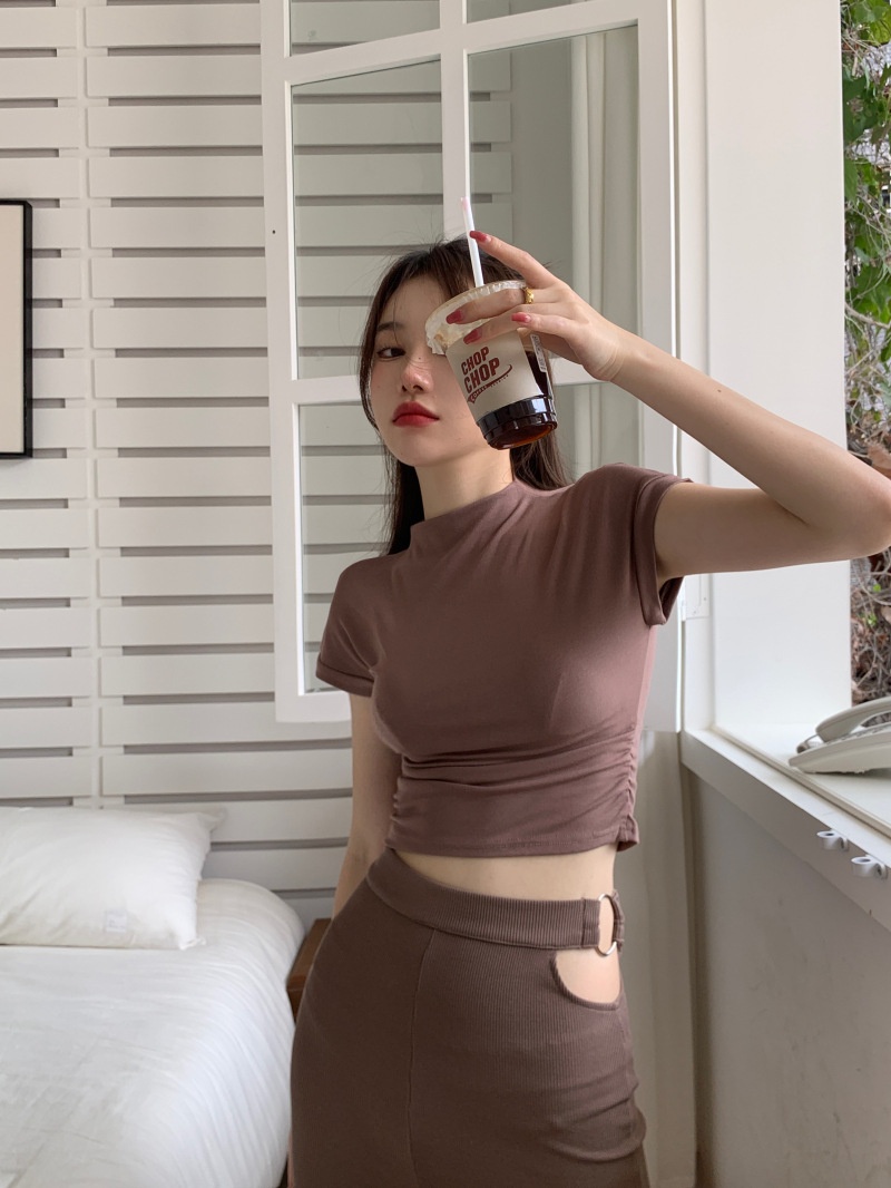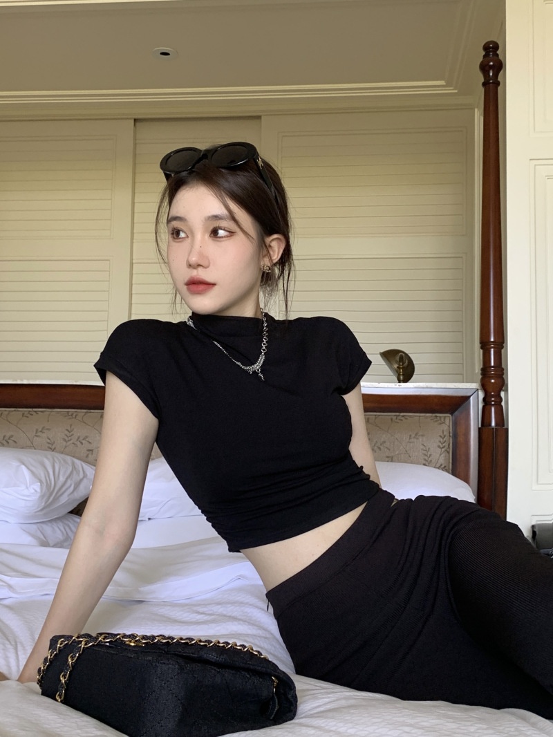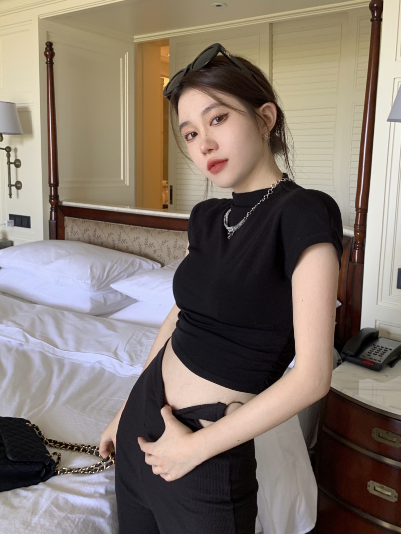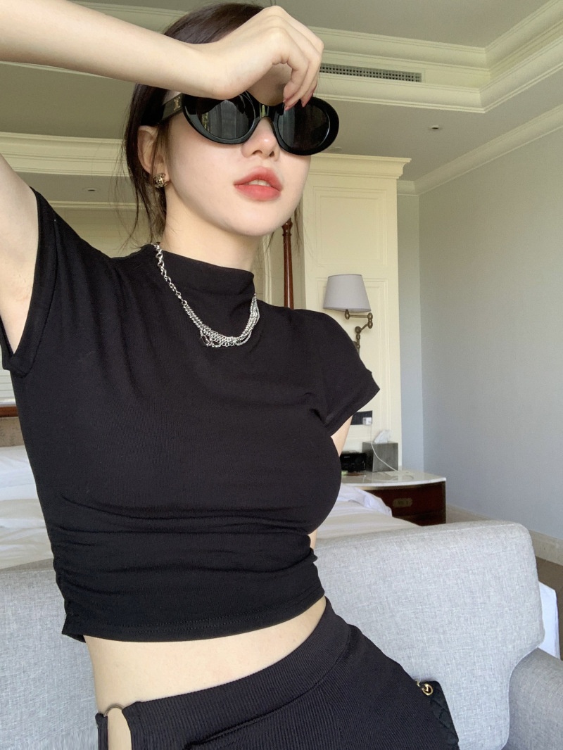 辣妹半高领短袖T恤女2025夏季设计感修身性感修身内搭上衣打底衫