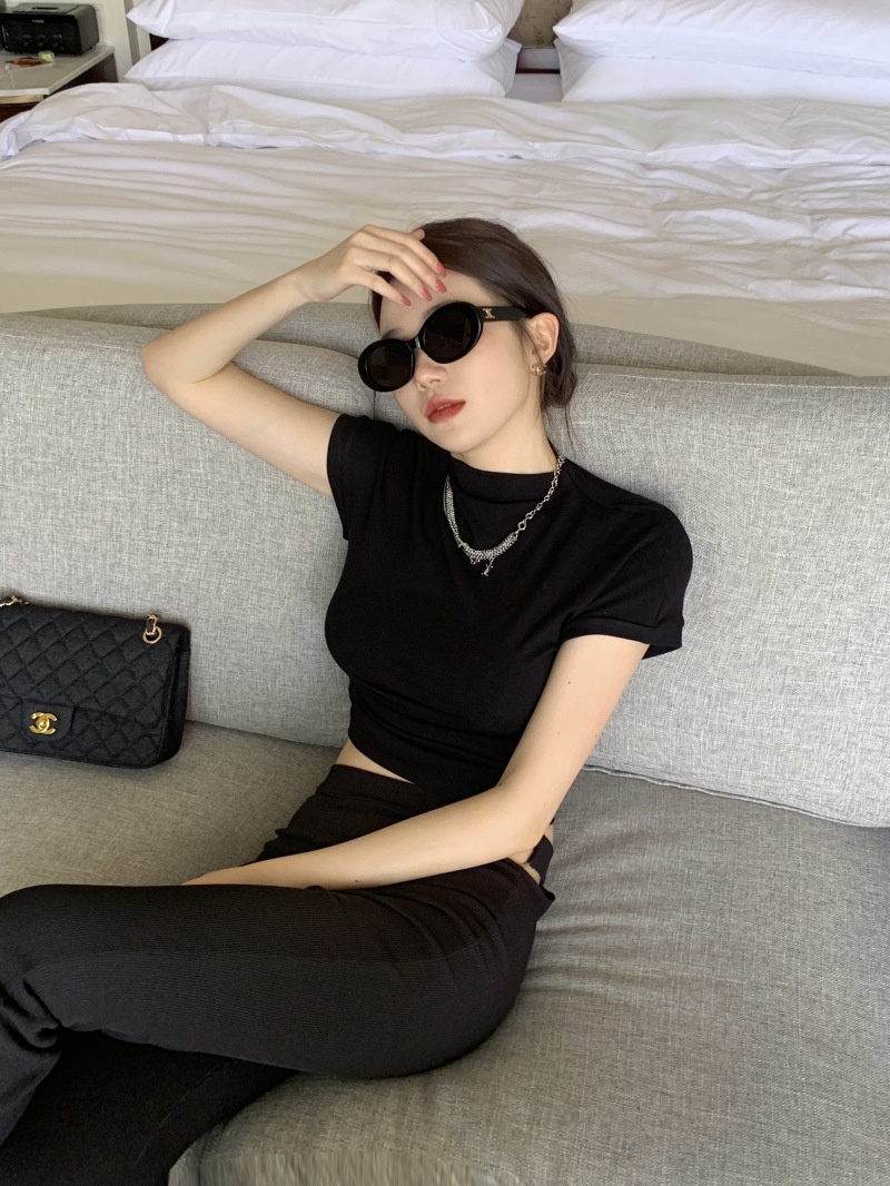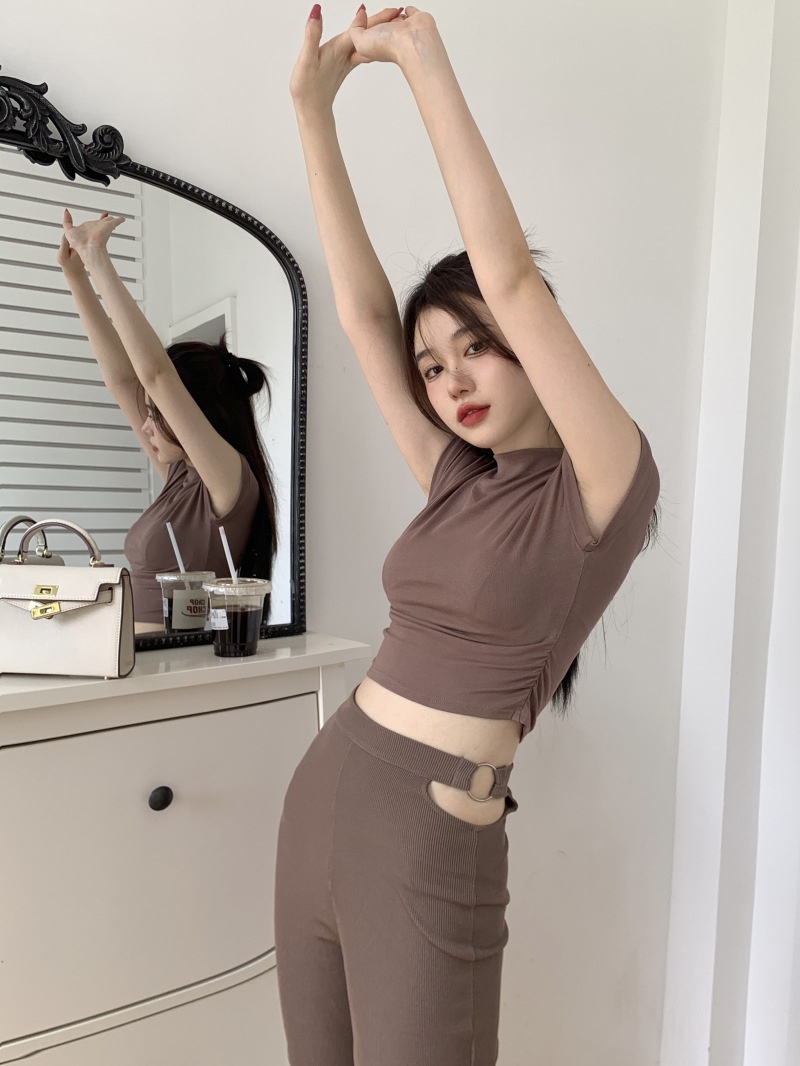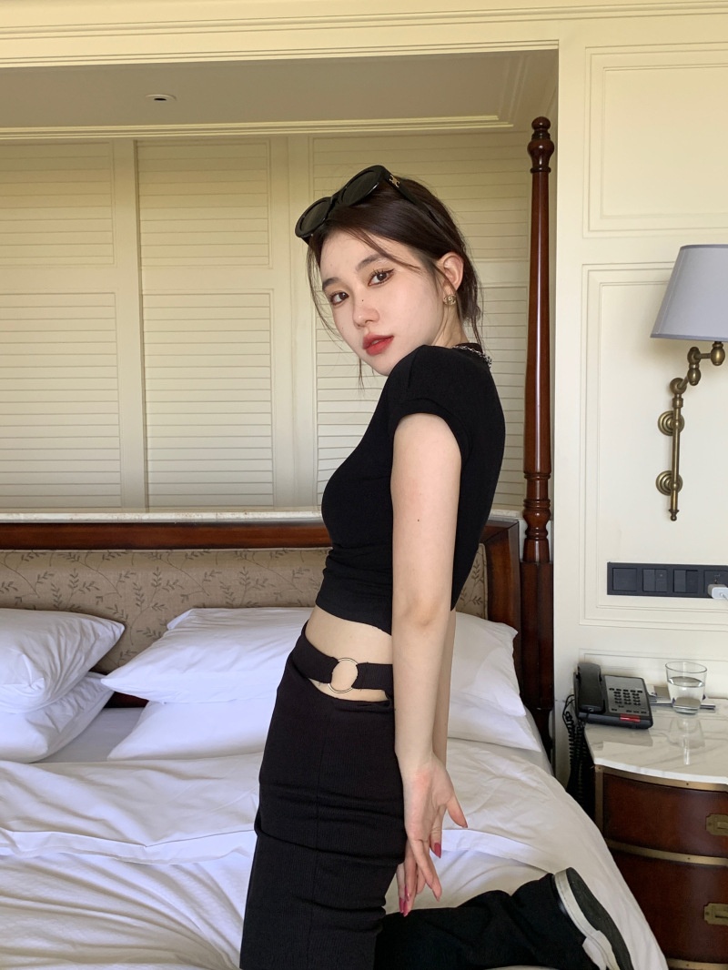 夏季短款纯色法式针织薄款挂脖吊带性感辣妹外穿露背加工定制上衣