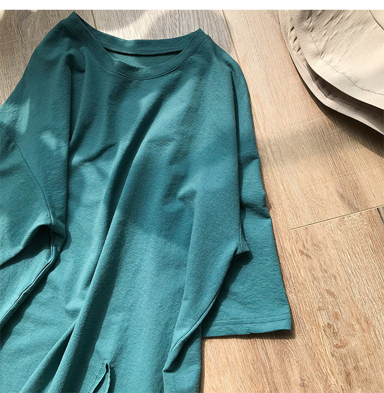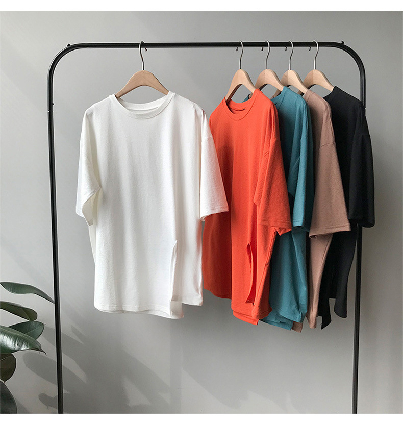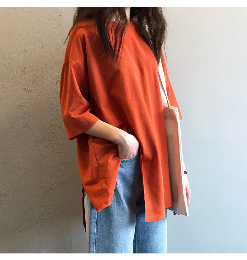 短袖T恤女2025夏季新款宽松中长款性感不规则开叉学生上衣服女潮