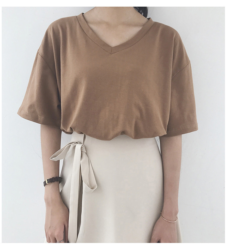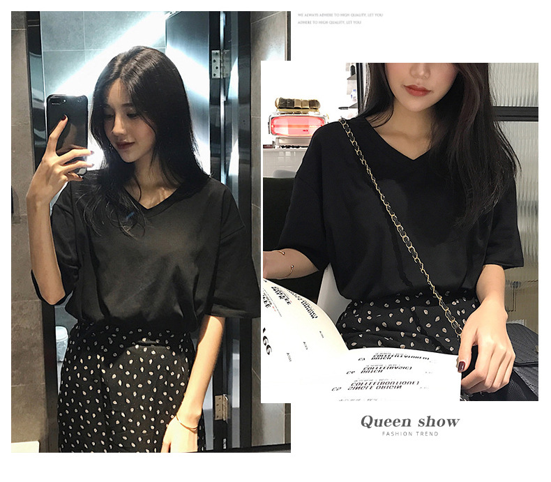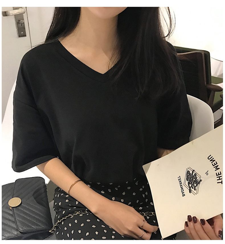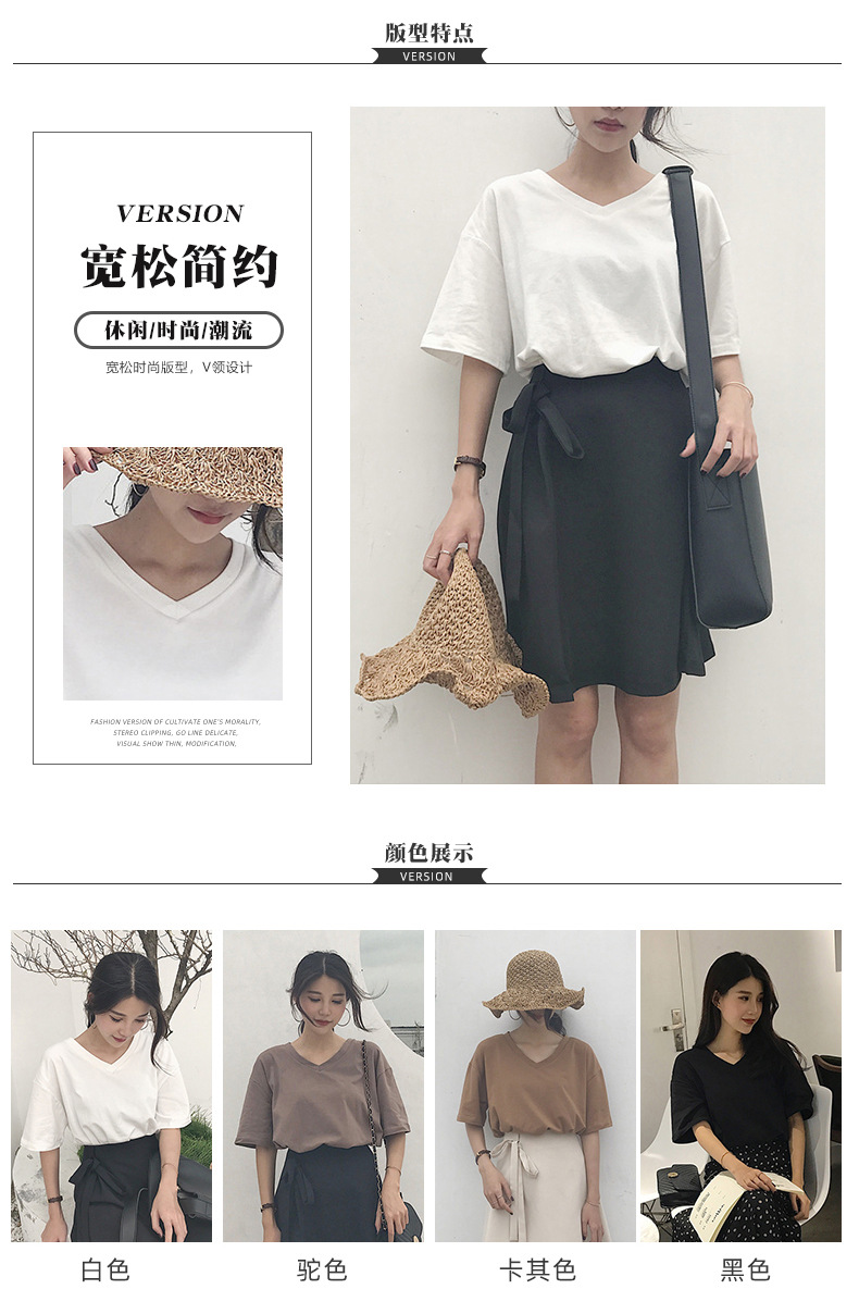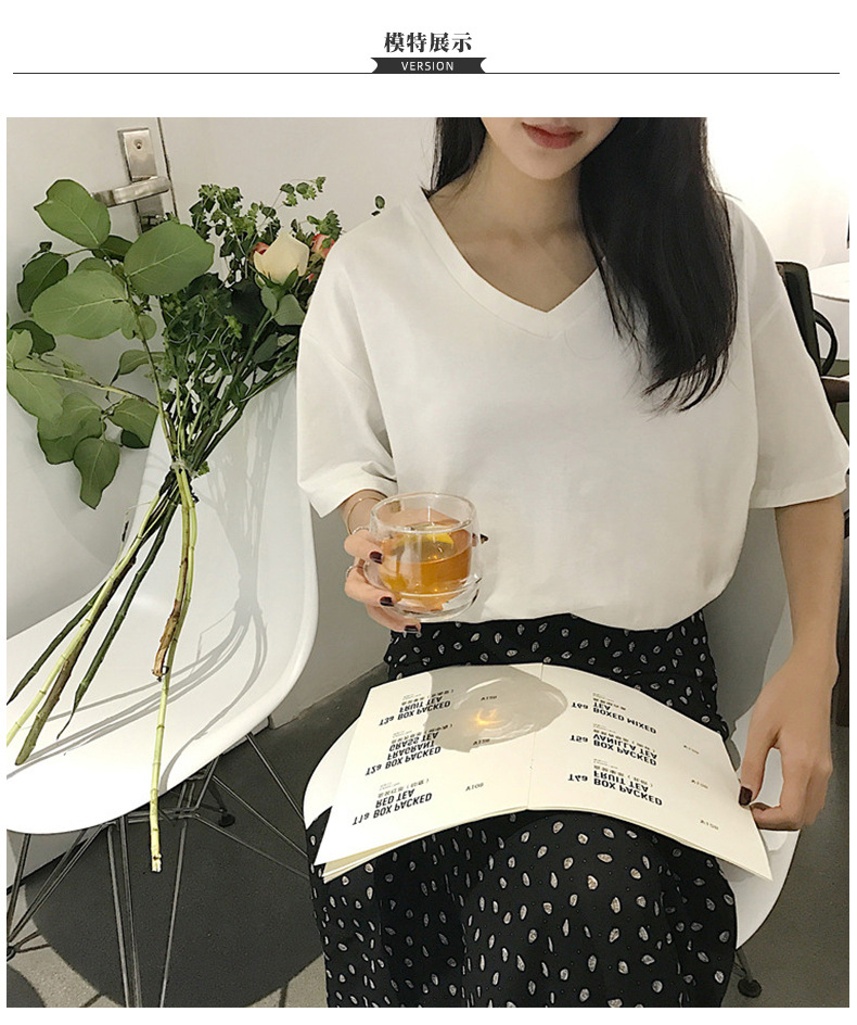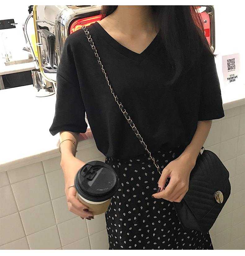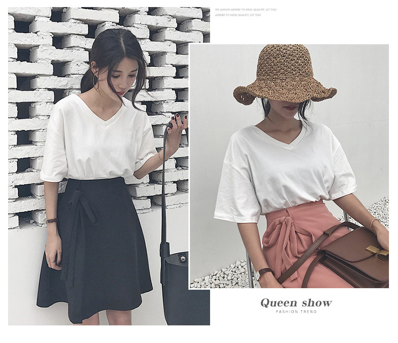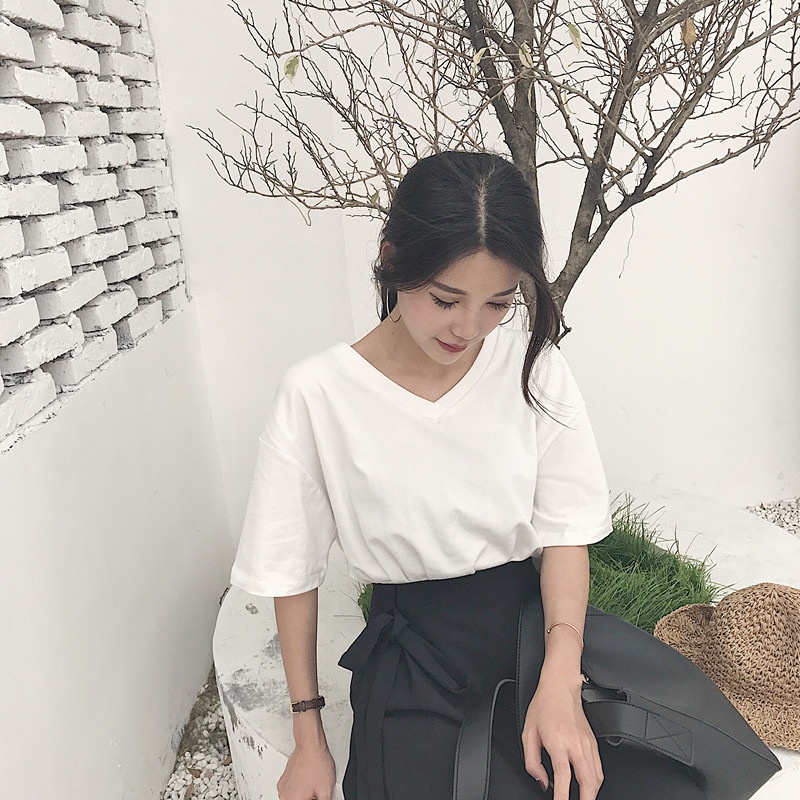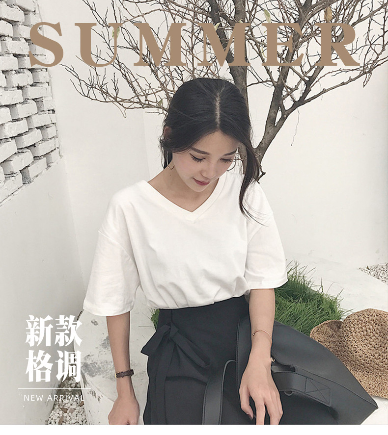 白色V领短袖T恤女潮2025夏季新款性感锁骨显瘦学生纯色宽松上衣