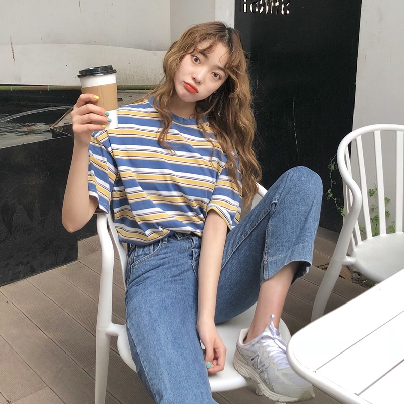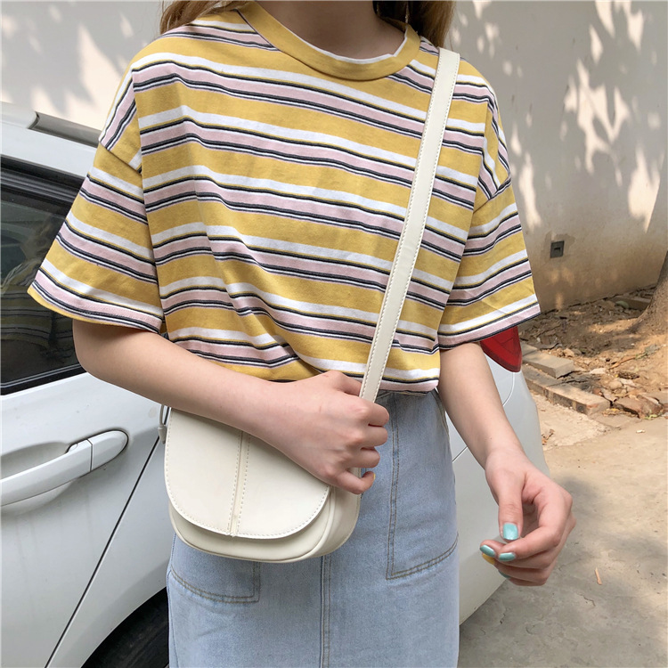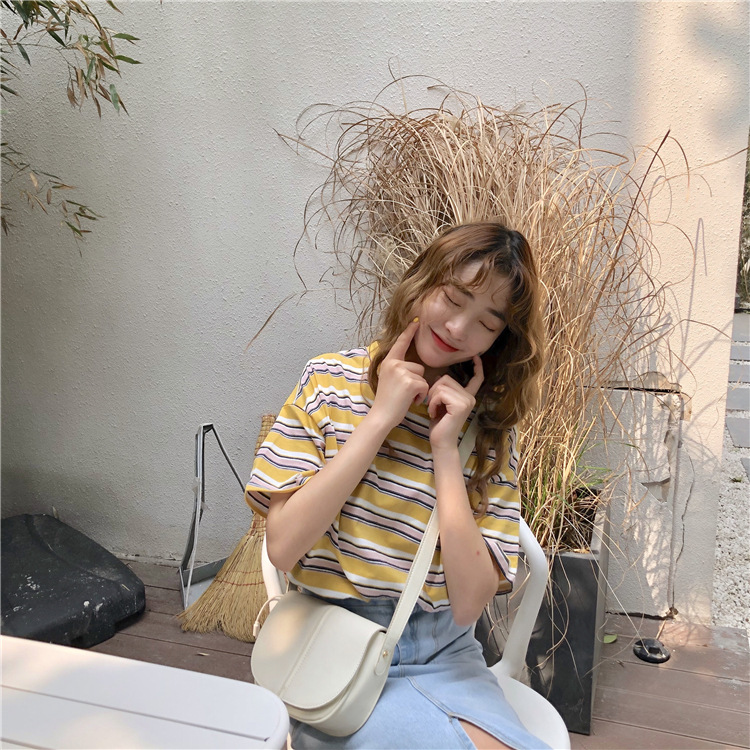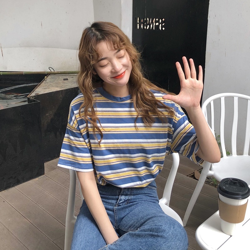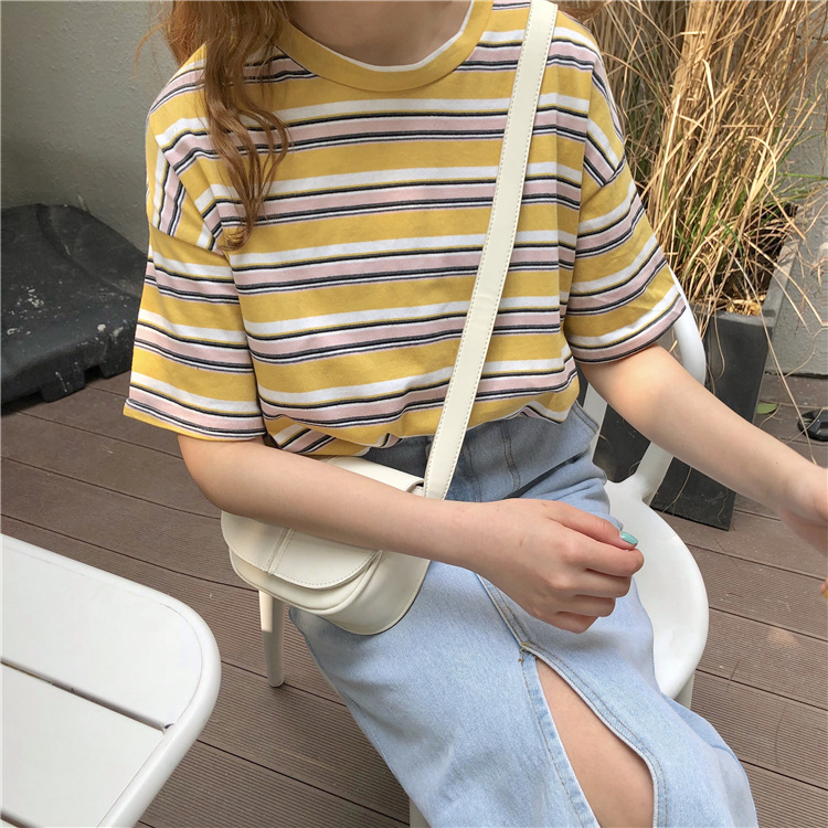 2025年夏季新款韩版宽松条纹休闲T恤女短袖学生上衣女装外贸批发