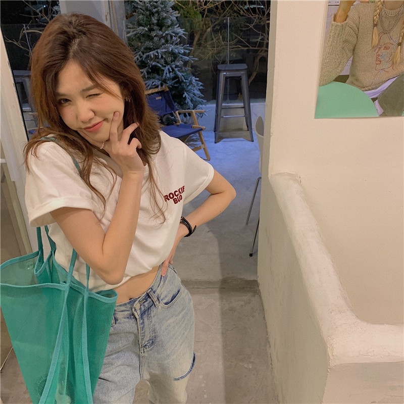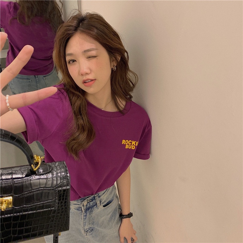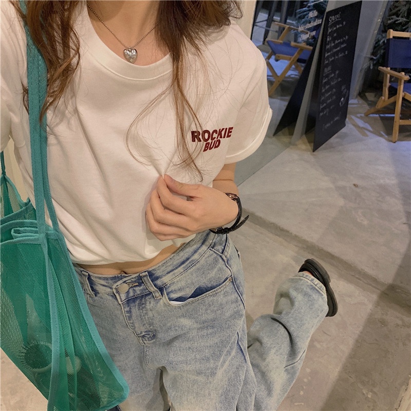 字母印花短袖t恤女夏季2025年新款韩版设计感宽松显瘦学生上衣潮