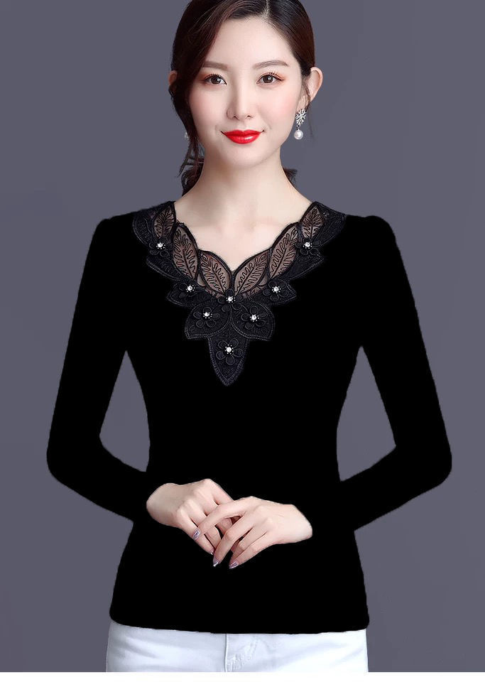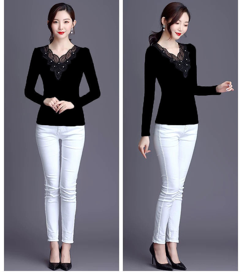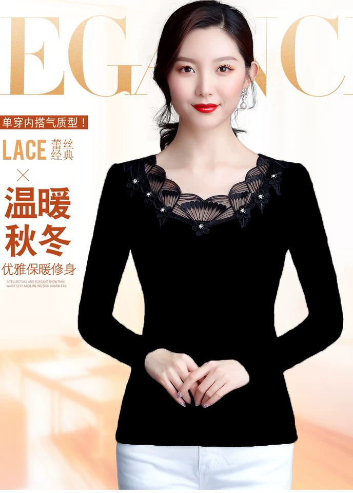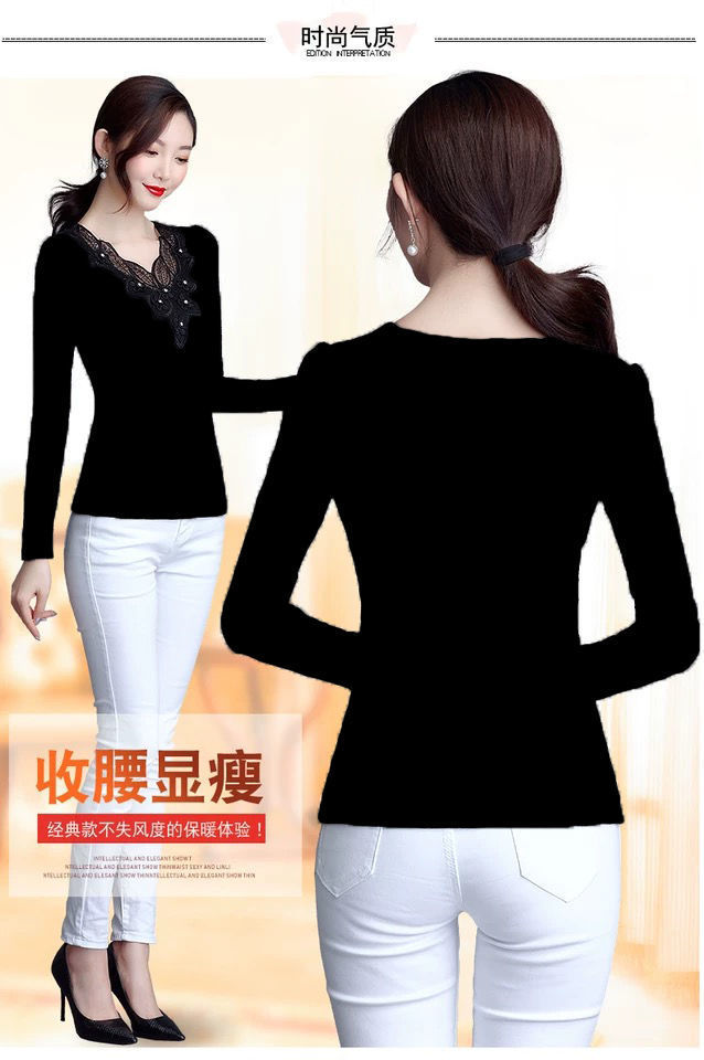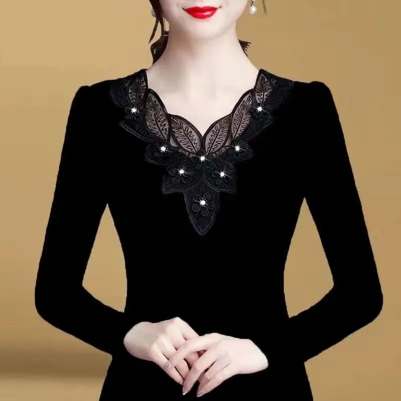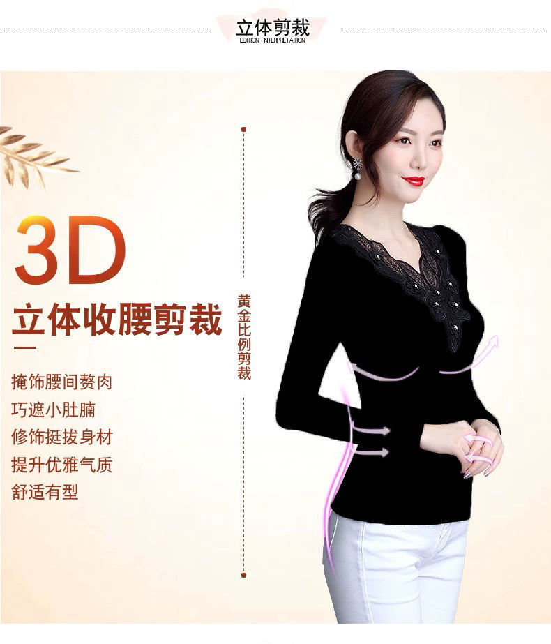 薄款修身打底衫2025秋冬新款韩版蕾丝网镶钻长袖T恤女学生上衣潮