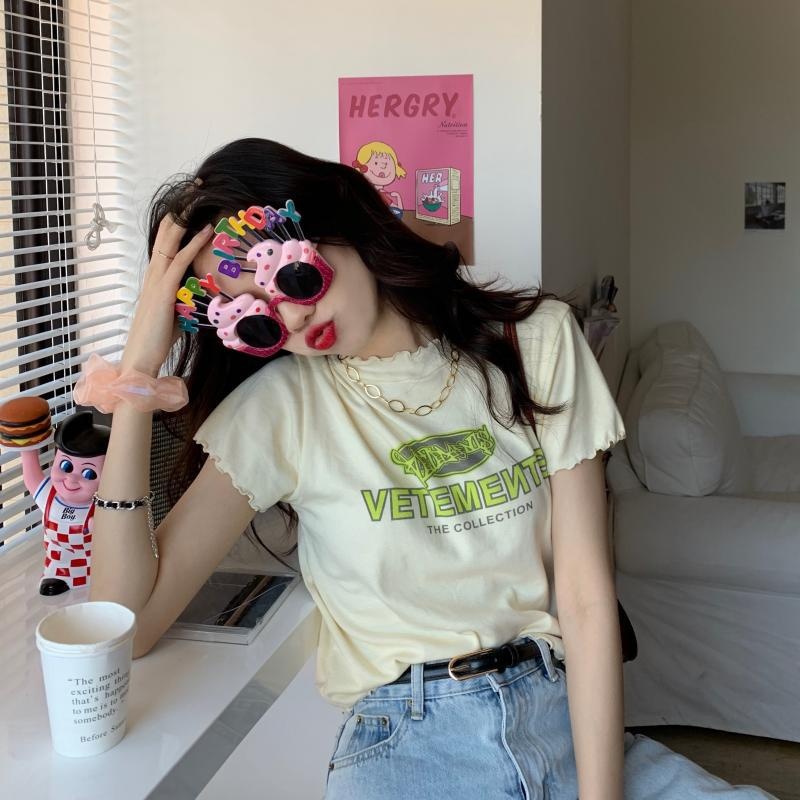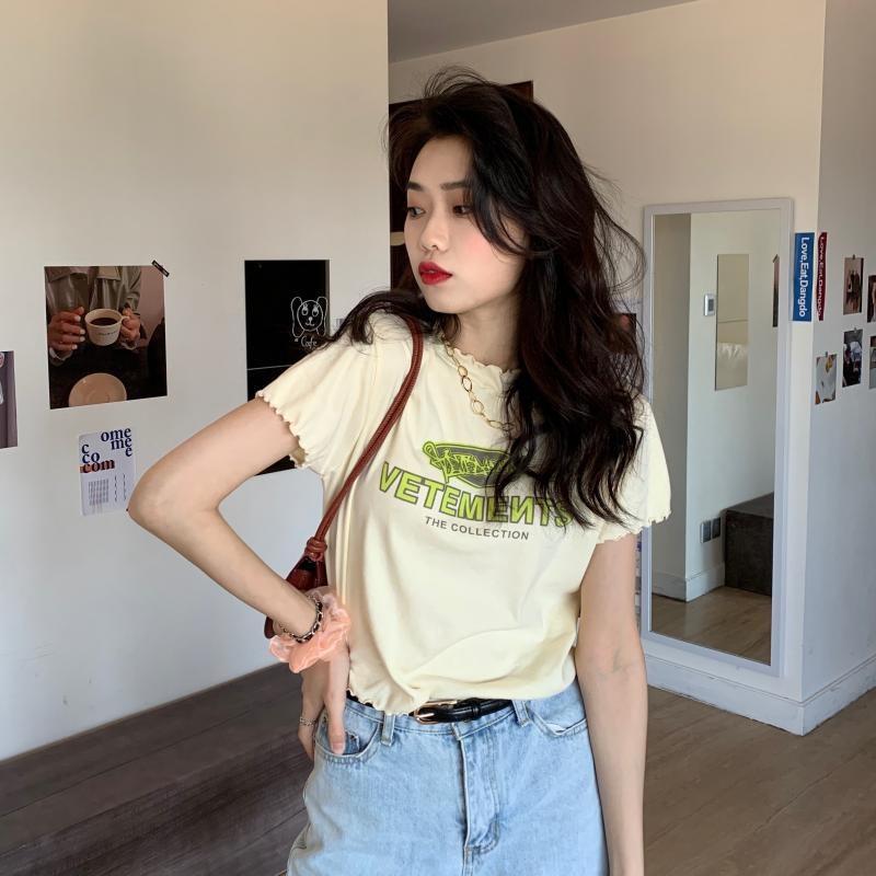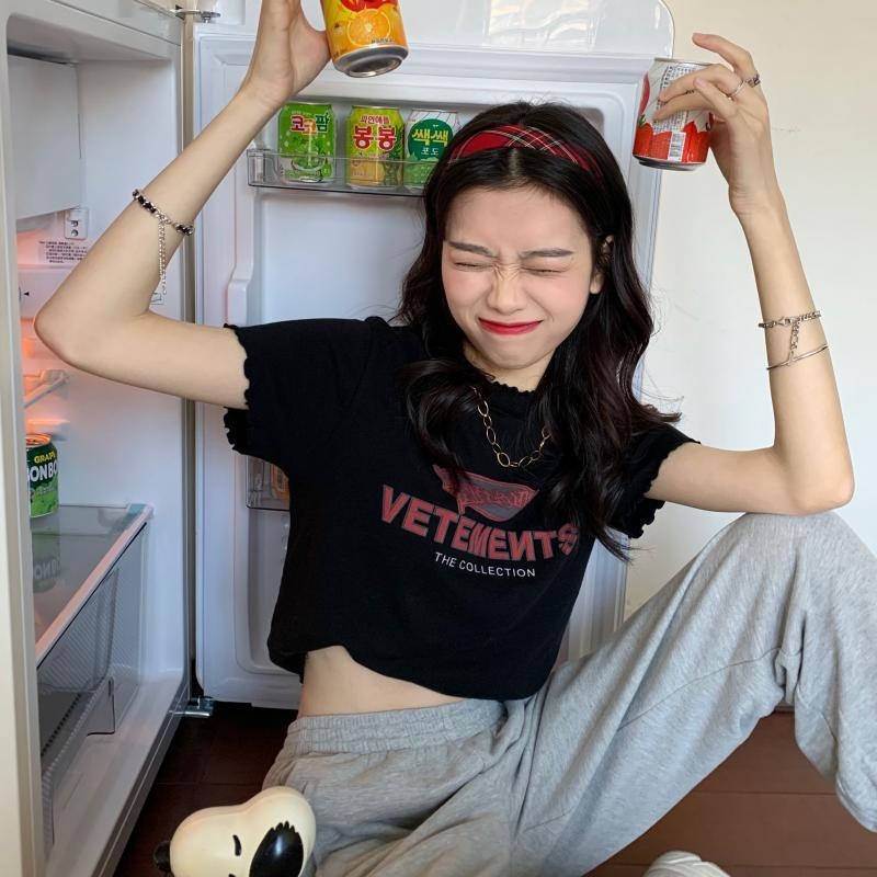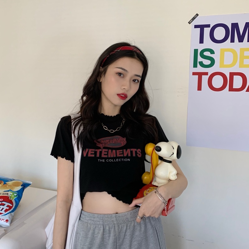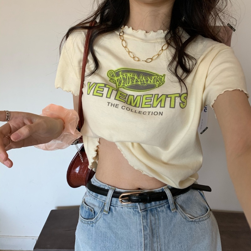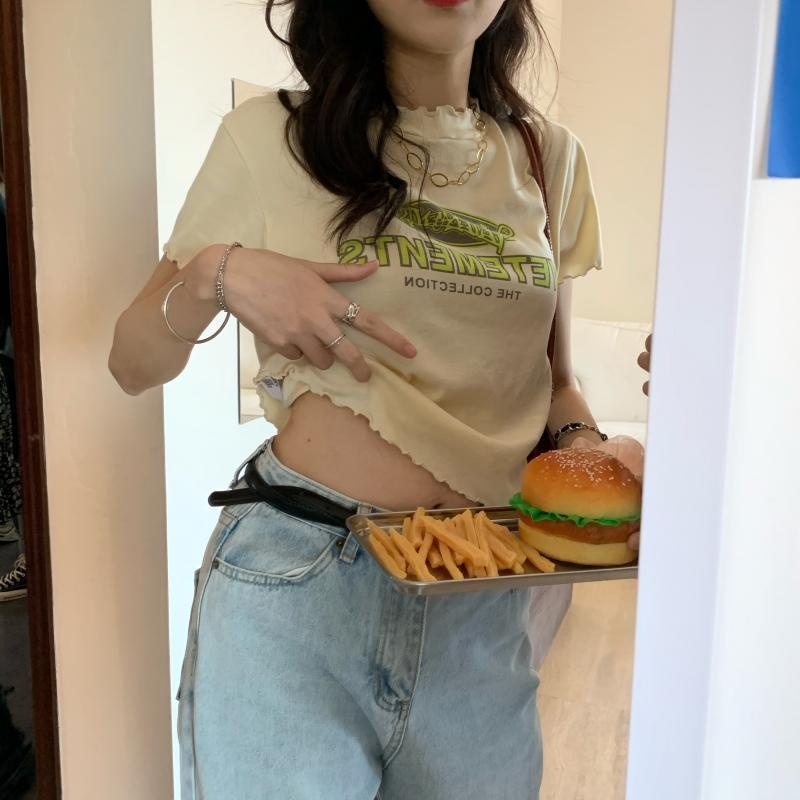 露脐短袖t恤女2025年新款潮ins夏季辣妹短款上衣设计感小众打底衫