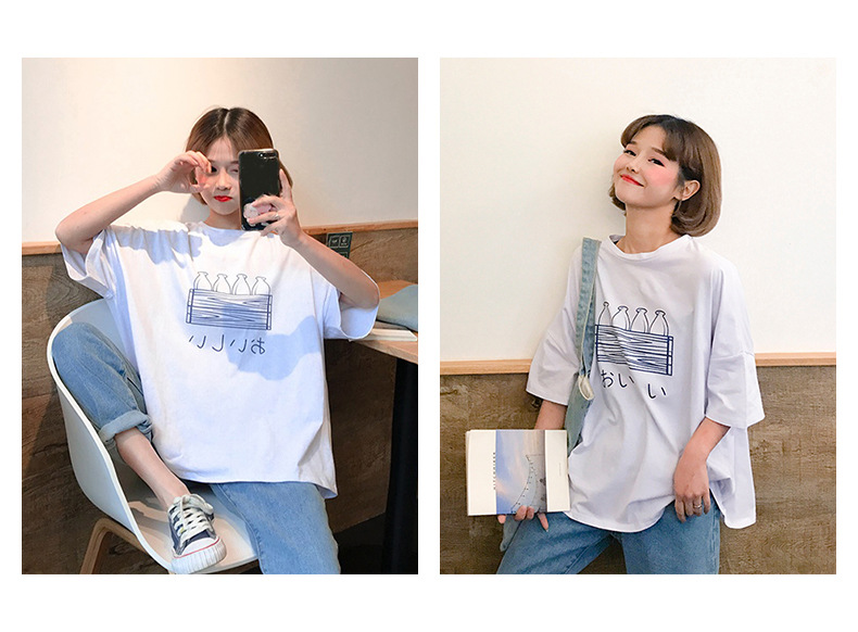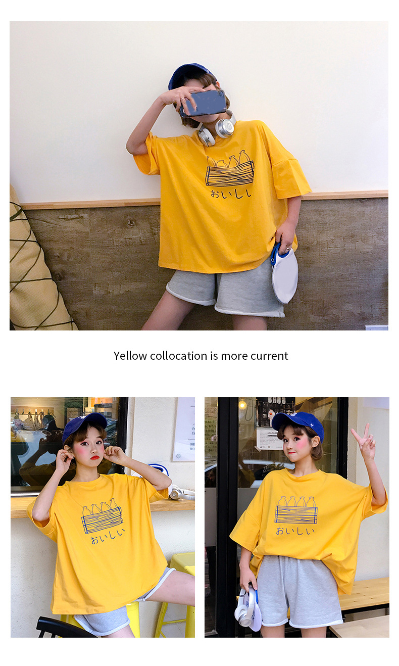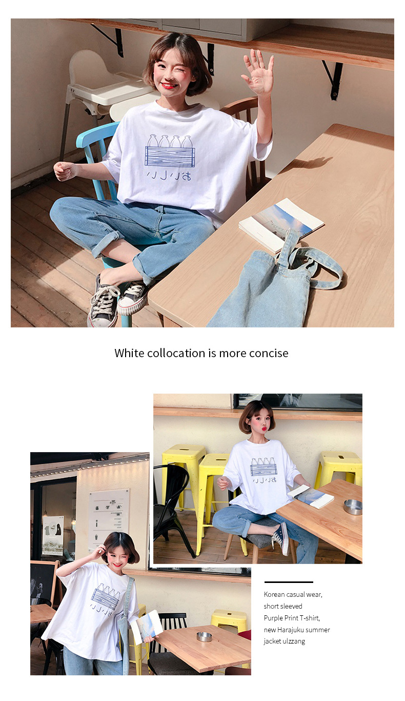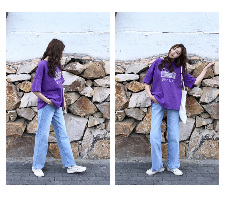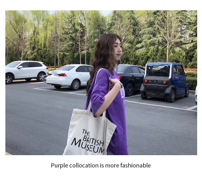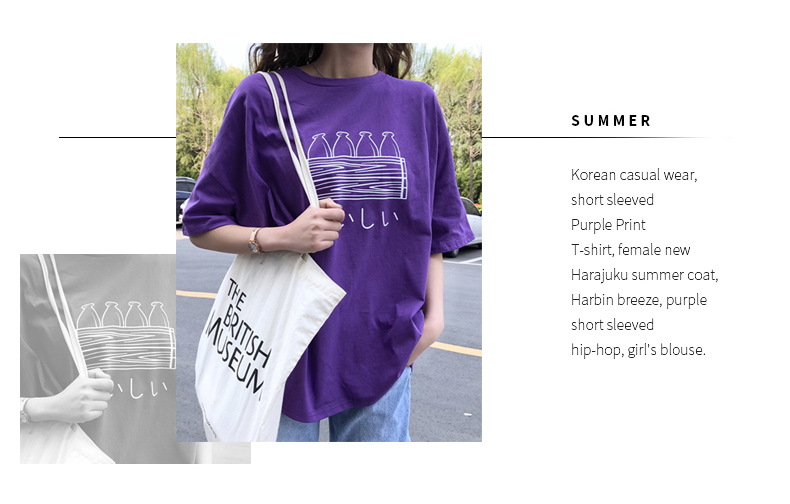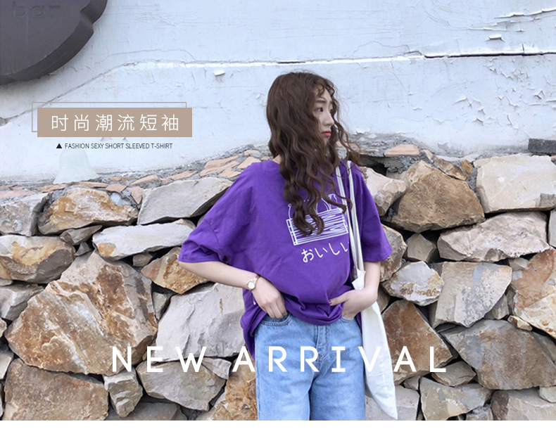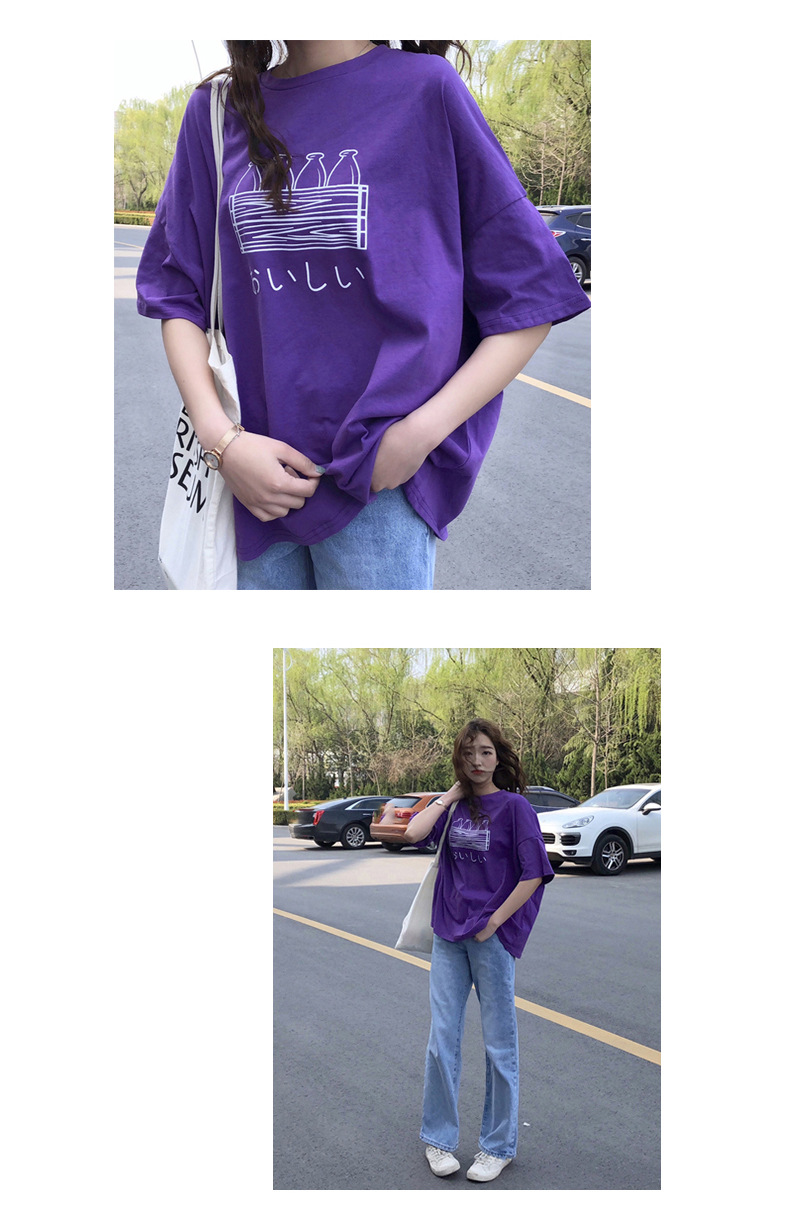 紫色短袖t恤女2025新款夏装韩版宽松大码印花学生百搭上衣服女装