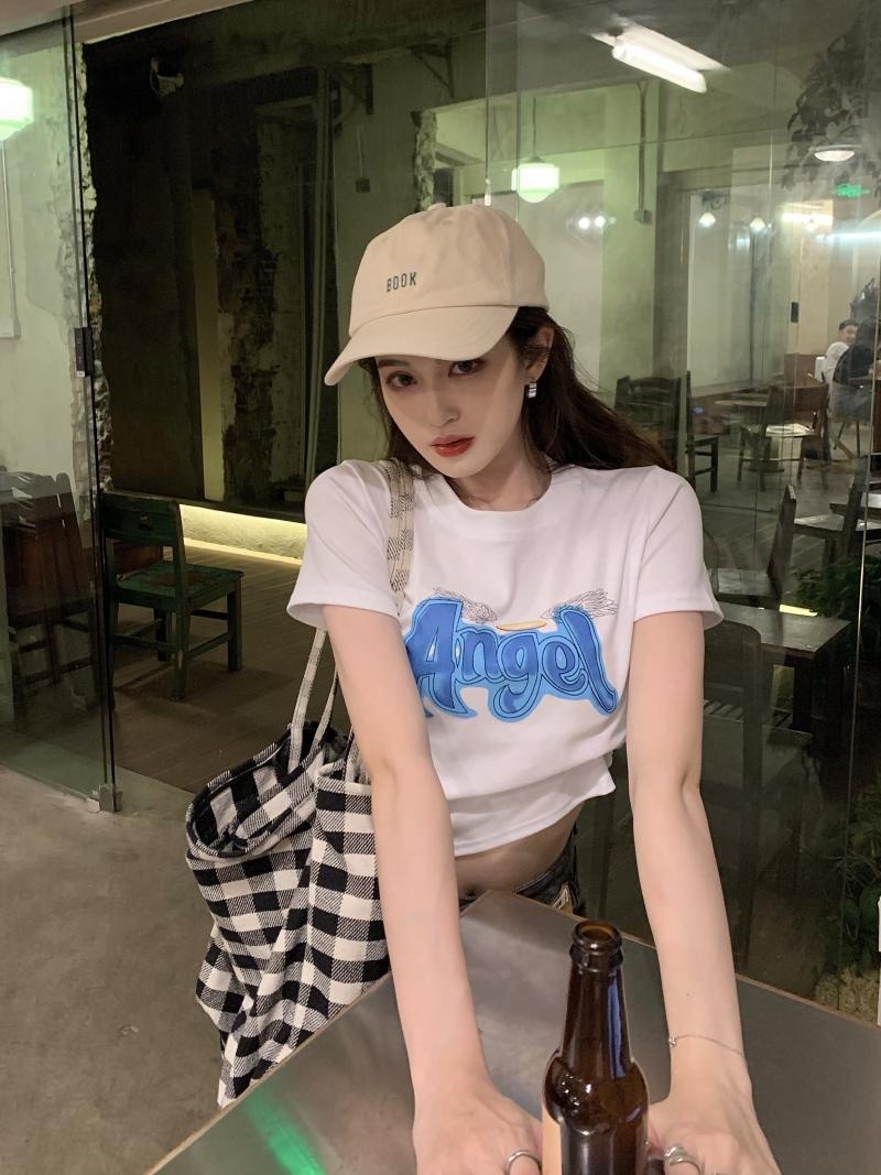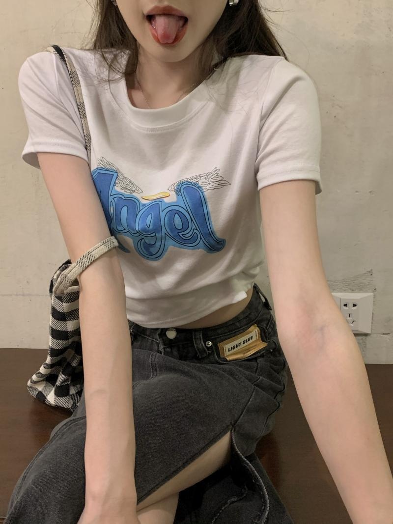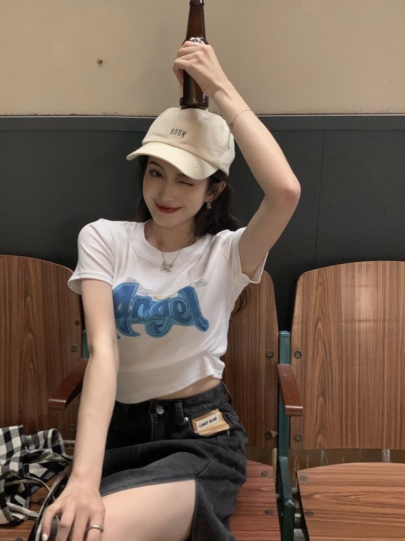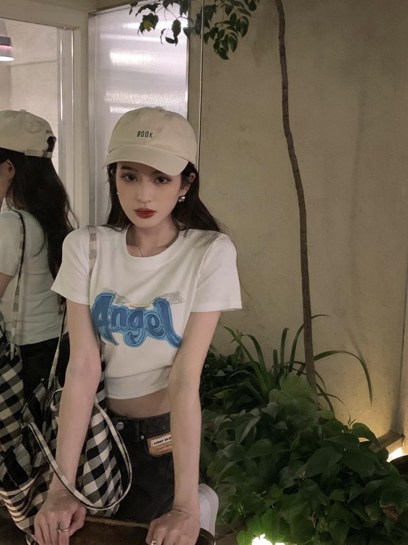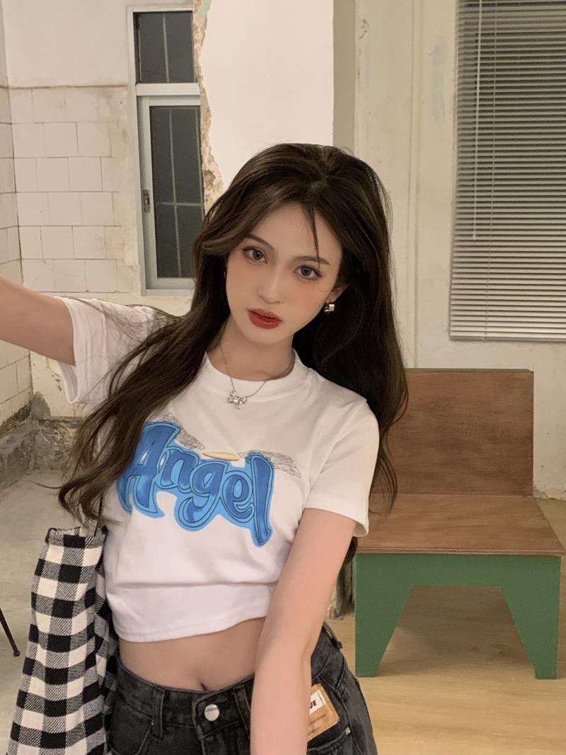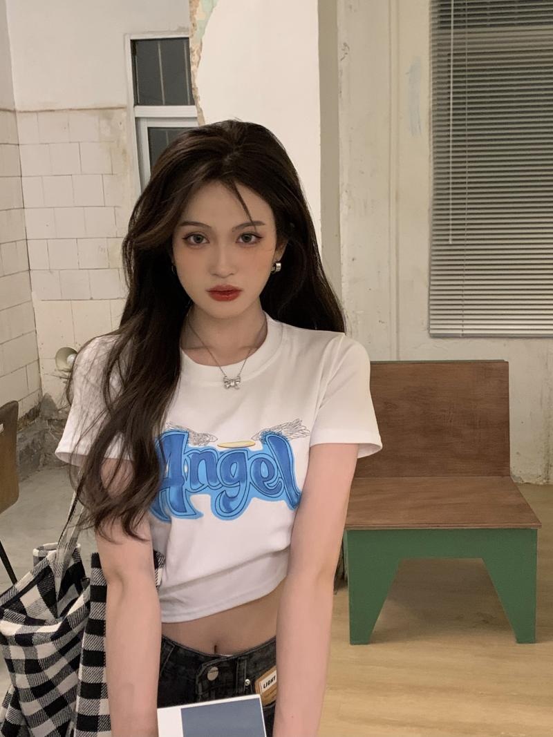 韩系辣妹短款白色字母T恤女夏季2025年新款ins潮修身显瘦短袖上衣