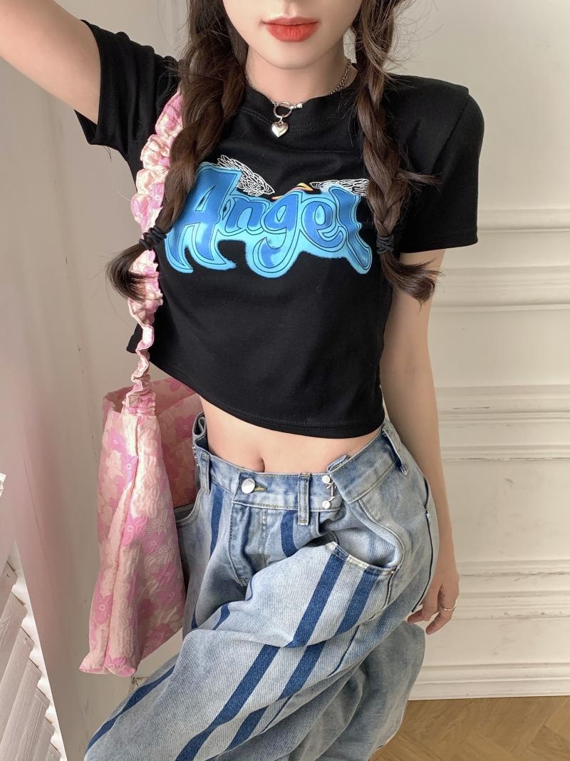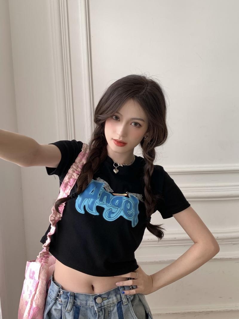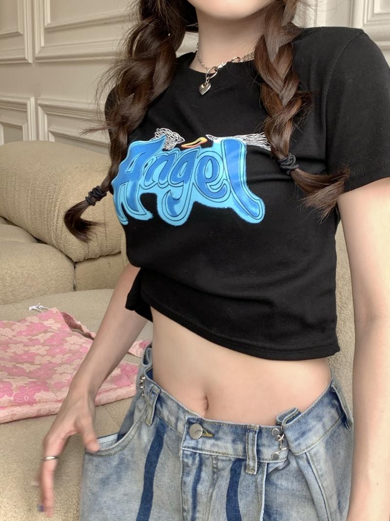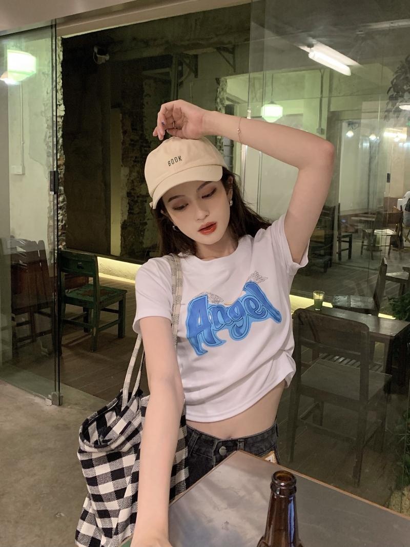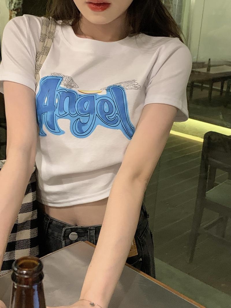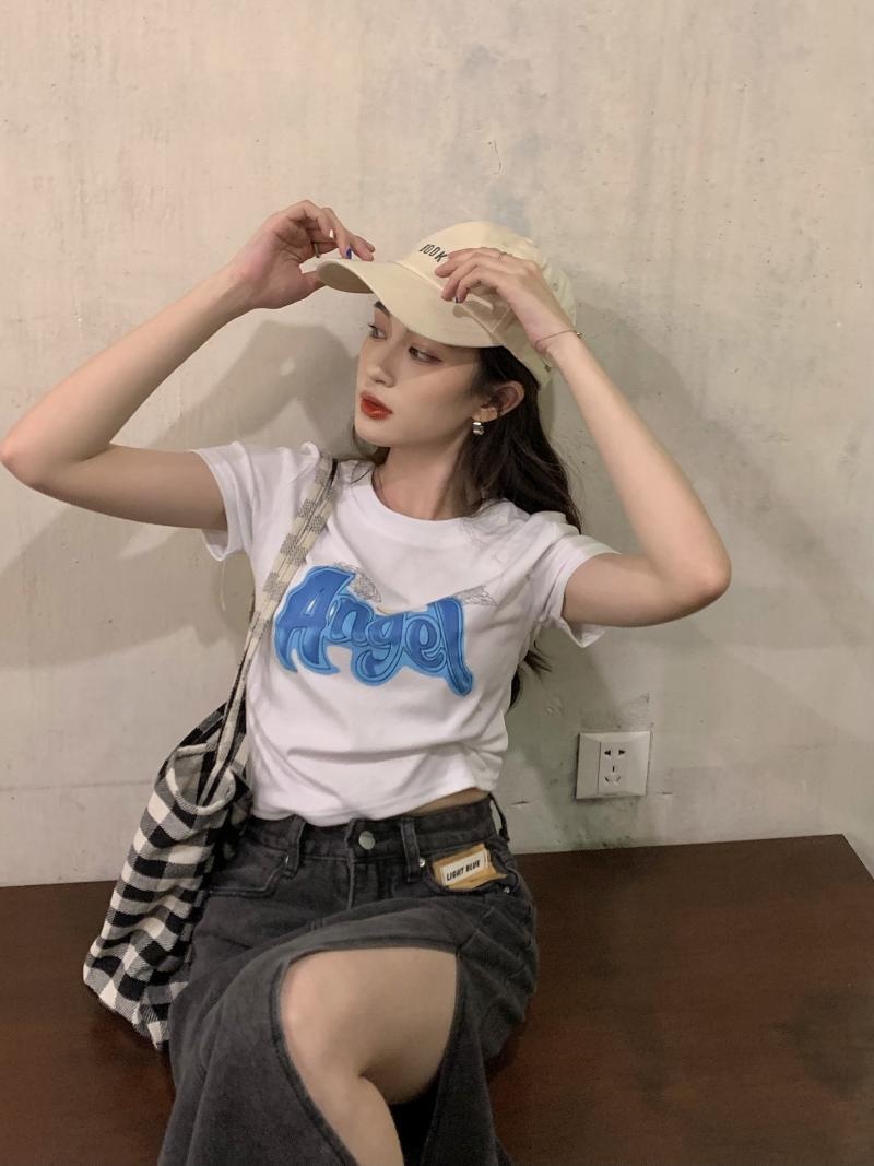 韩系辣妹短款白色字母T恤女夏季2025年新款ins潮修身显瘦短袖上衣