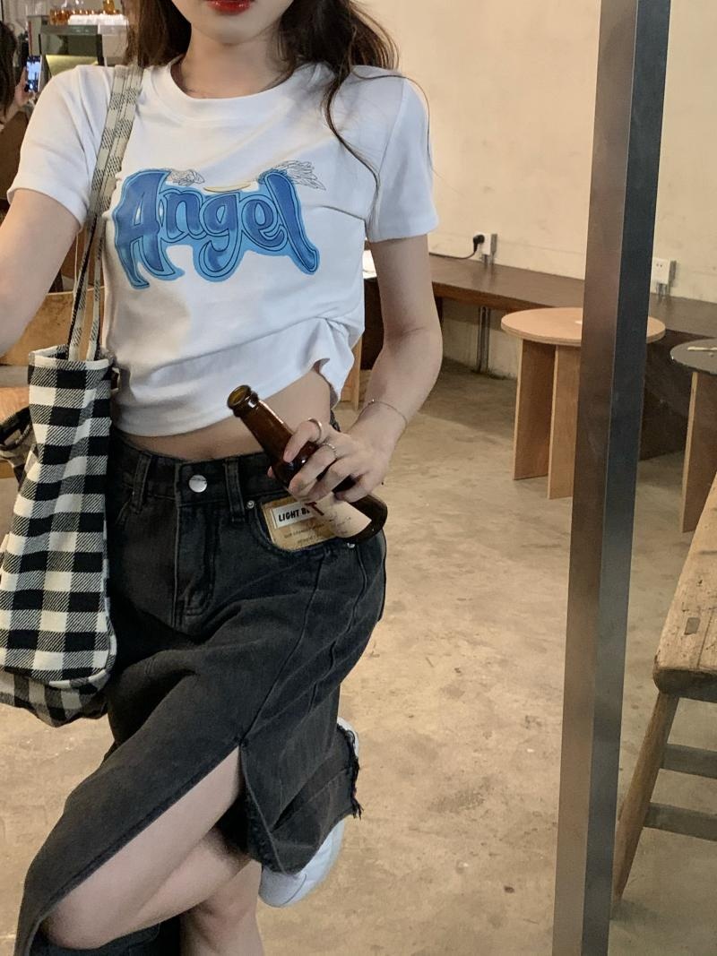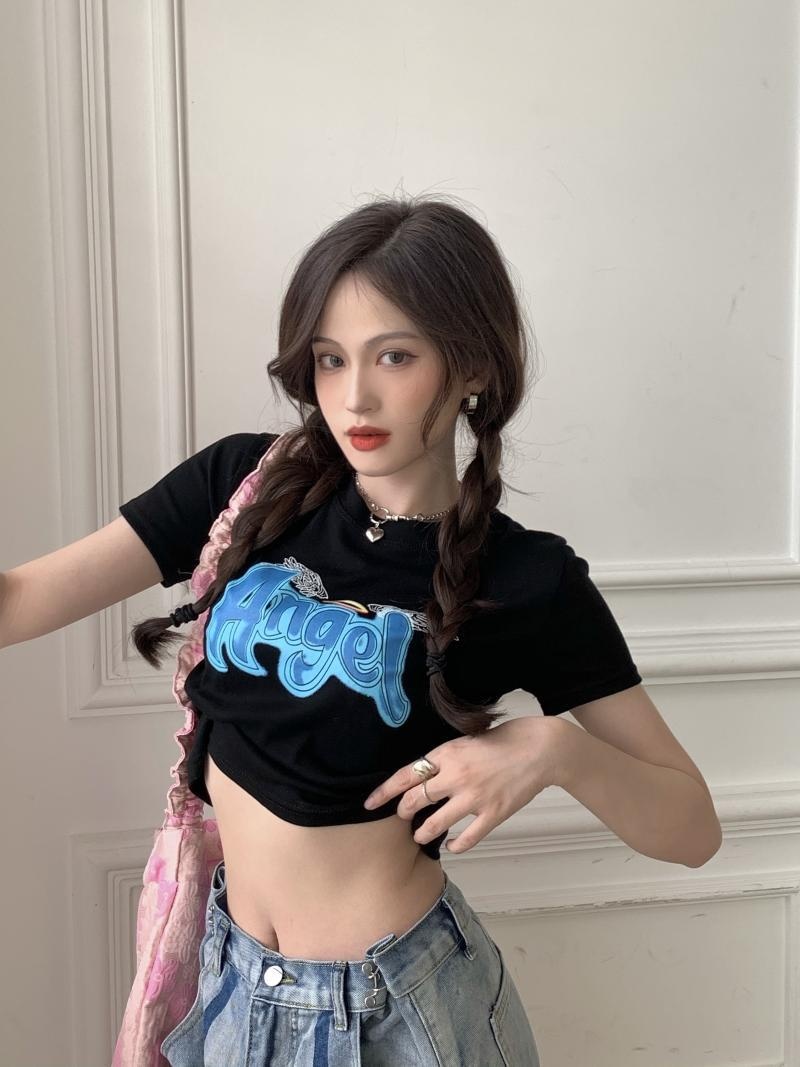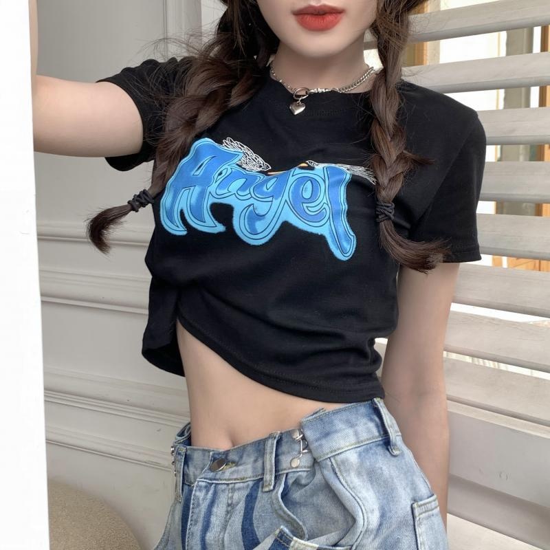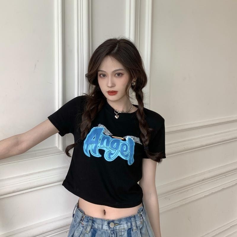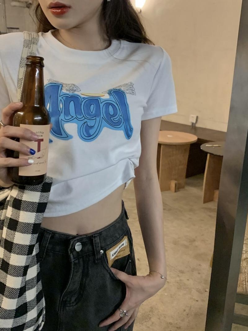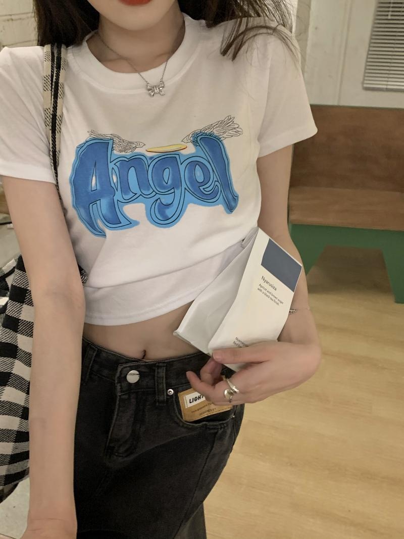 韩系辣妹短款白色字母T恤女夏季2025年新款ins潮修身显瘦短袖上衣