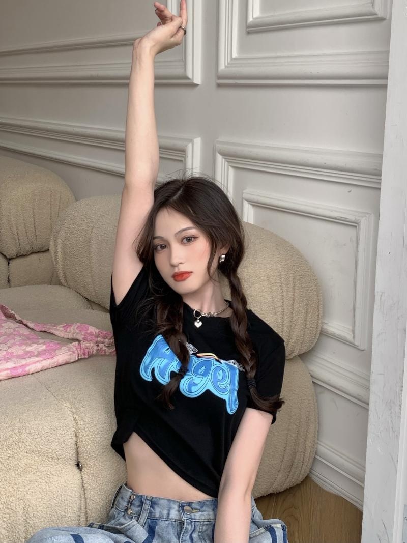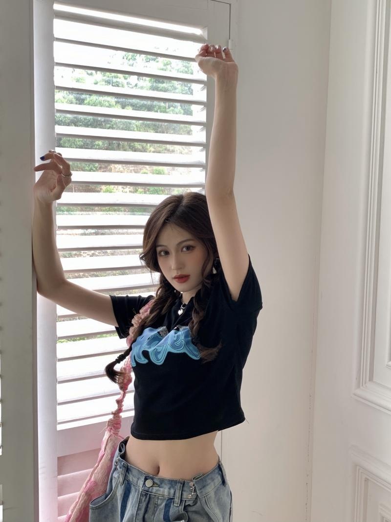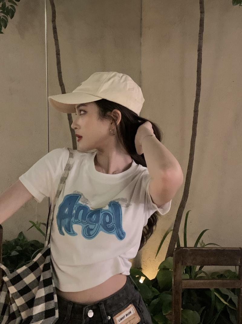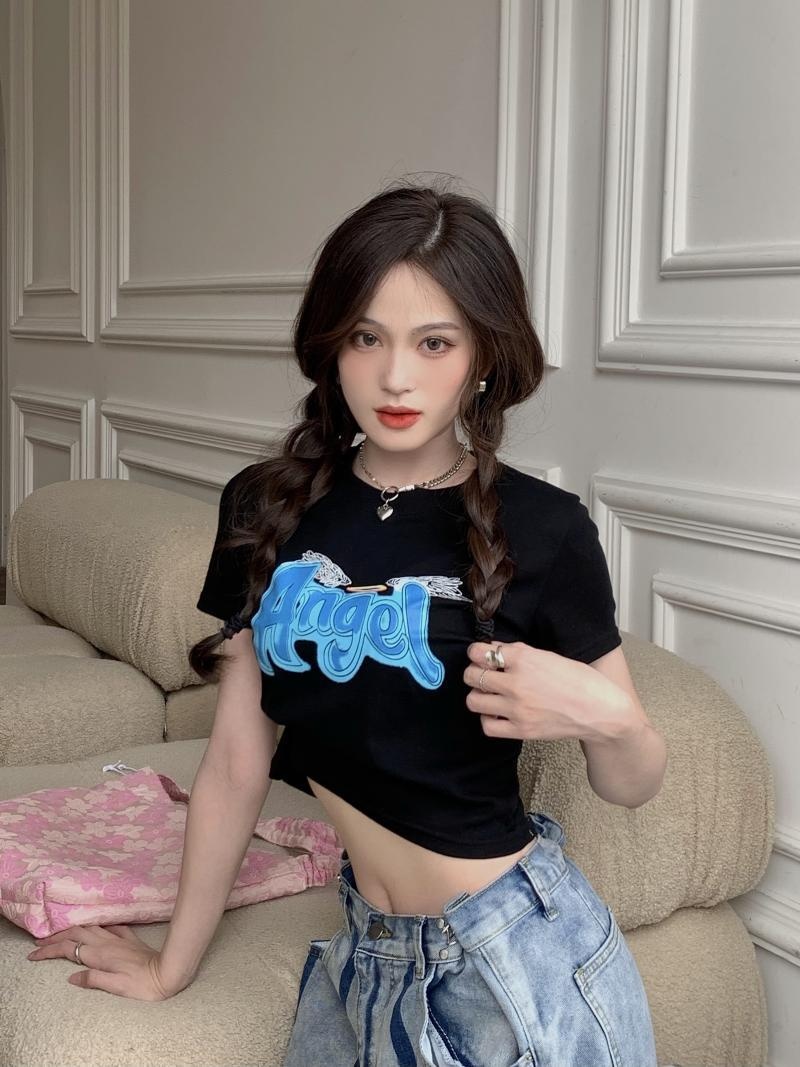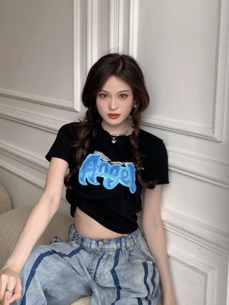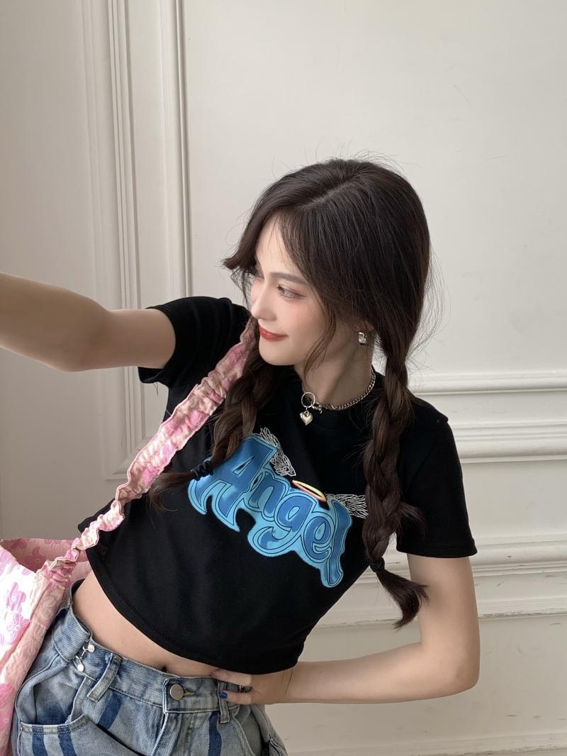 韩系辣妹短款白色字母T恤女夏季2025年新款ins潮修身显瘦短袖上衣