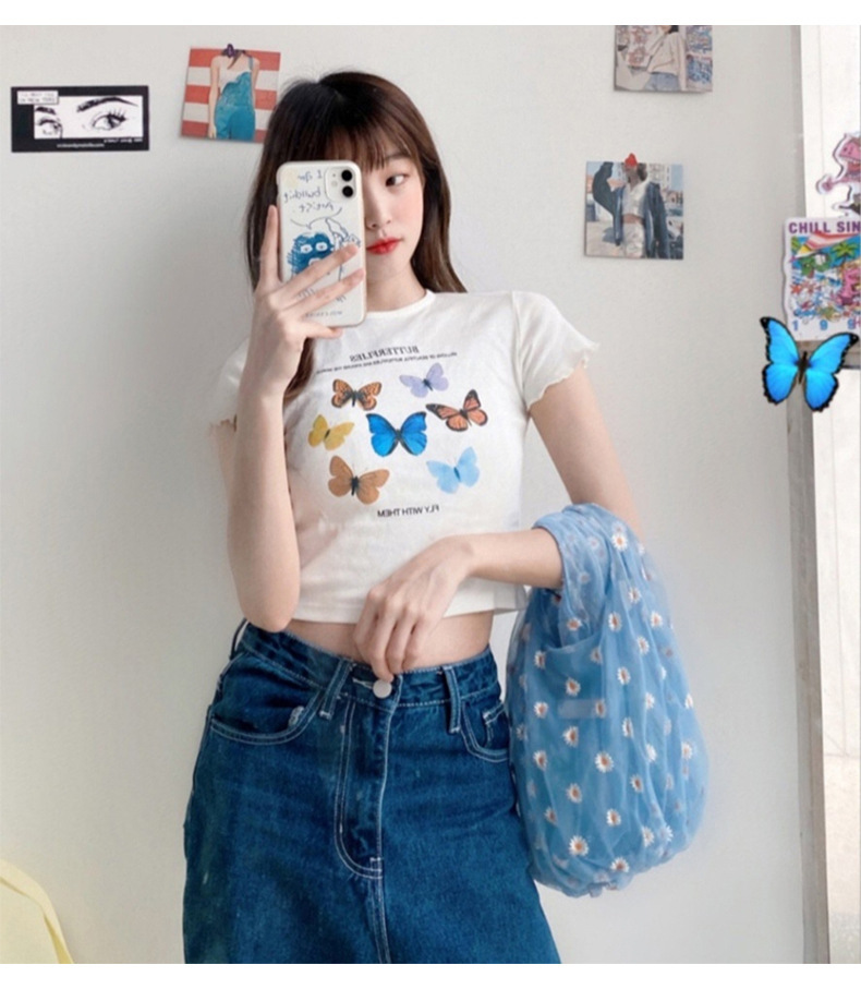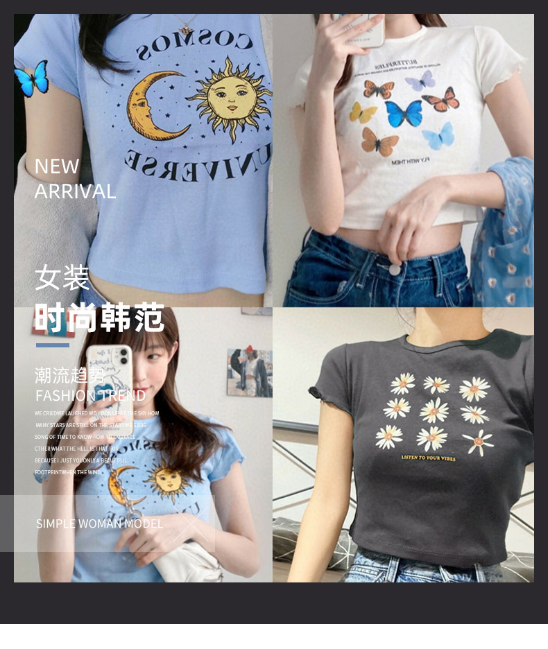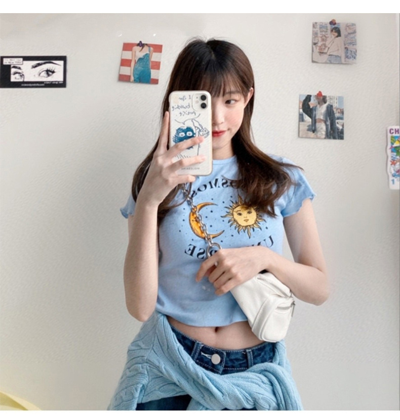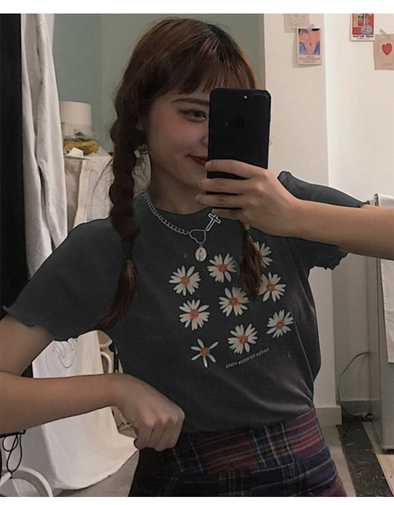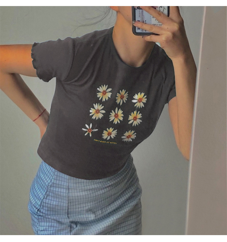 小雏菊韩版女装2025新款夏季修身短款短袖T恤女学生上衣一件代发