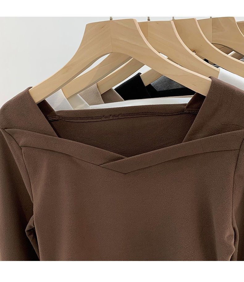 德绒打底衫新款设计感方领不规则洋气修身内搭上衣秋冬女装穿搭潮