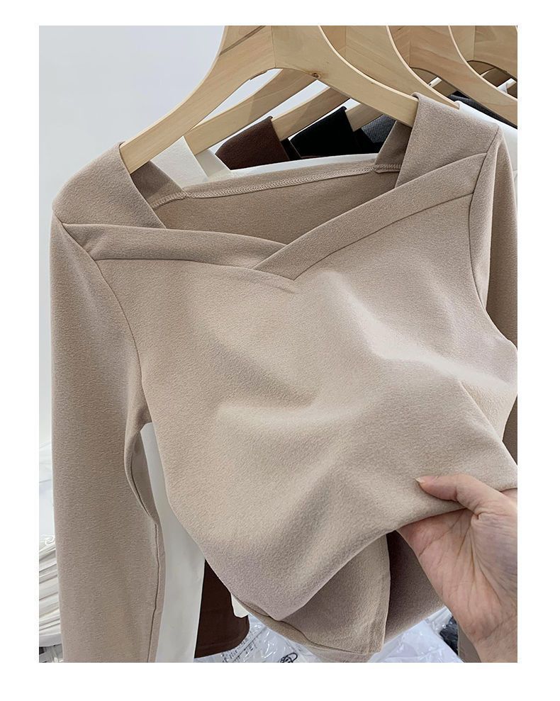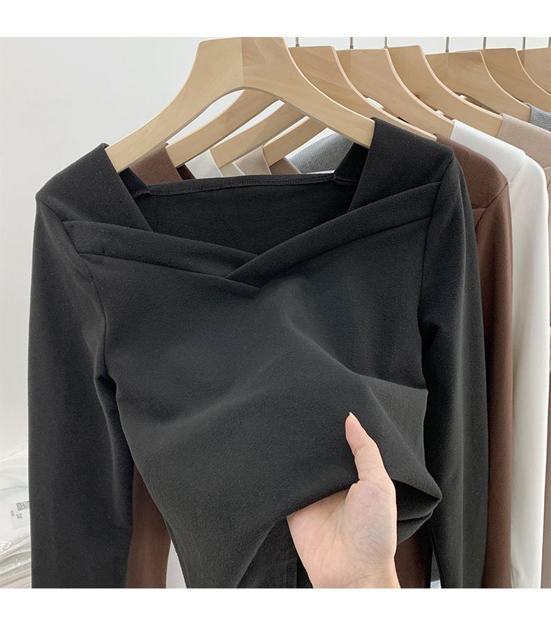 2025秋冬新款女装德绒打底衫新款方领不规则洋气修身内搭加厚上衣