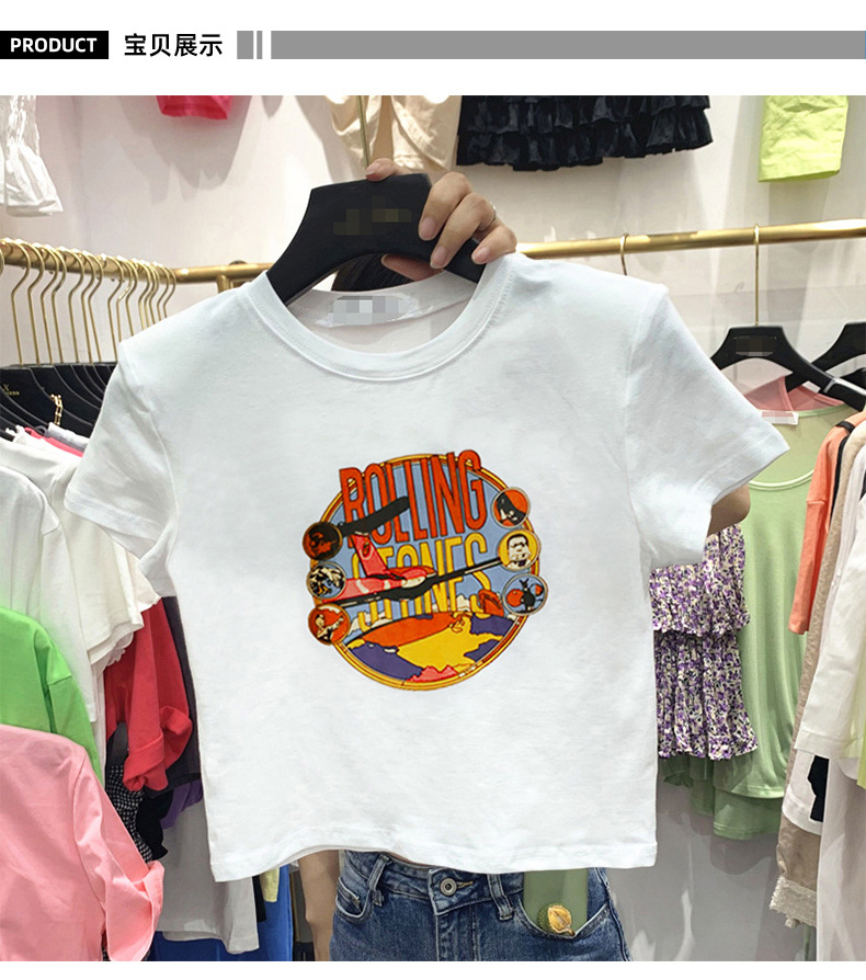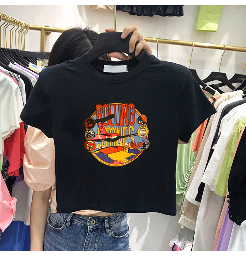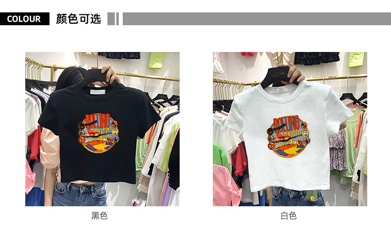 黑色短袖t恤女装ins超火夏季2025新款韩版高腰露脐学生短款上衣潮