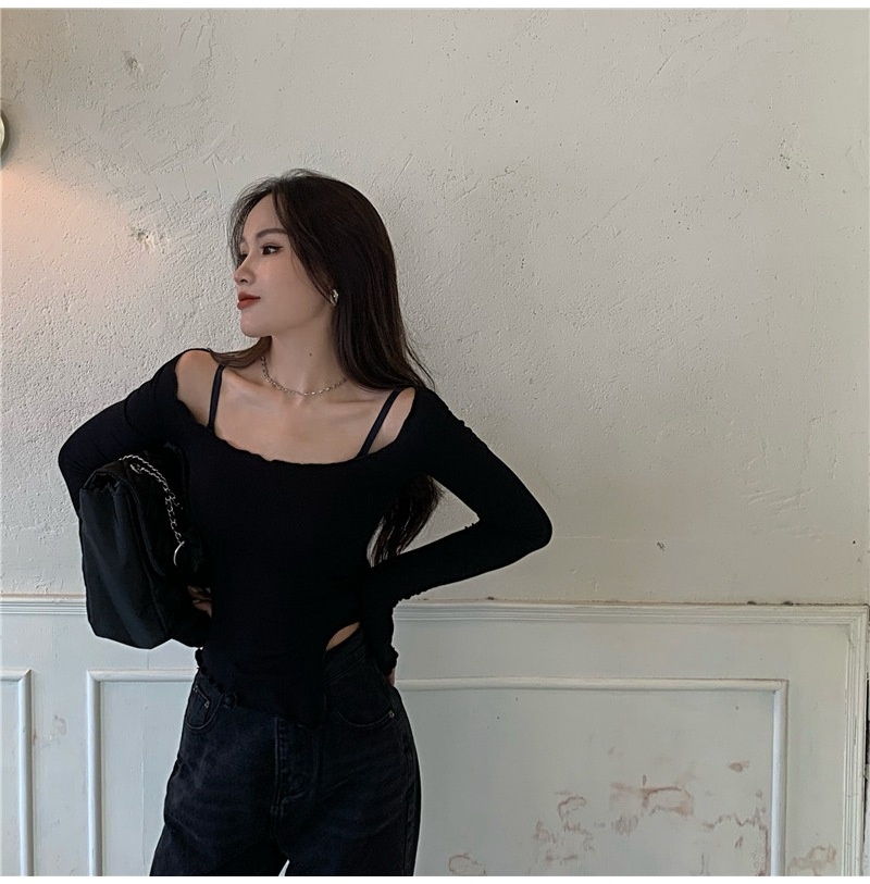 2022夏季韩版木耳边挂脖可调节ins女潮纯色百搭闺蜜装打底小吊带