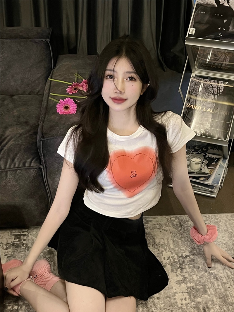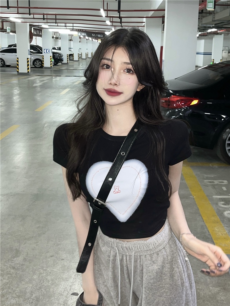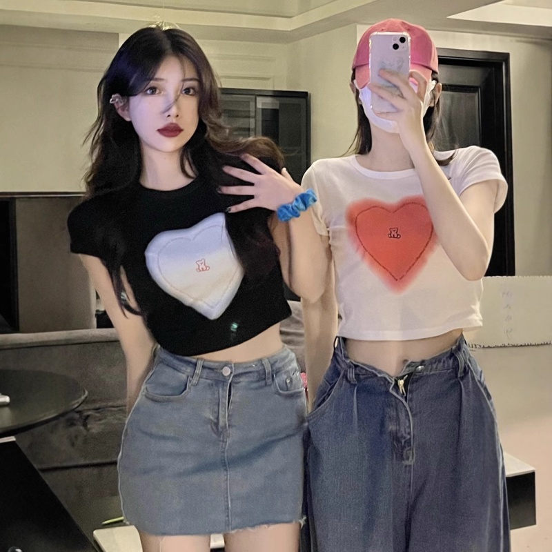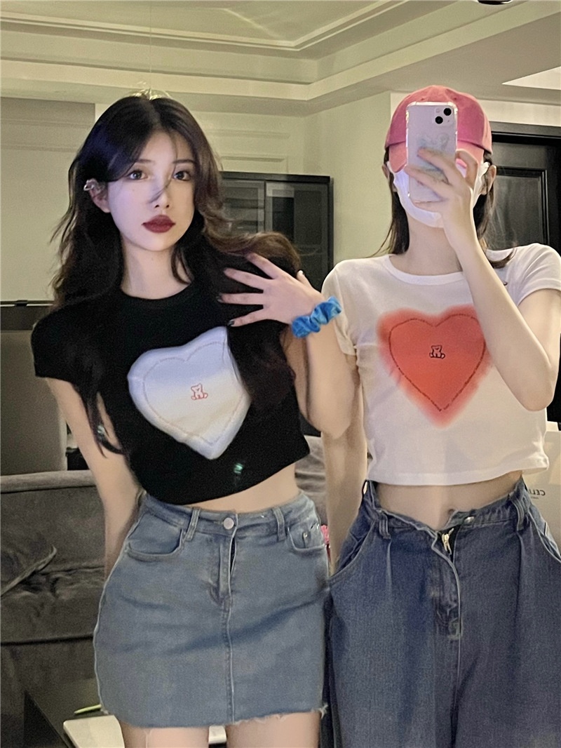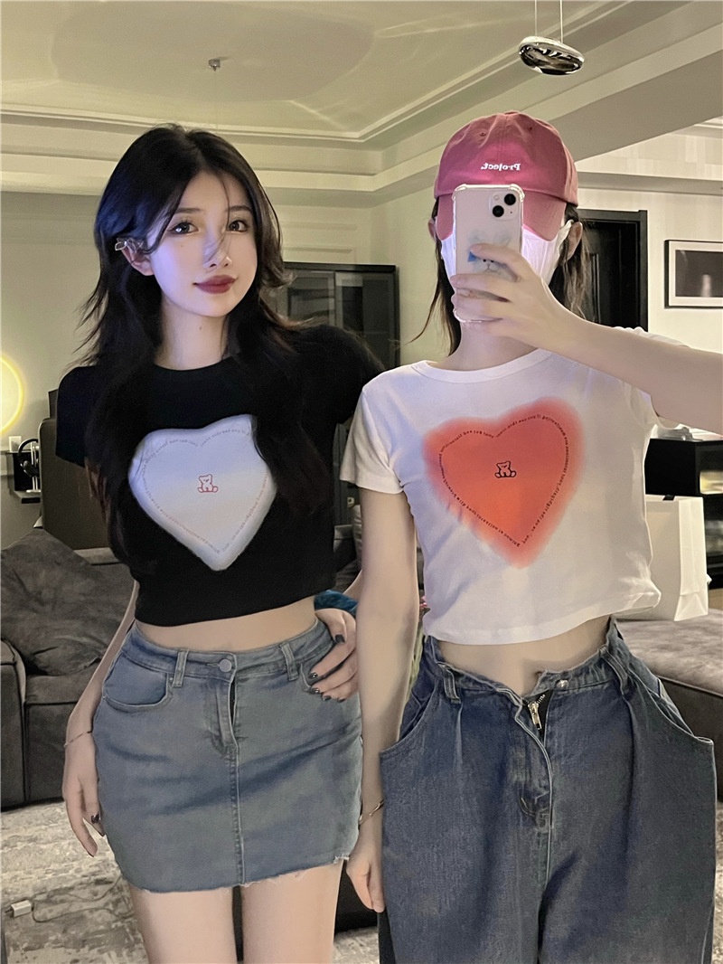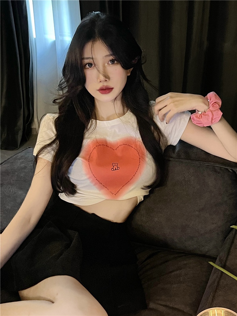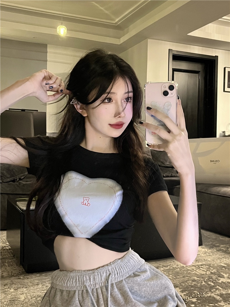 短袖t恤女ins潮2025夏季设计感甜辣妹爱心高腰露脐短款学生上衣女