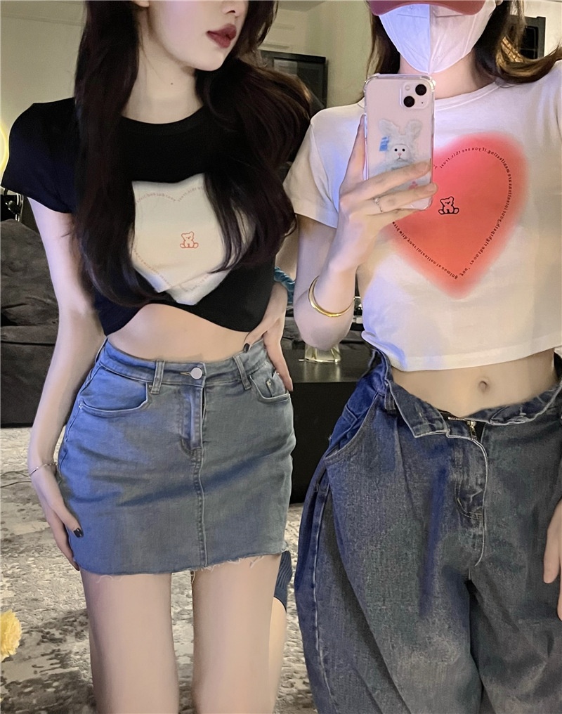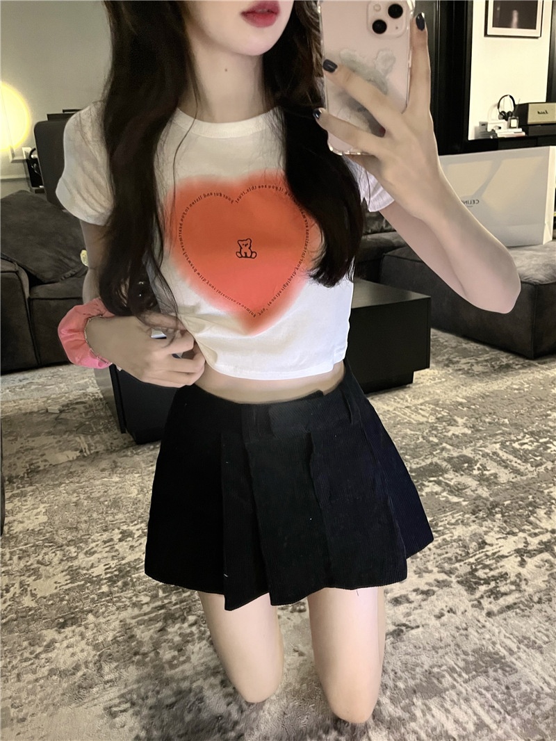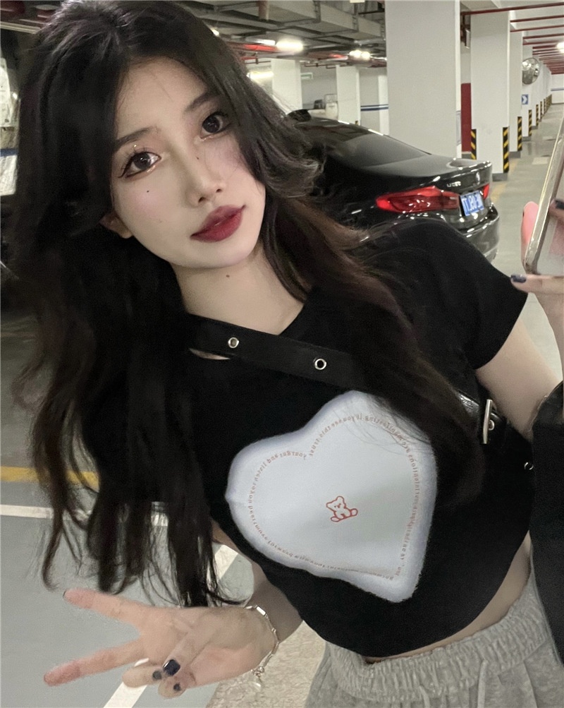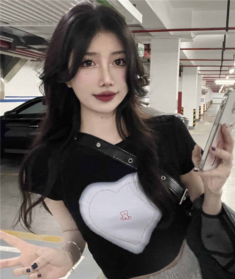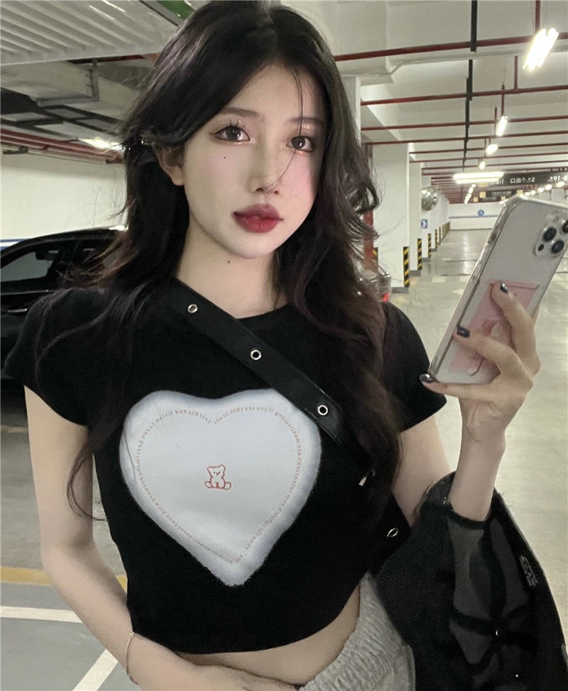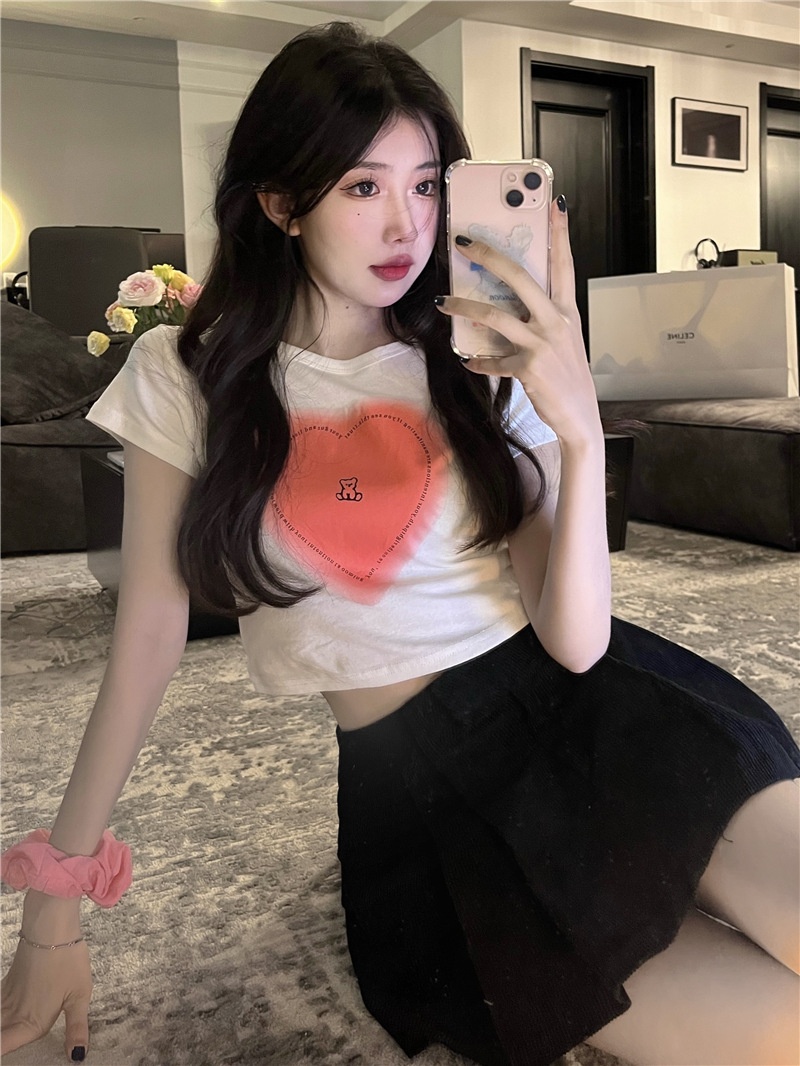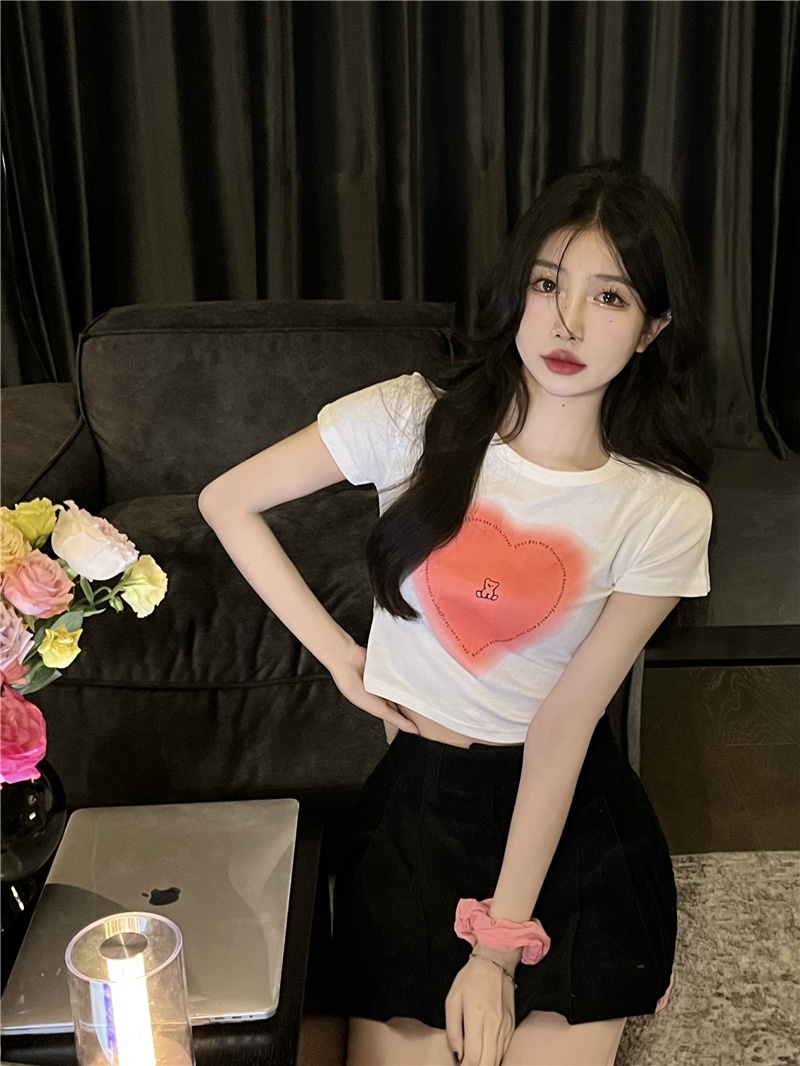 短袖t恤女ins潮2025夏季设计感甜辣妹爱心高腰露脐短款学生上衣女