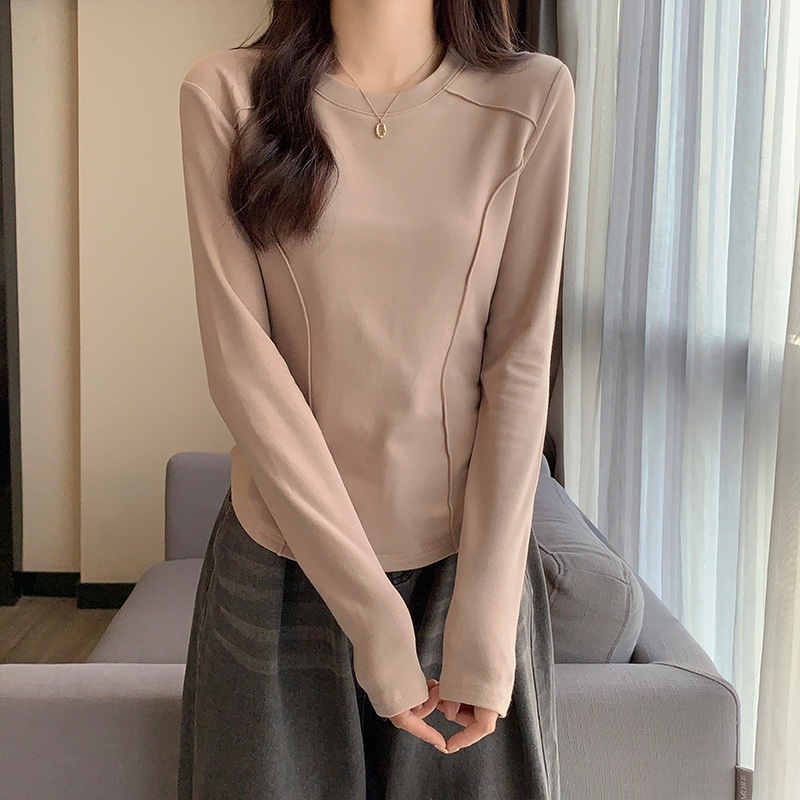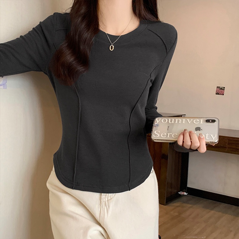 白色长袖打底衫女春秋冬内搭短款鱼骨上衣设计感修身洋气磨毛T恤