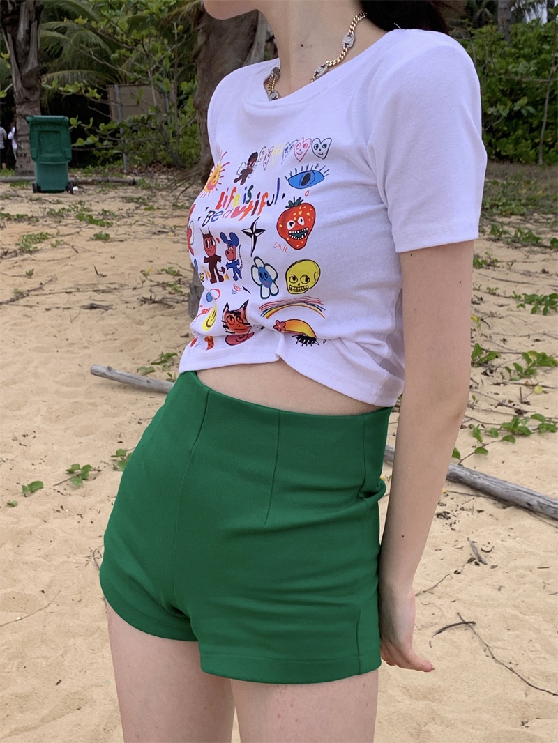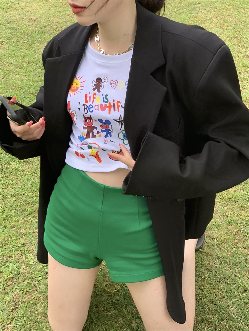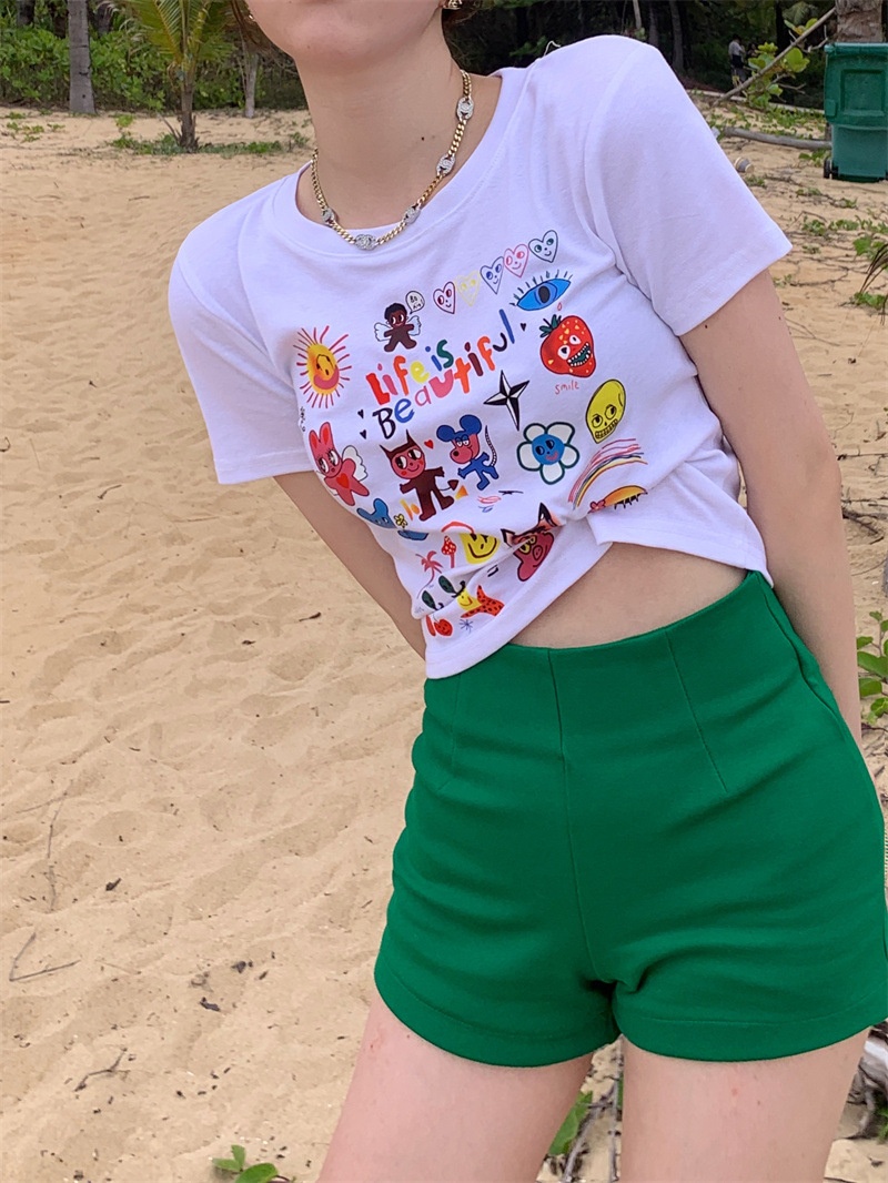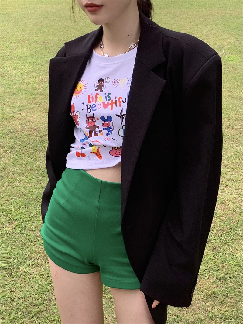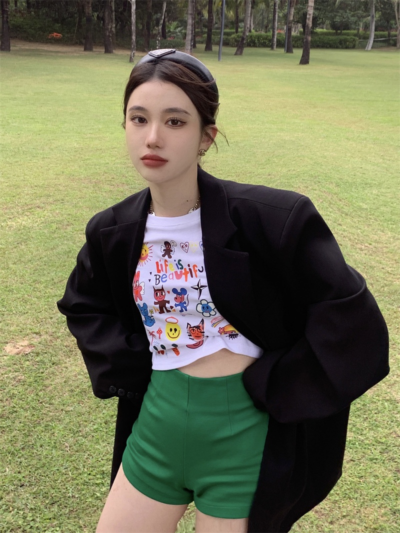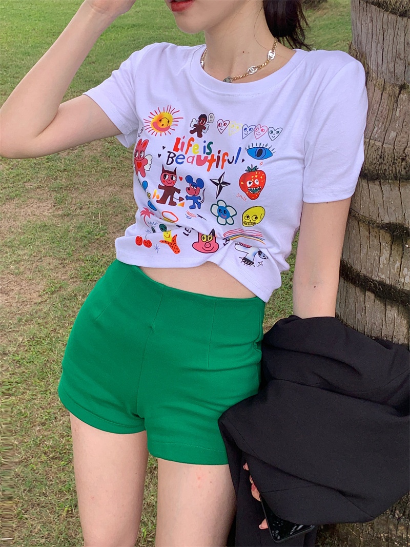 辣妹黑色短袖T恤女夏装2025年新款复古修身显瘦短款印花上衣ins潮