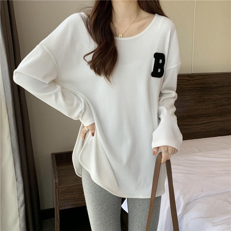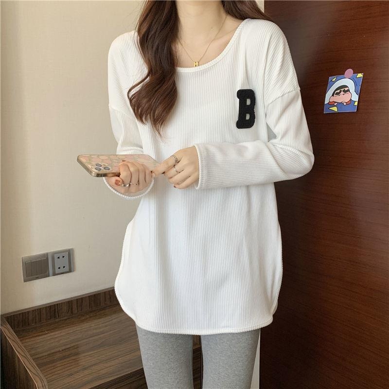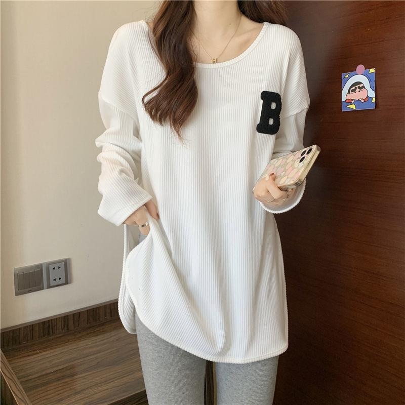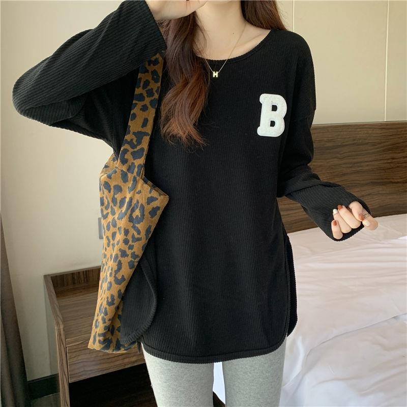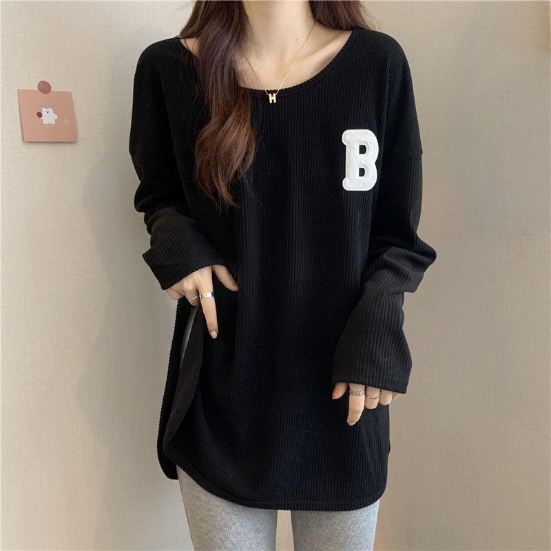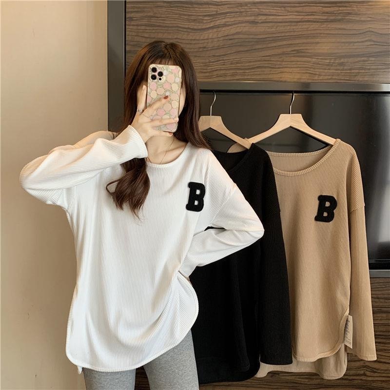 长袖T恤女春秋冬季2022新款宽松显瘦洋气百搭刺绣大码打底衫上衣
