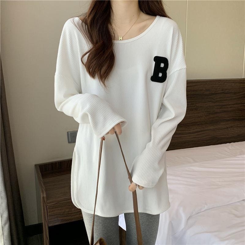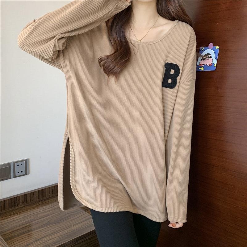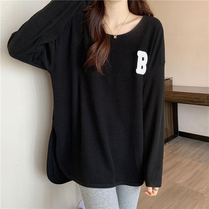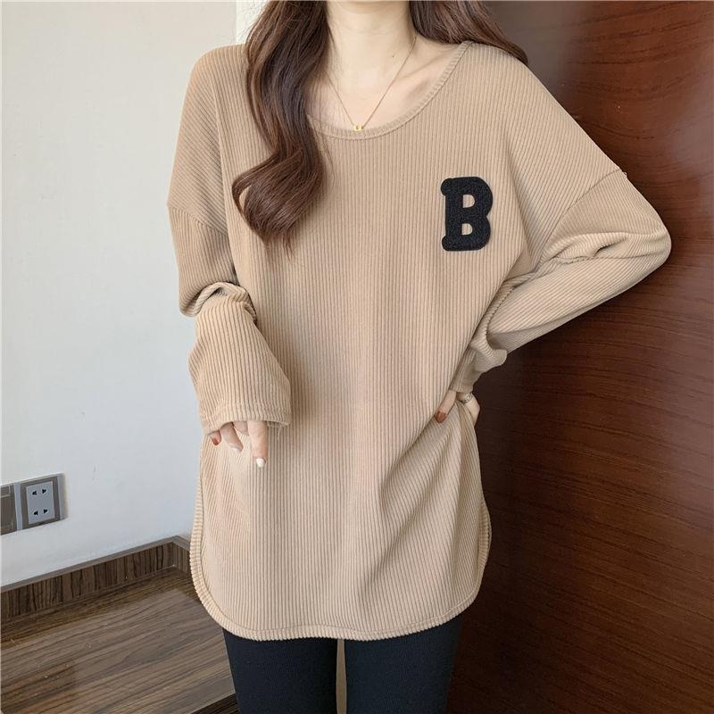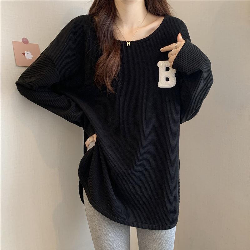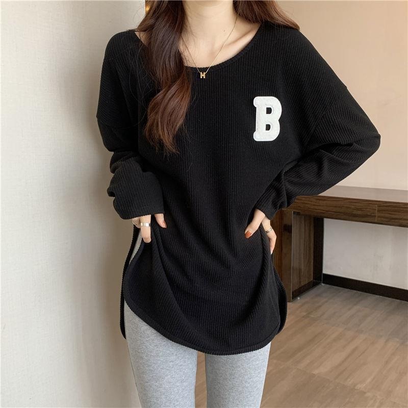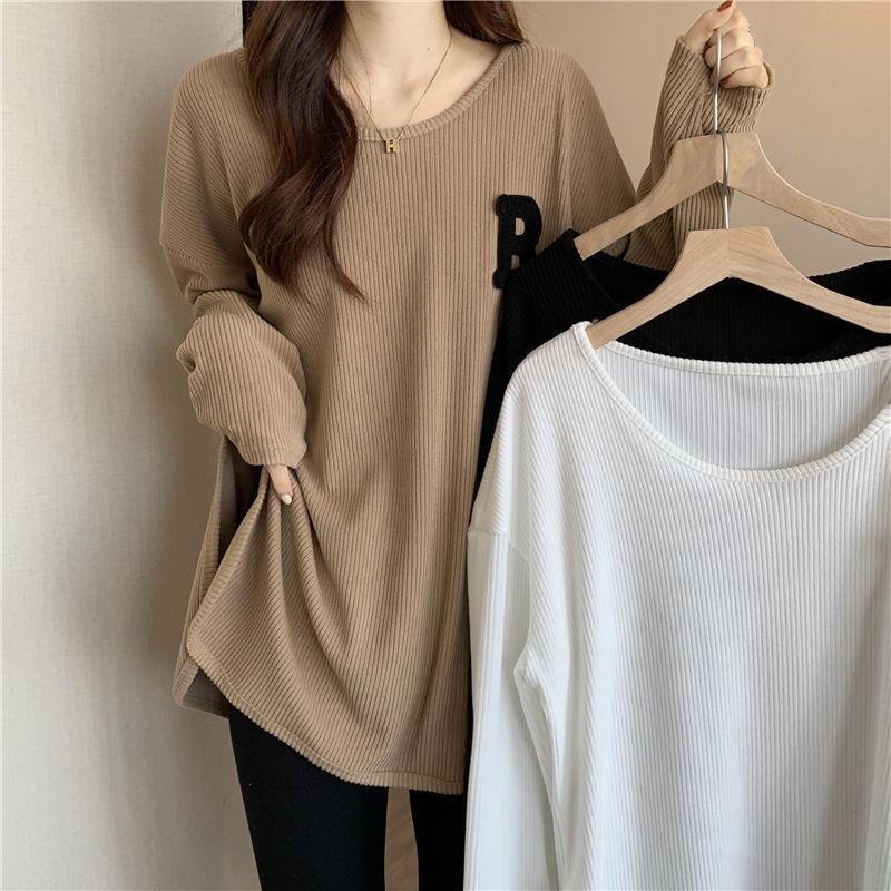 长袖T恤女春秋冬季2022新款宽松显瘦洋气百搭刺绣大码打底衫上衣