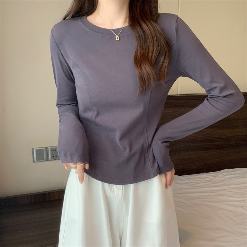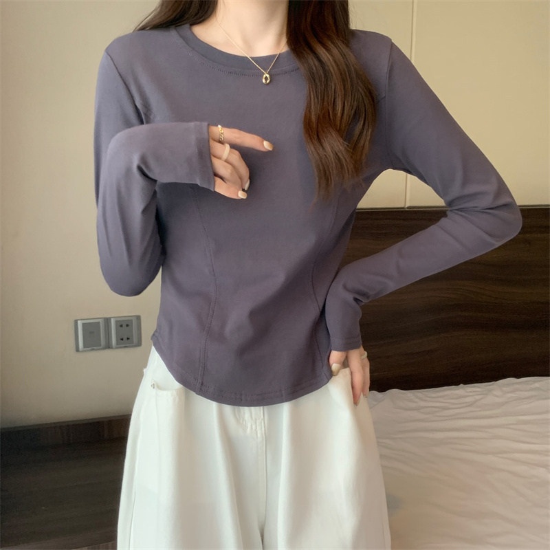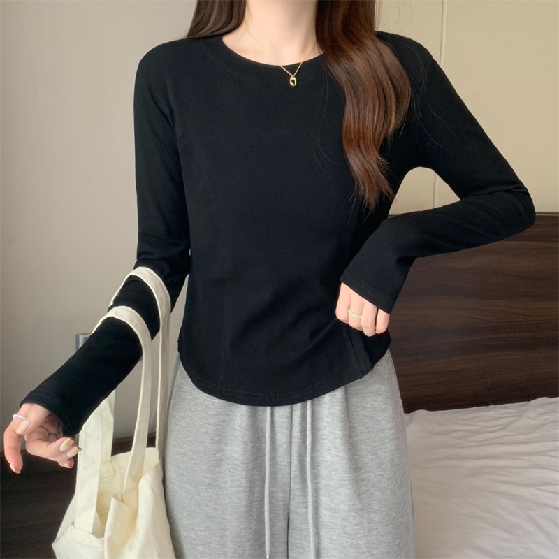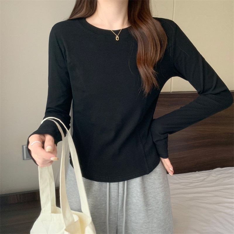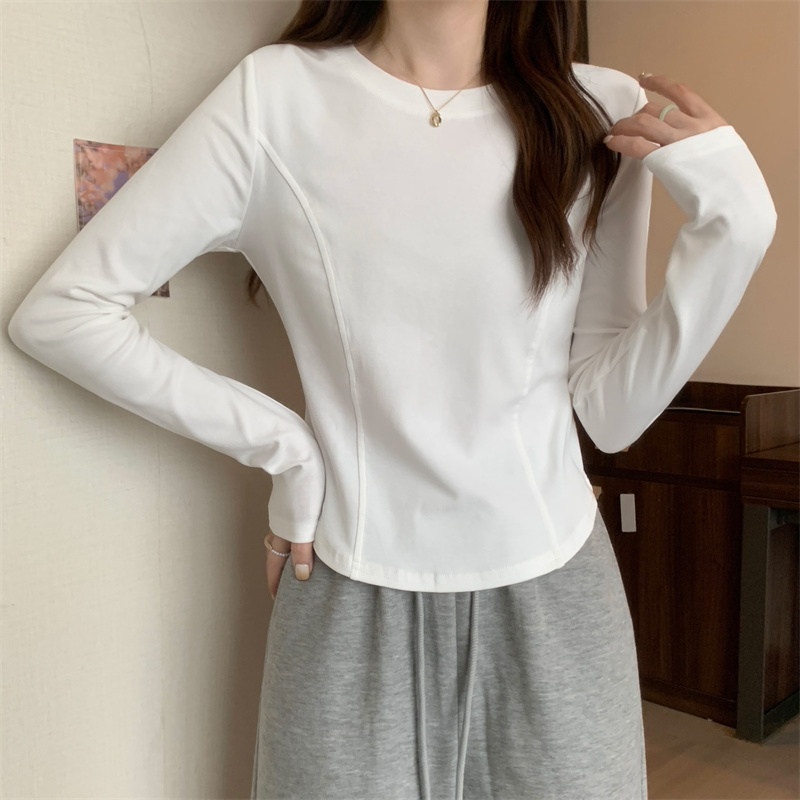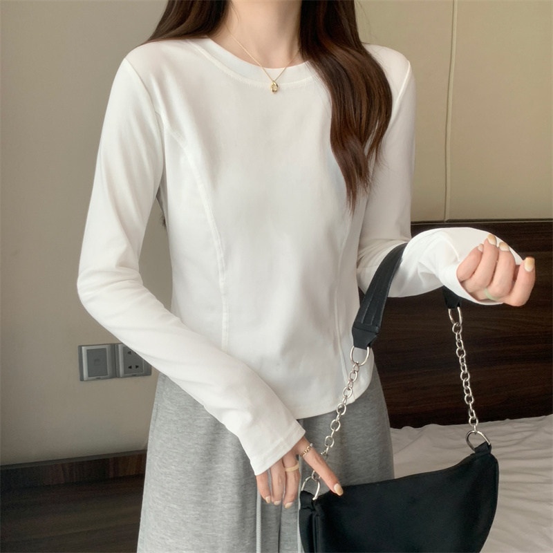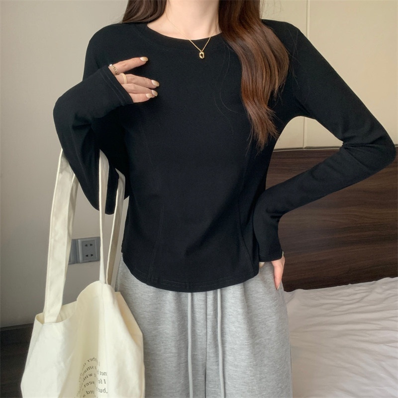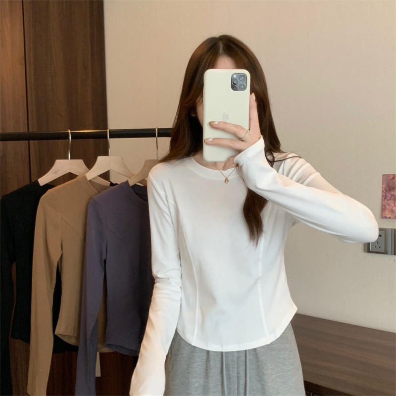 2025年早秋新款打底衫女修身辣妹设计感长袖T恤女学生短款上衣潮