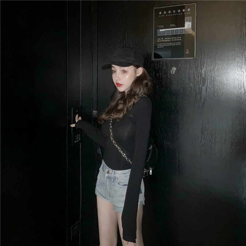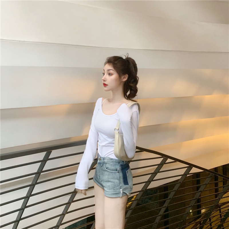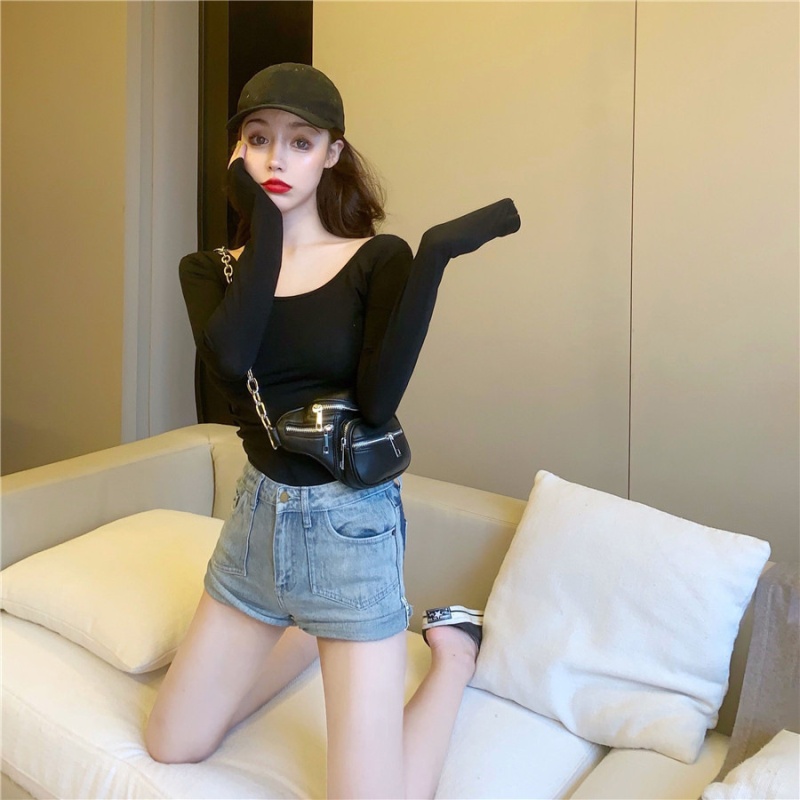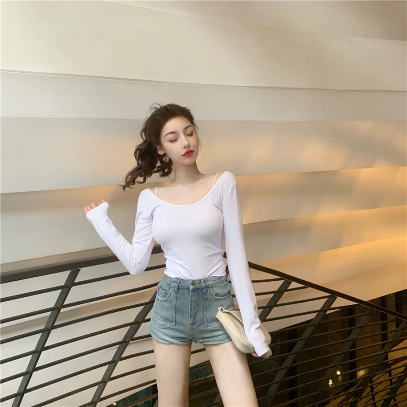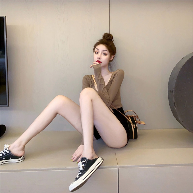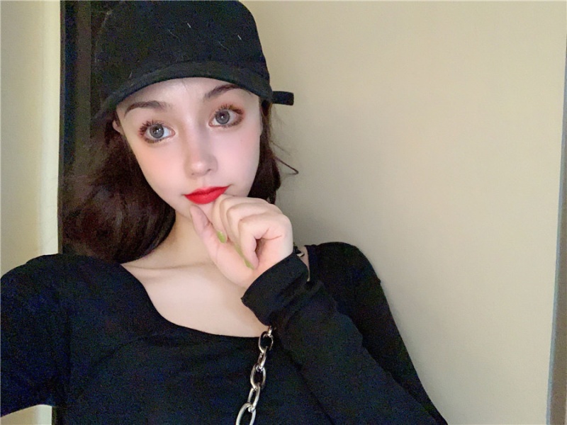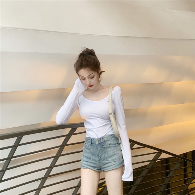 秋季2025新款性感露背长袖t恤女百搭设计感U领纯色上衣辣妹打底衫