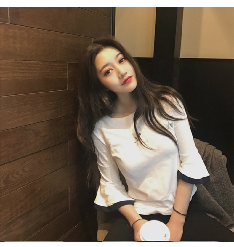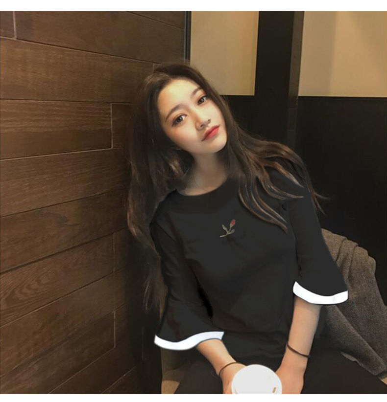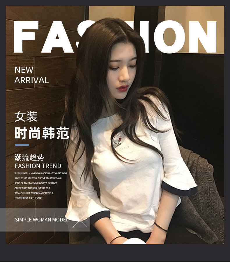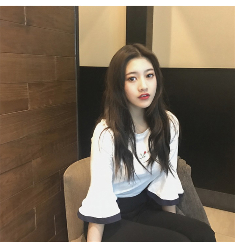 2025夏装韩版新款喇叭袖刺绣短袖T恤女学生上衣外贸女装一件代发