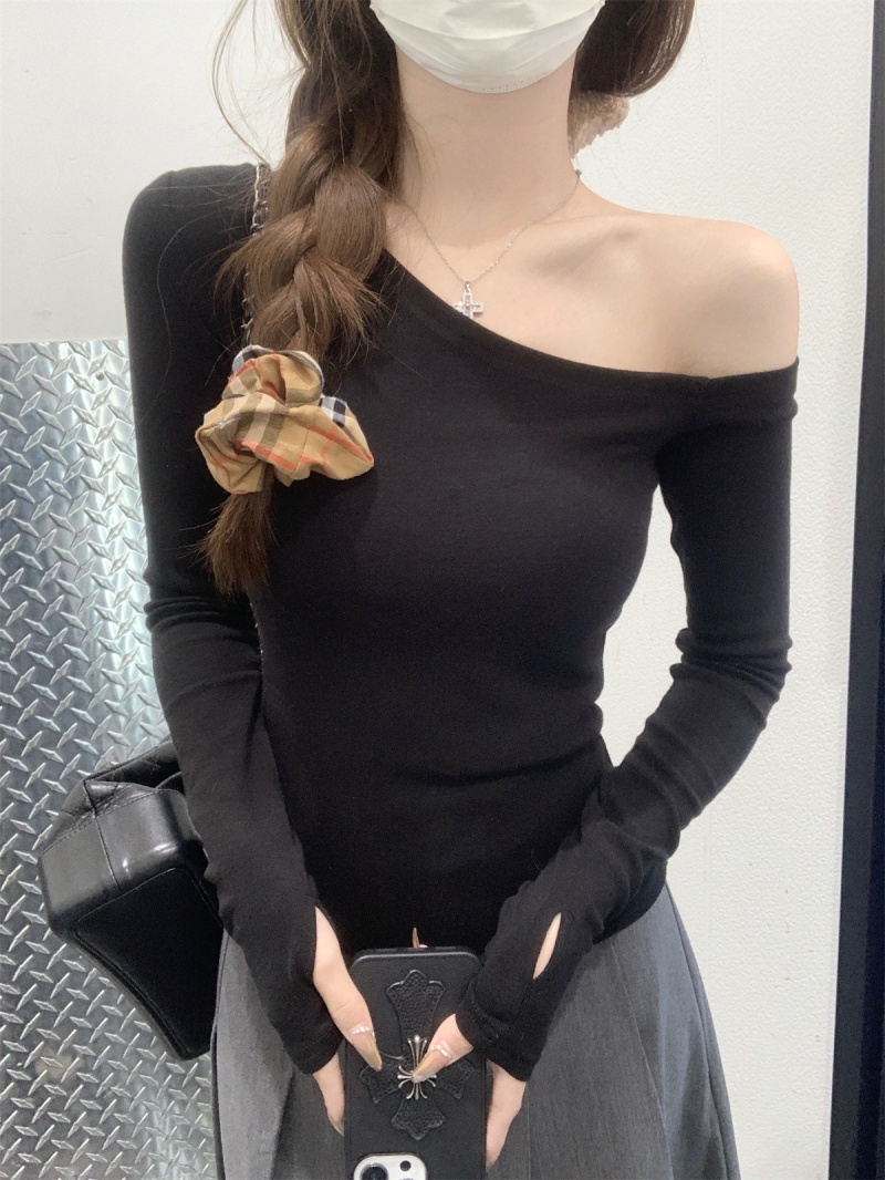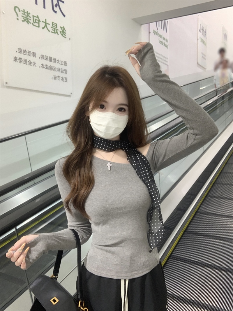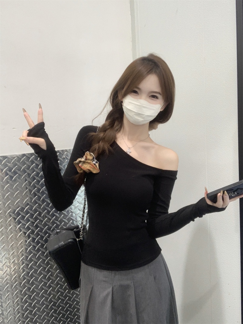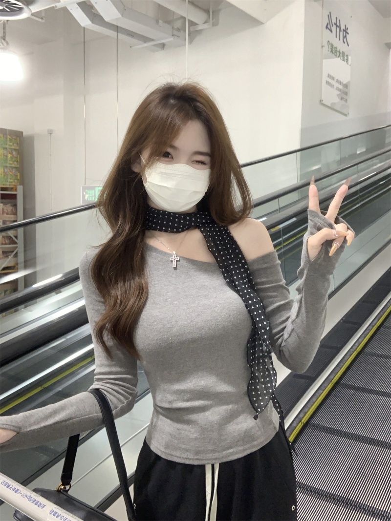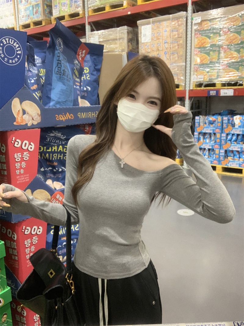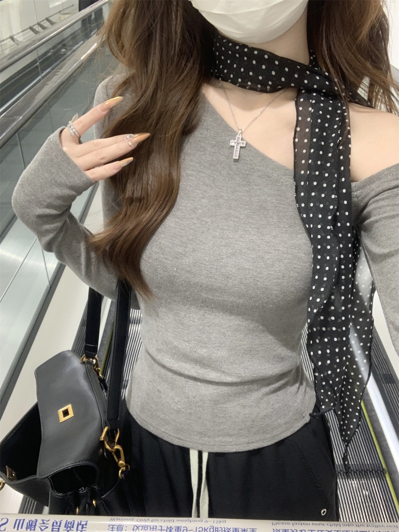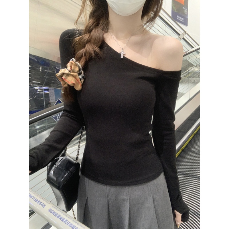 辣妹露肩长袖打底德绒T恤女秋季2025新款修身气质显瘦百搭上衣潮