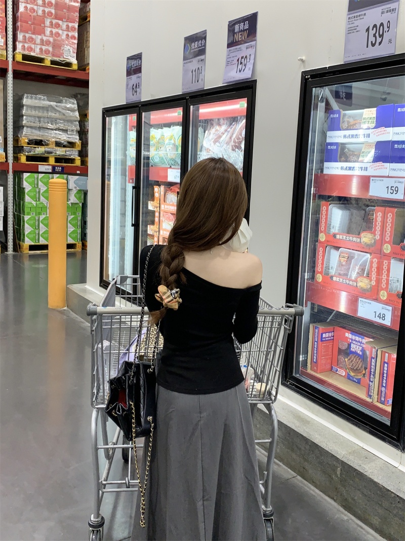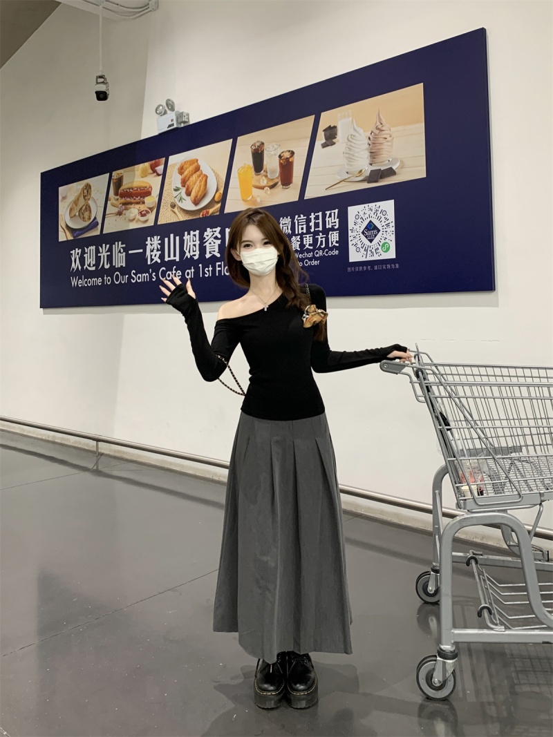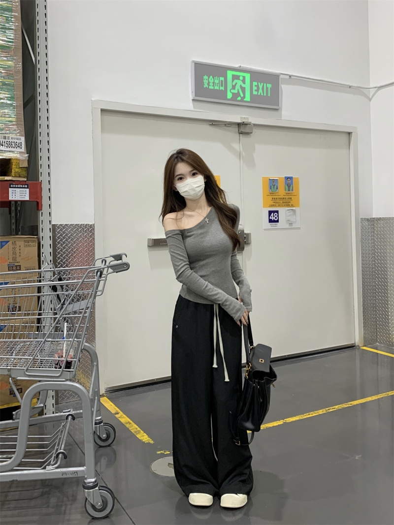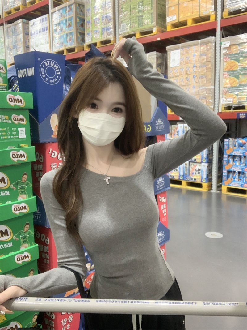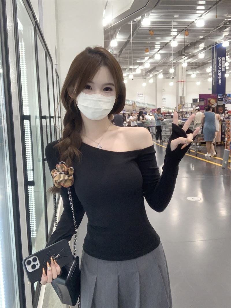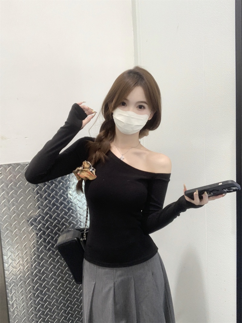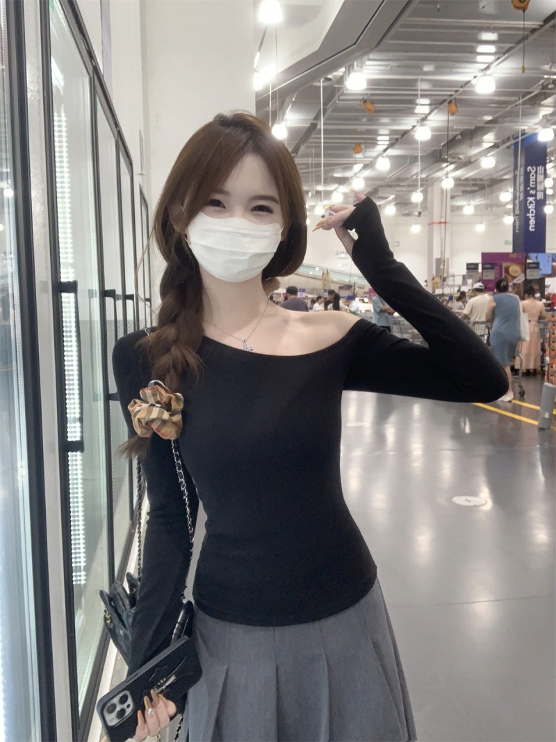 辣妹露肩长袖打底德绒T恤女秋季2025新款修身气质显瘦百搭上衣潮
