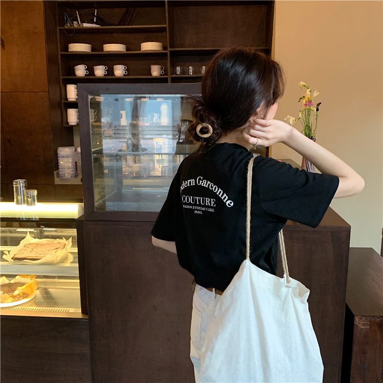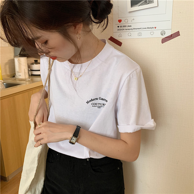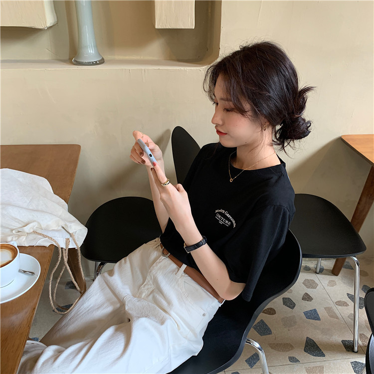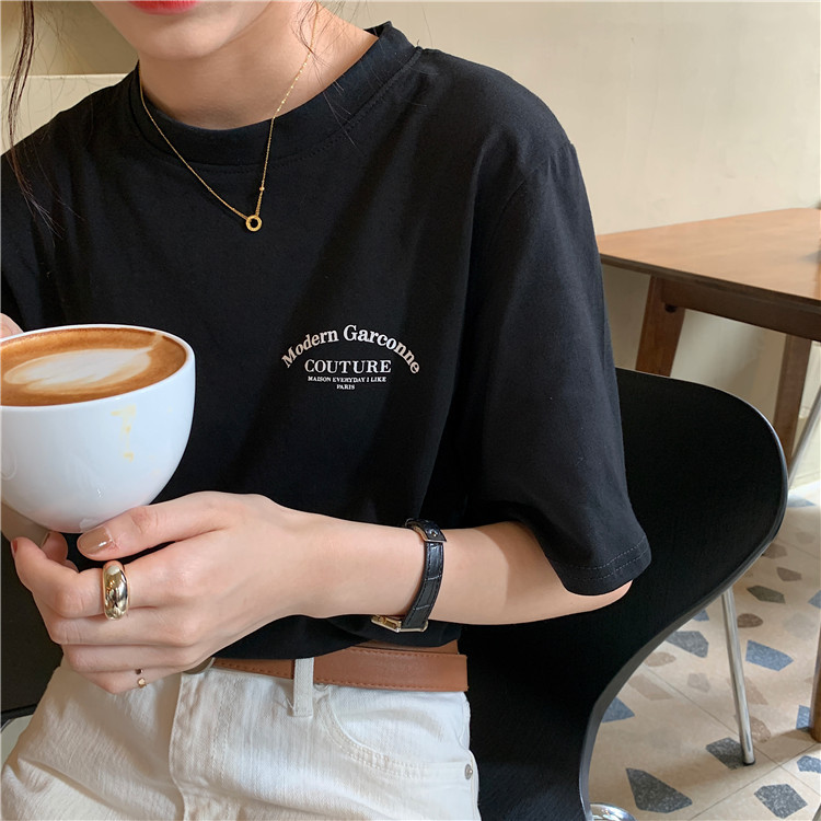 t恤女学生短袖上衣2025夏季新款韩版宽松百搭字母半袖体恤女潮