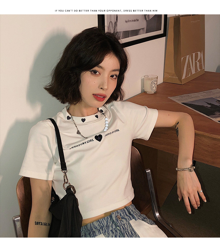 短款t恤女2025夏季新款韩版修身显瘦刺绣辣妹学生短袖上衣女装潮