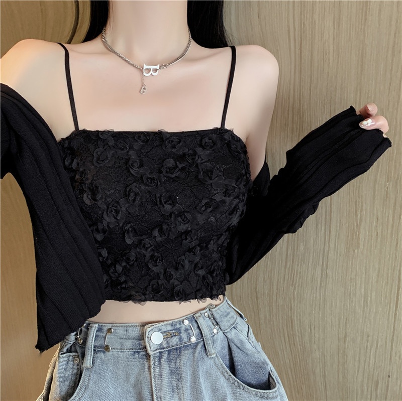 立体蕾丝吊带背心女夏季纯欲风抹胸短款内搭可外穿露脐上衣小吊带