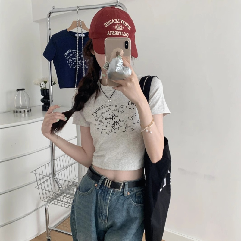 韩版修身短款趣味印花短袖T恤女夏季2025新款百搭显瘦学生上衣ins