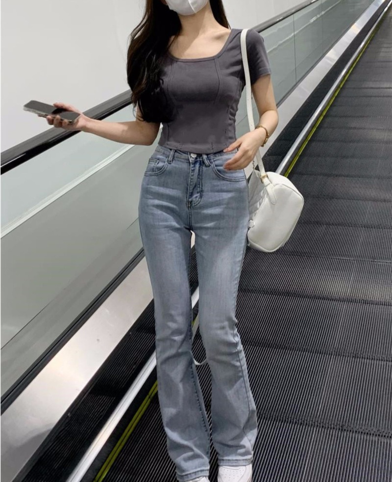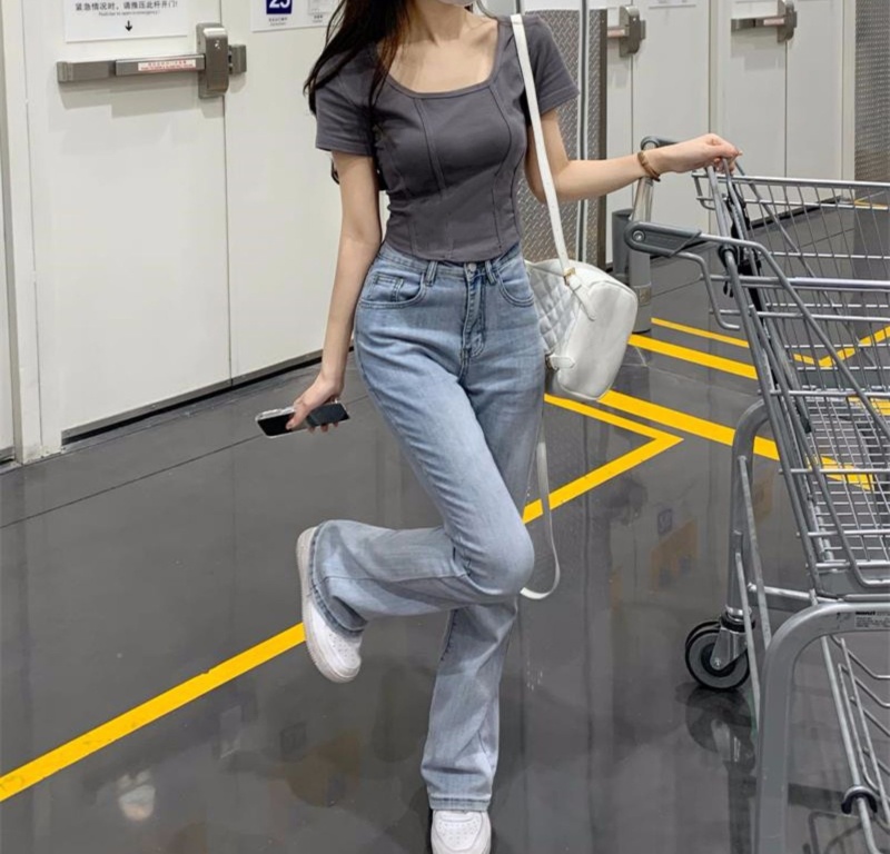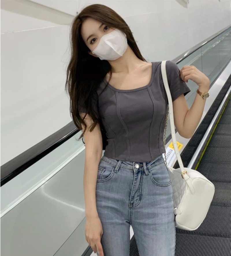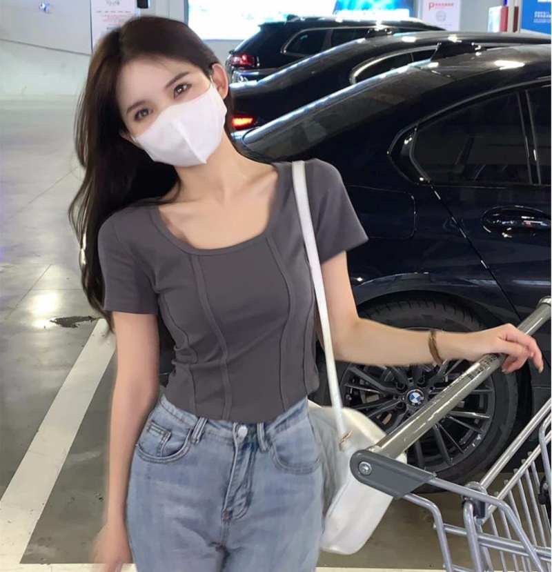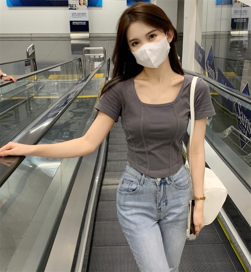 方领T恤女装夏季韩版2022新款辣妹风设计感修身显瘦短款短袖上衣