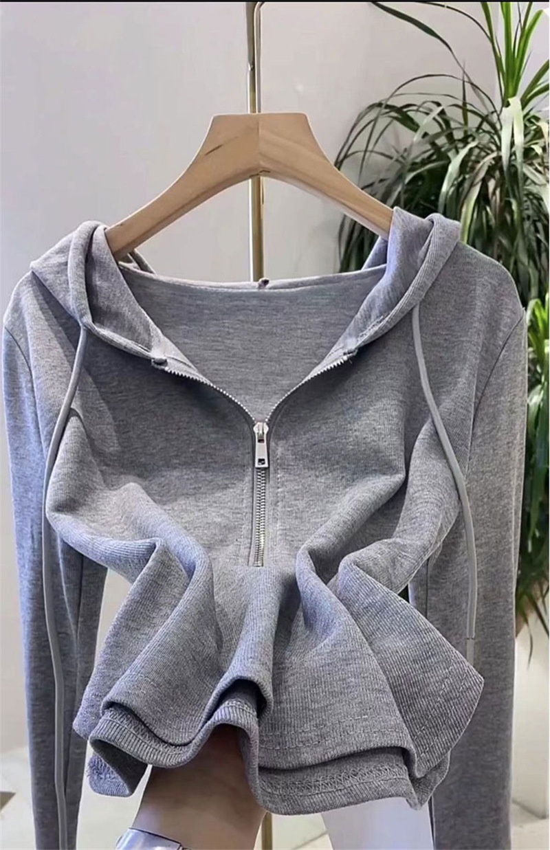 2*2莫代尔260g不规则连帽长袖T恤女早秋新款小众洋气打底衫ins潮