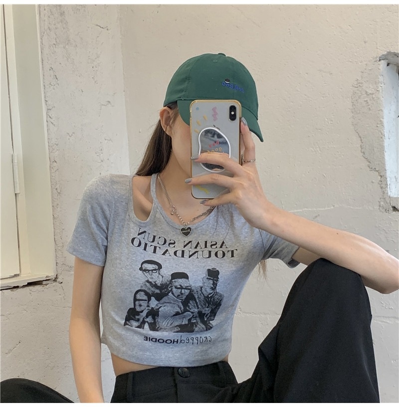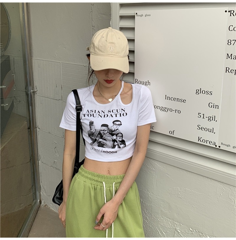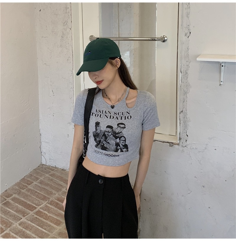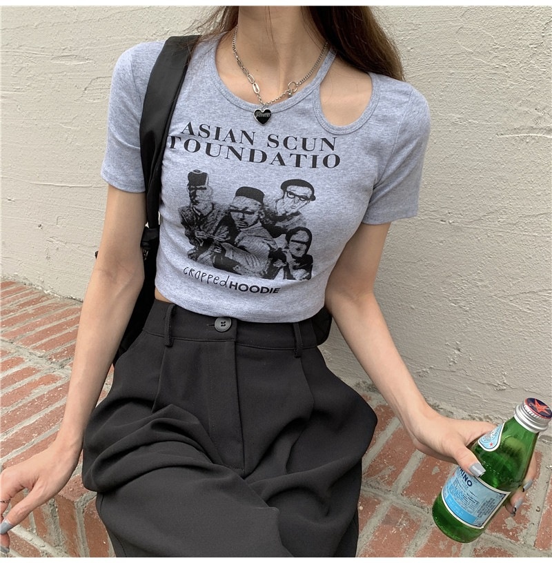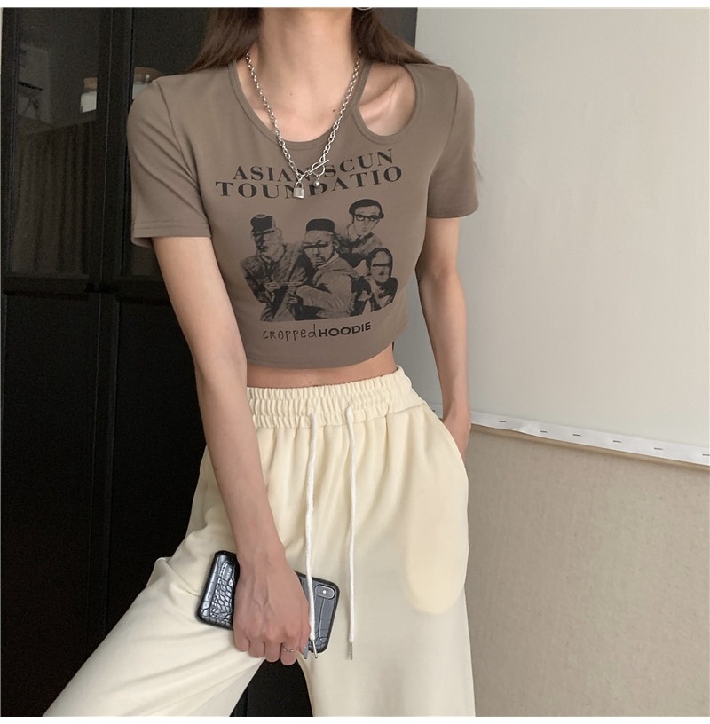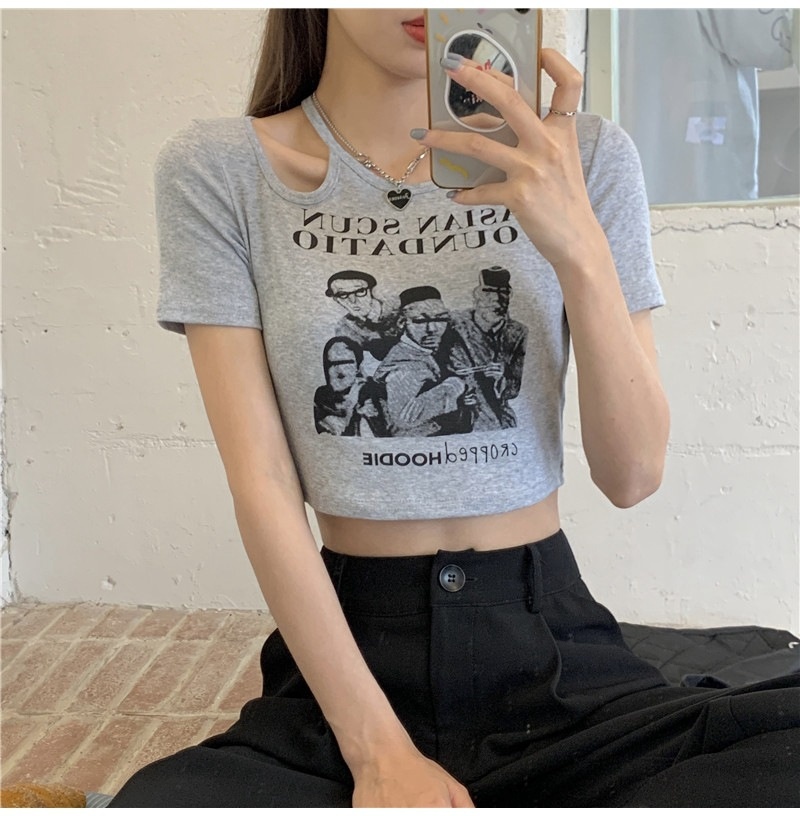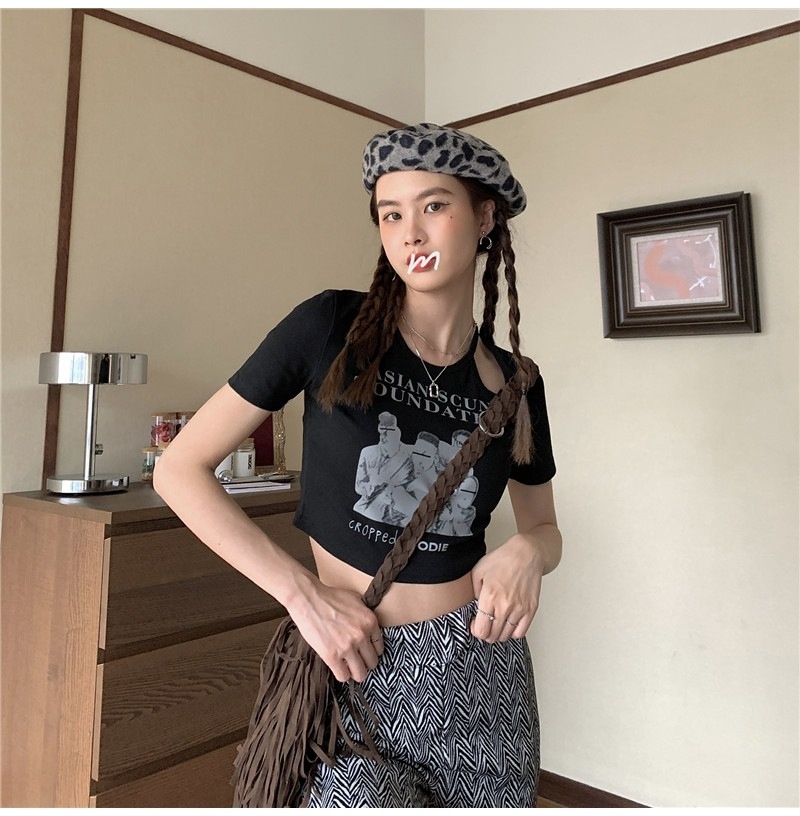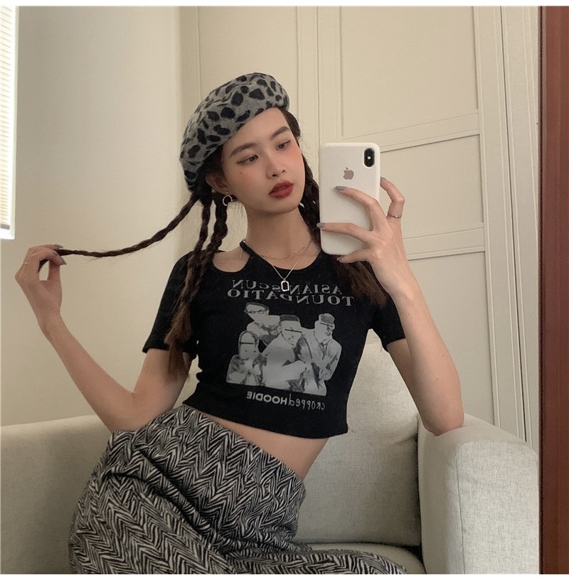 短款短袖T恤女2025年夏季新款美式复古修身心机镂空辣妹ins潮上衣