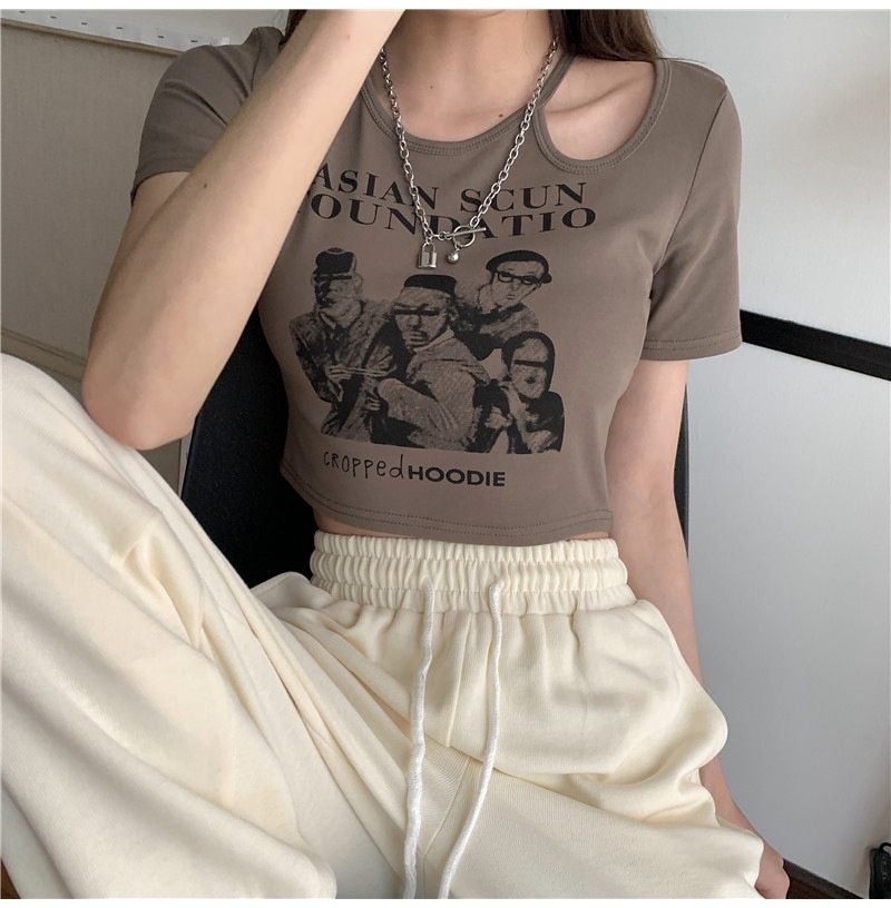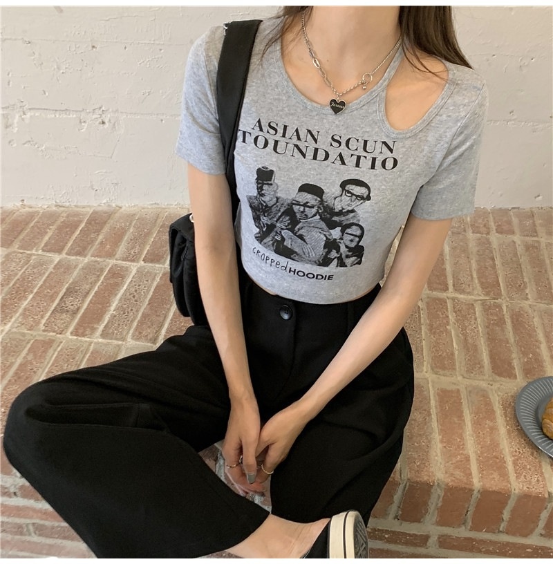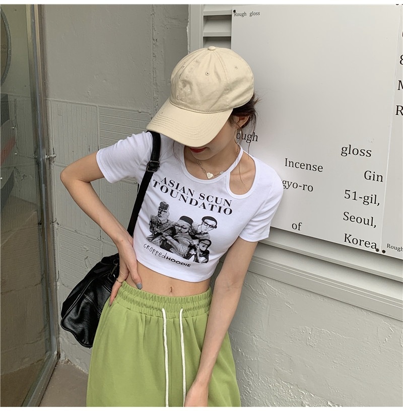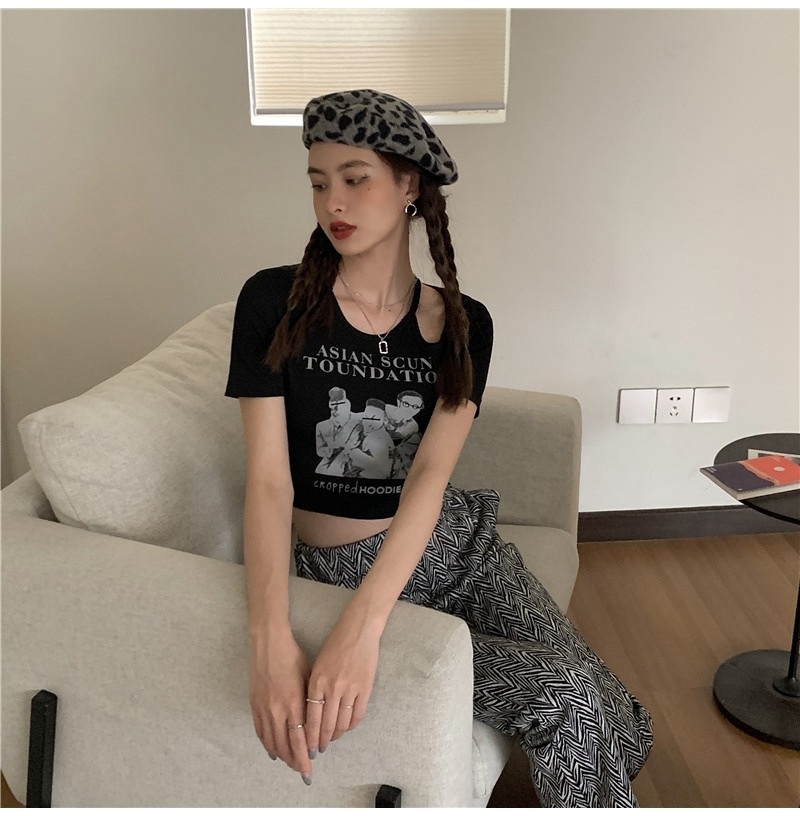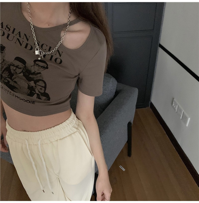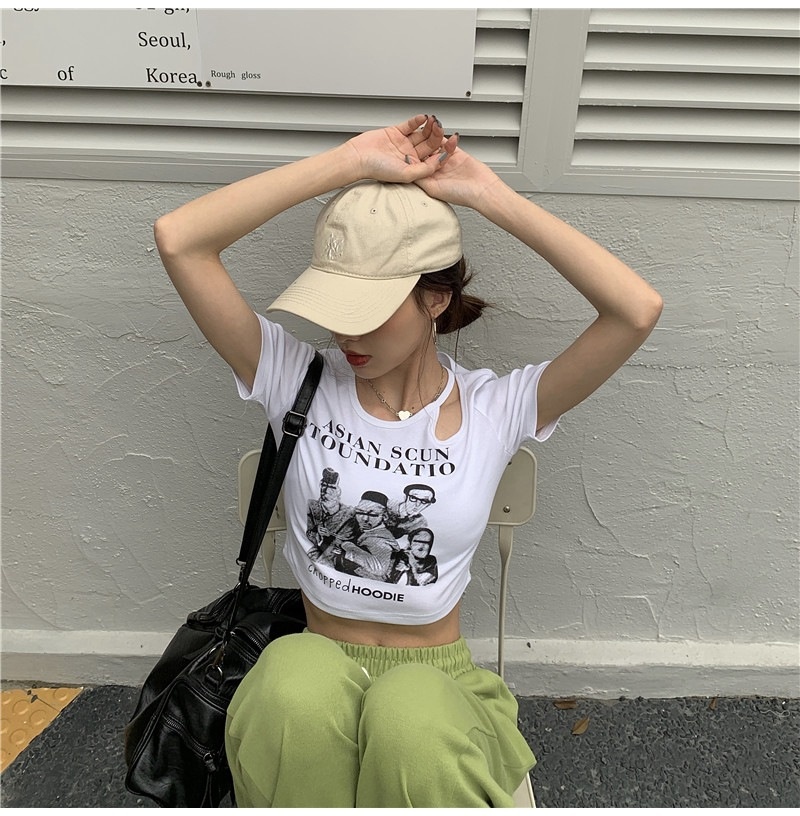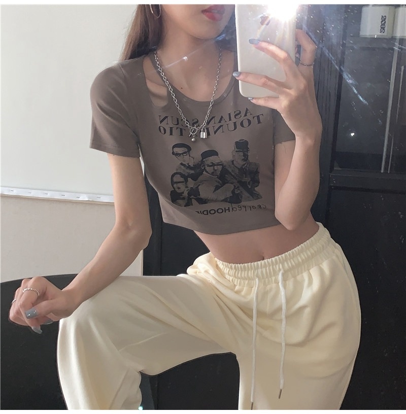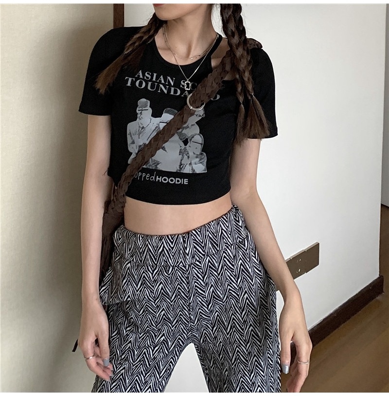短款短袖T恤女2025年夏季新款美式复古修身心机镂空辣妹ins潮上衣