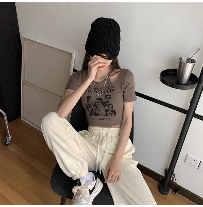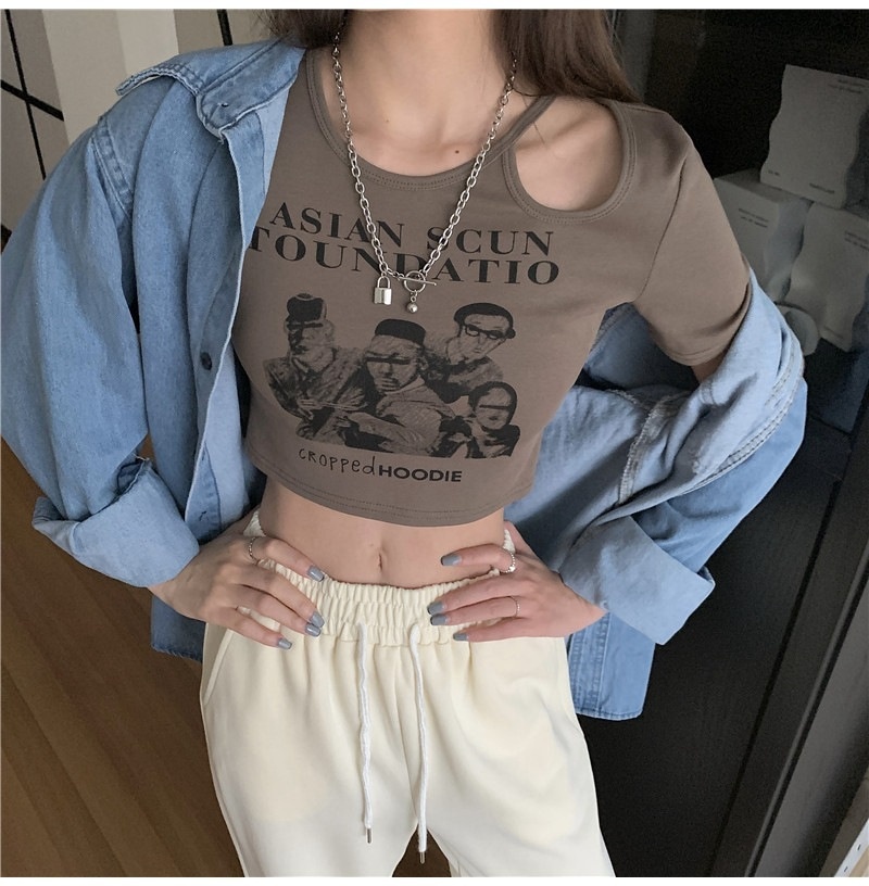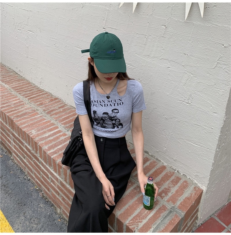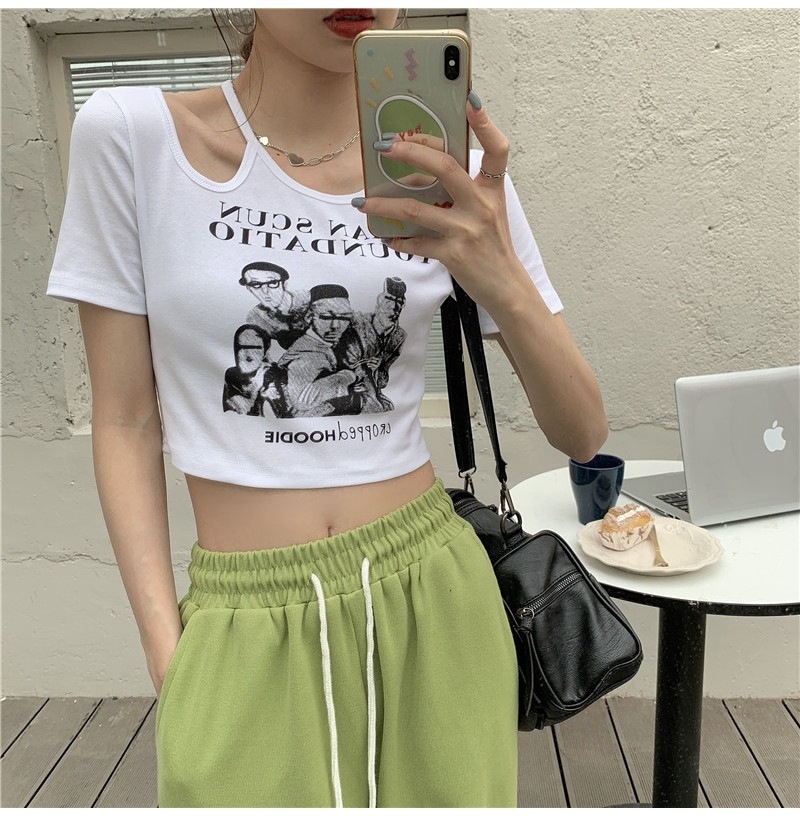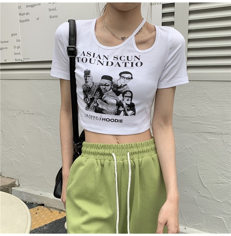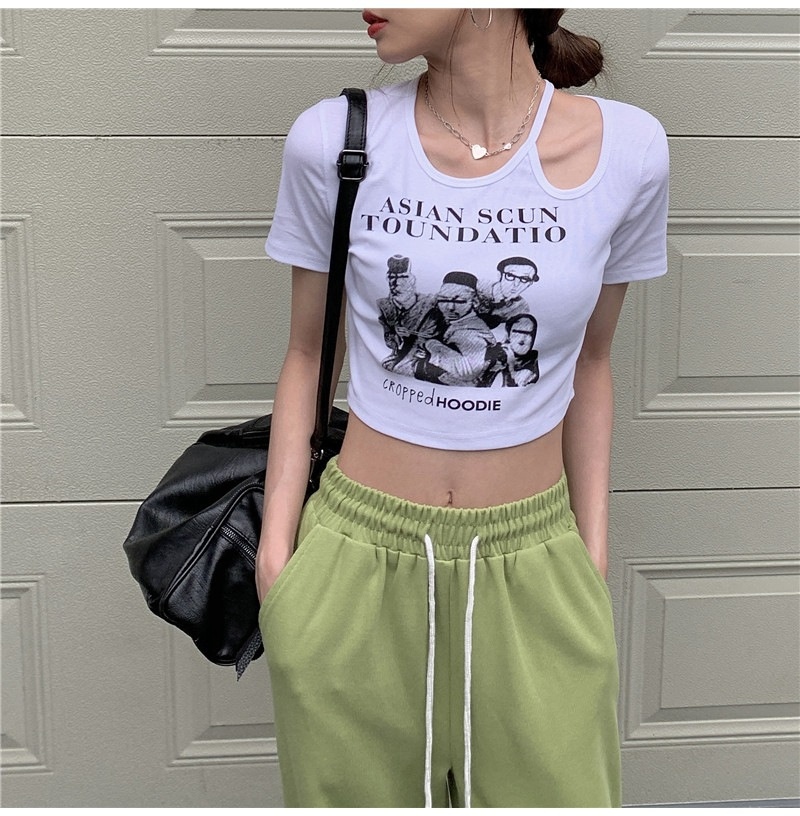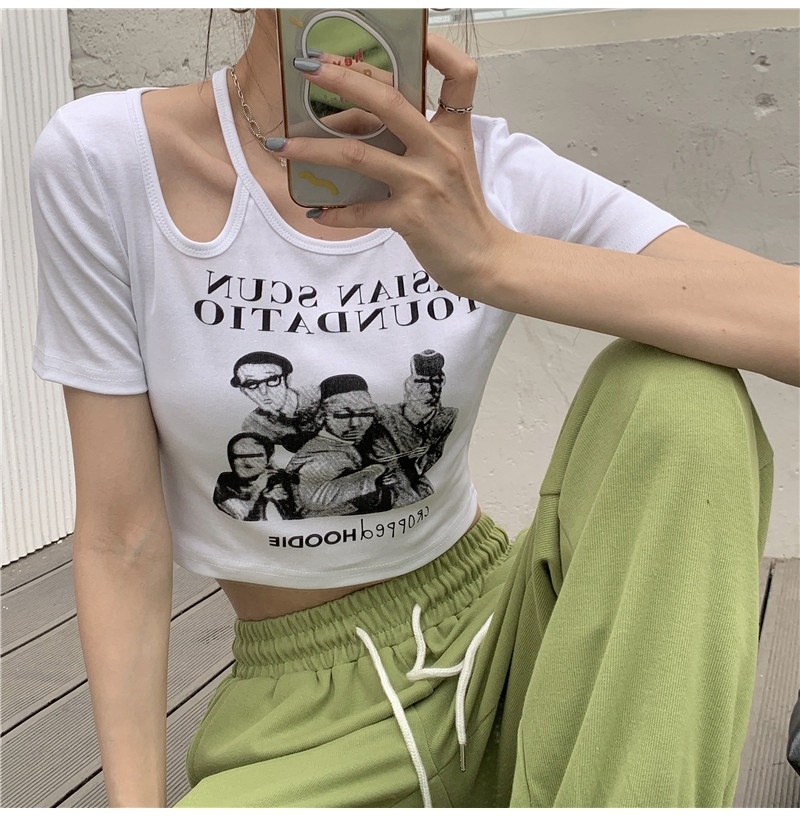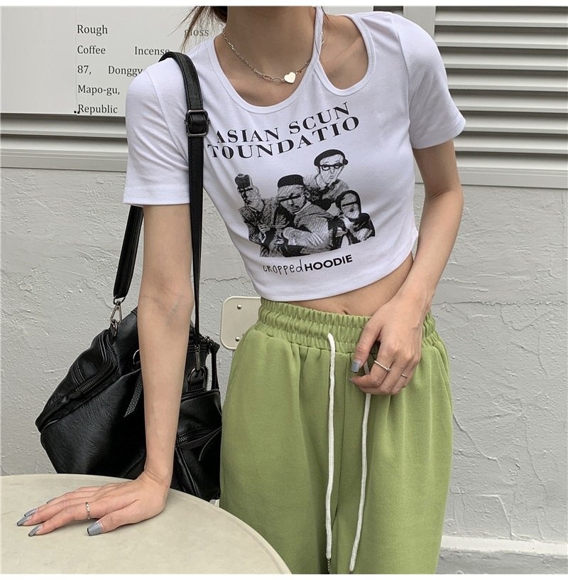 短款短袖T恤女2025年夏季新款美式复古修身心机镂空辣妹ins潮上衣