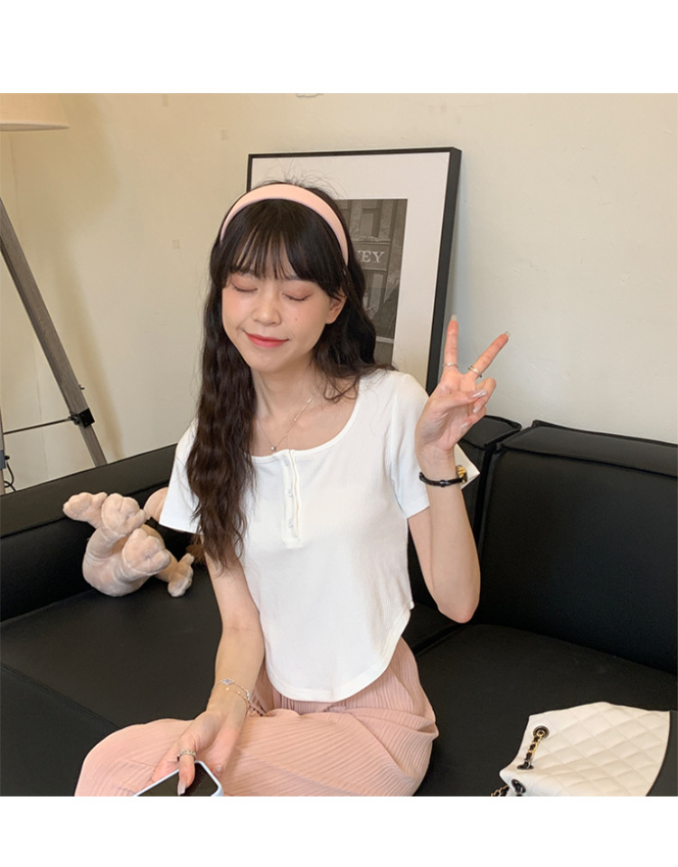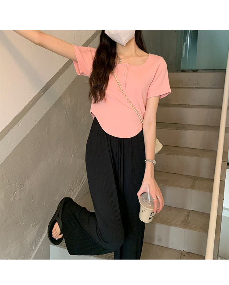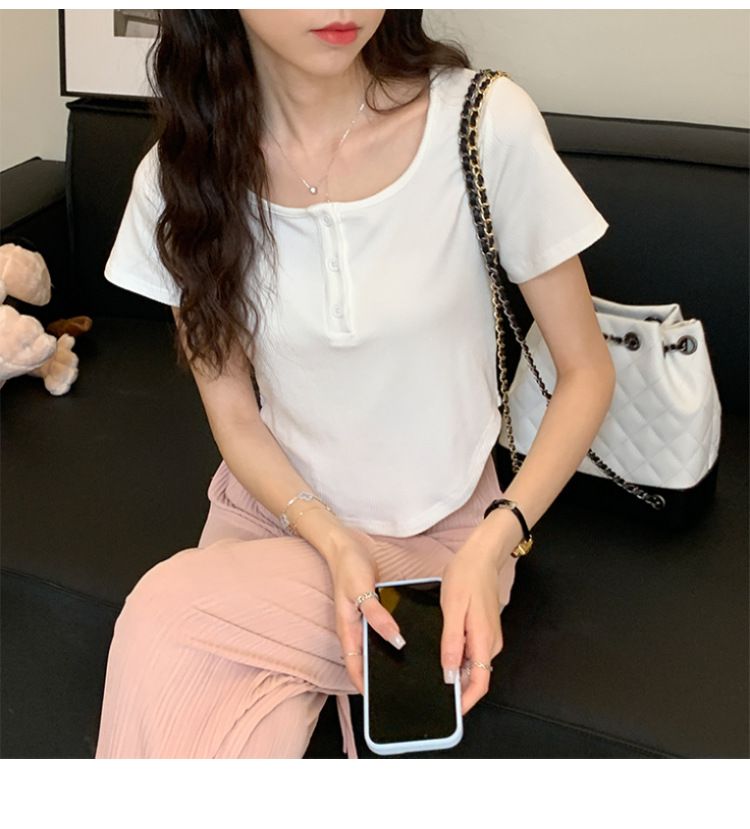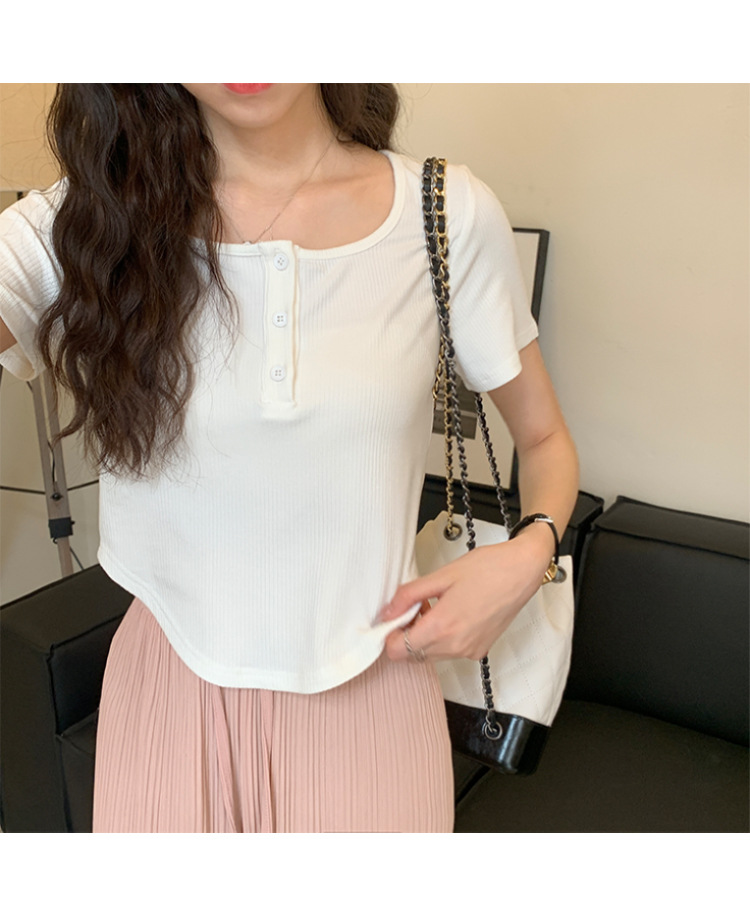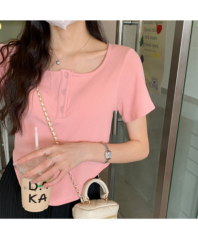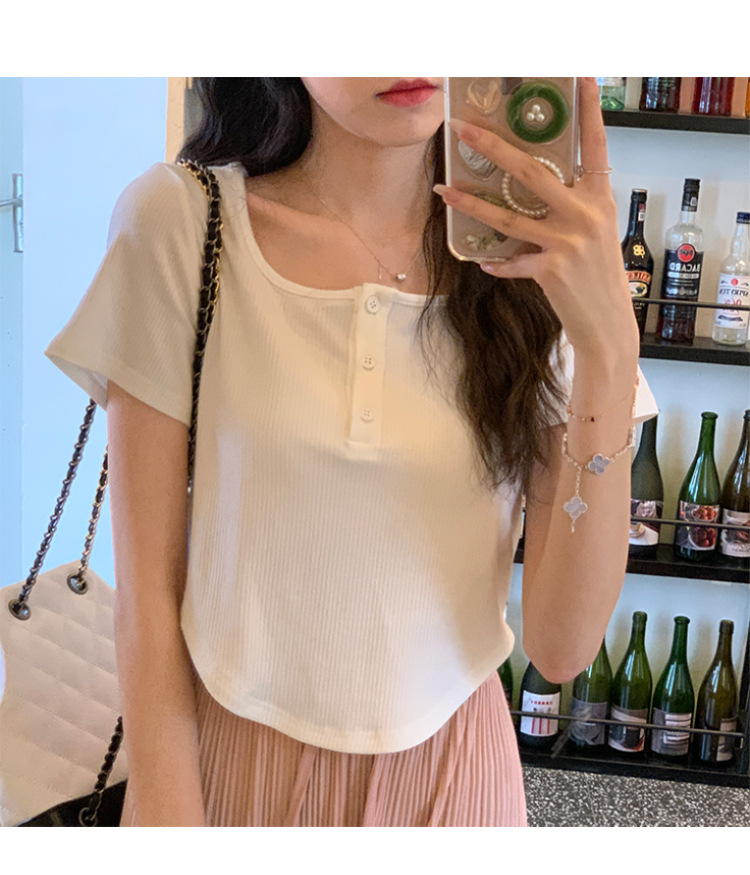 491#冰丝螺纹 短款T恤女2023早春新款韩系休闲显瘦短袖内搭上衣