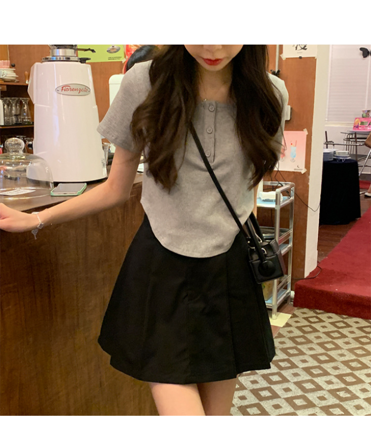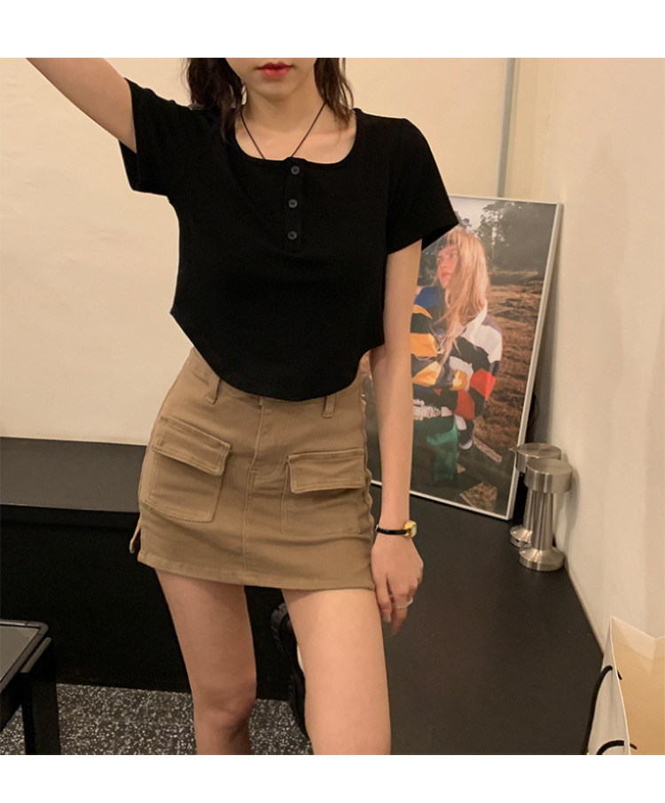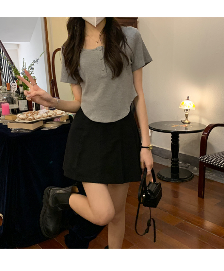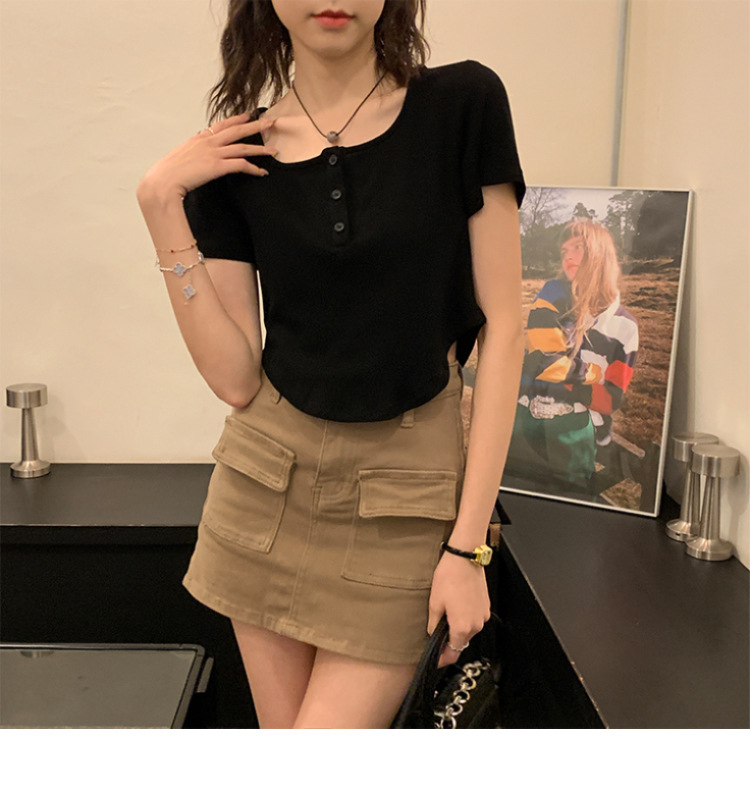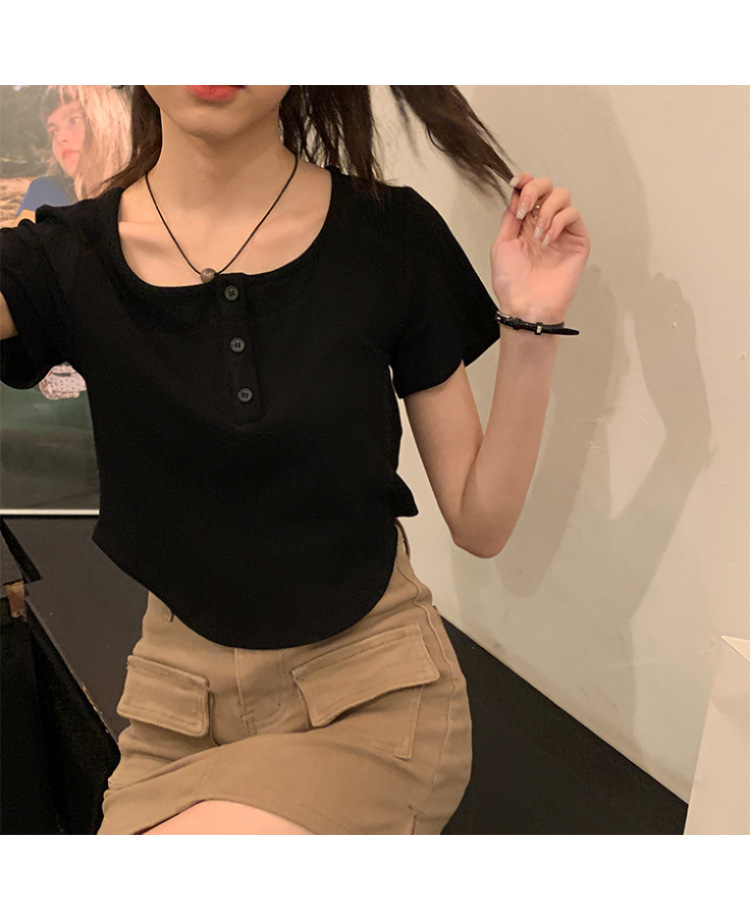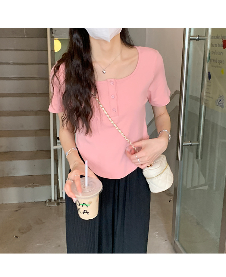 491#冰丝螺纹 短款T恤女2023早春新款韩系休闲显瘦短袖内搭上衣