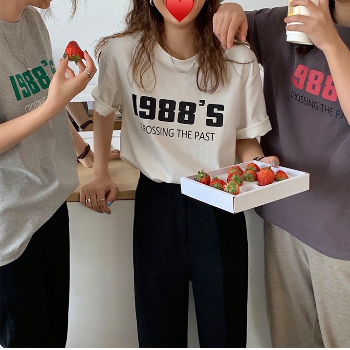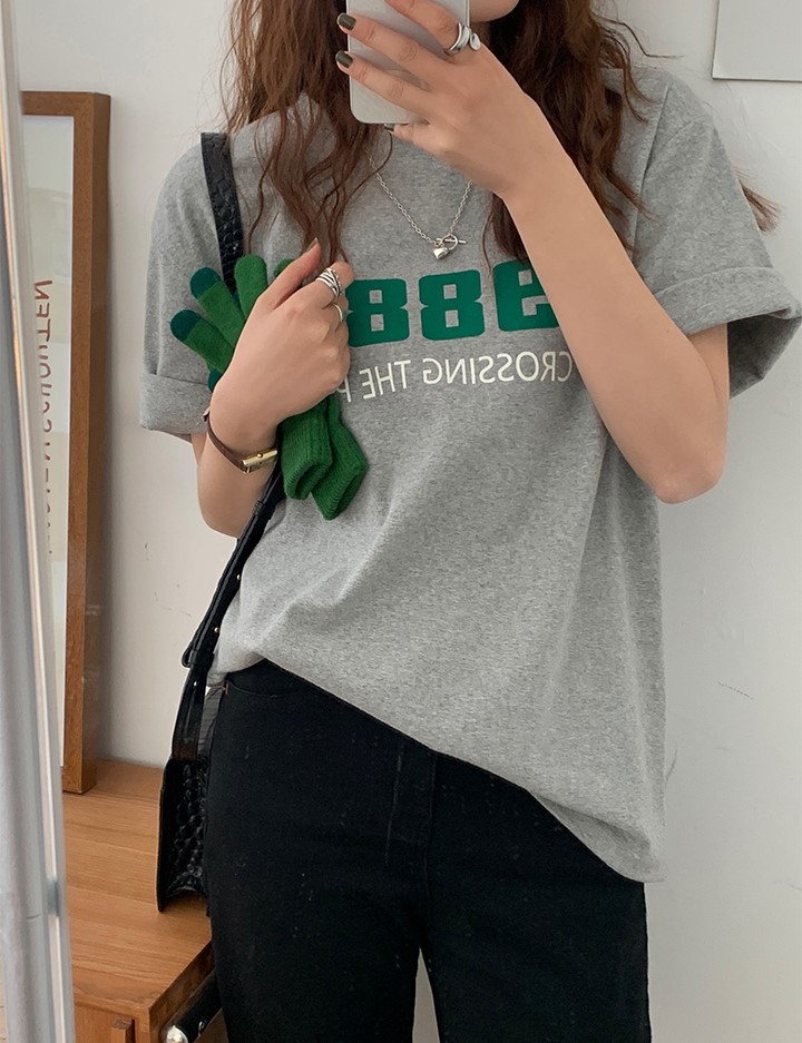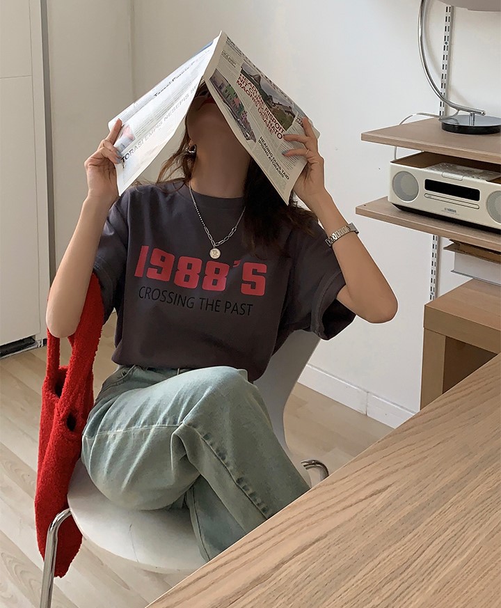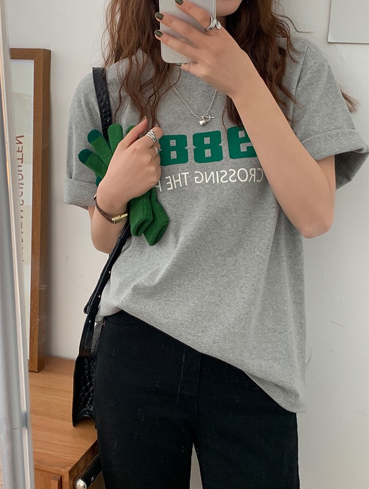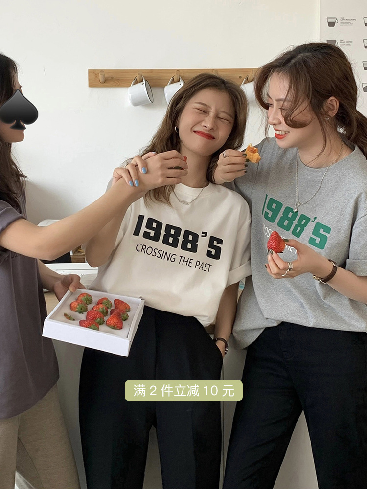 字母印花百搭圆领短袖T恤女2025夏季新款韩版宽松显瘦学生上衣潮