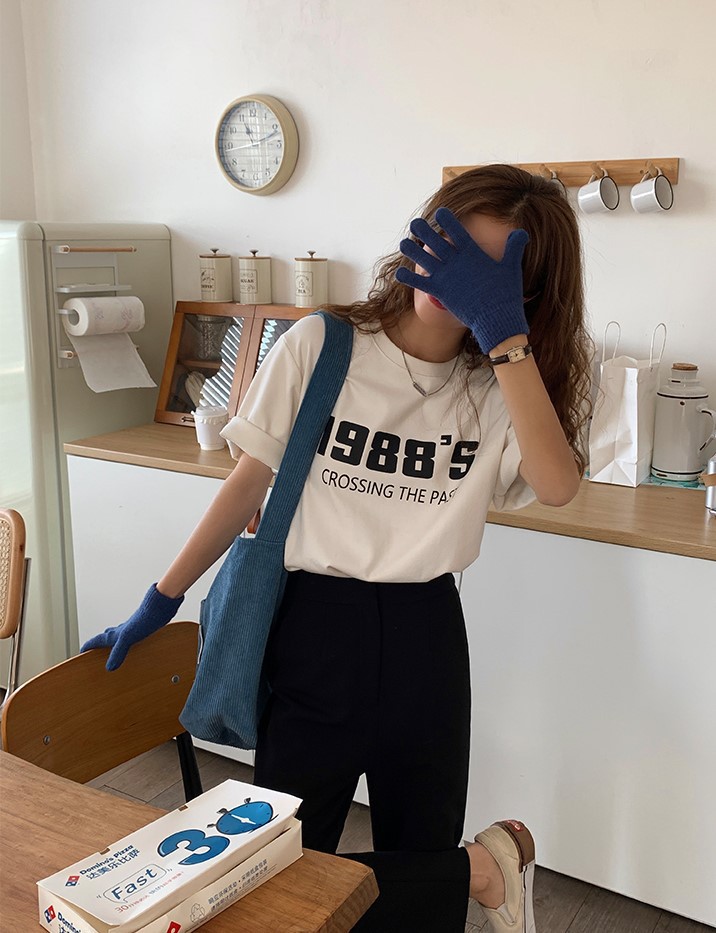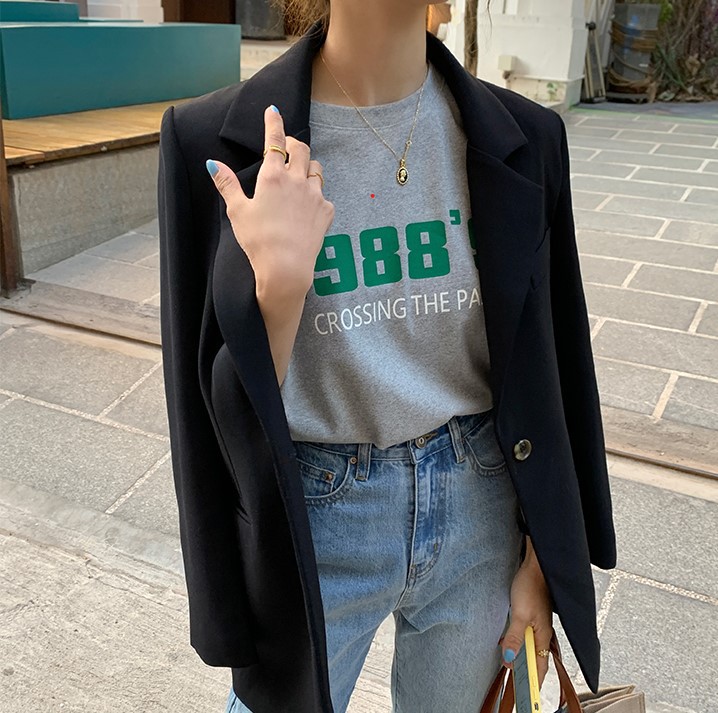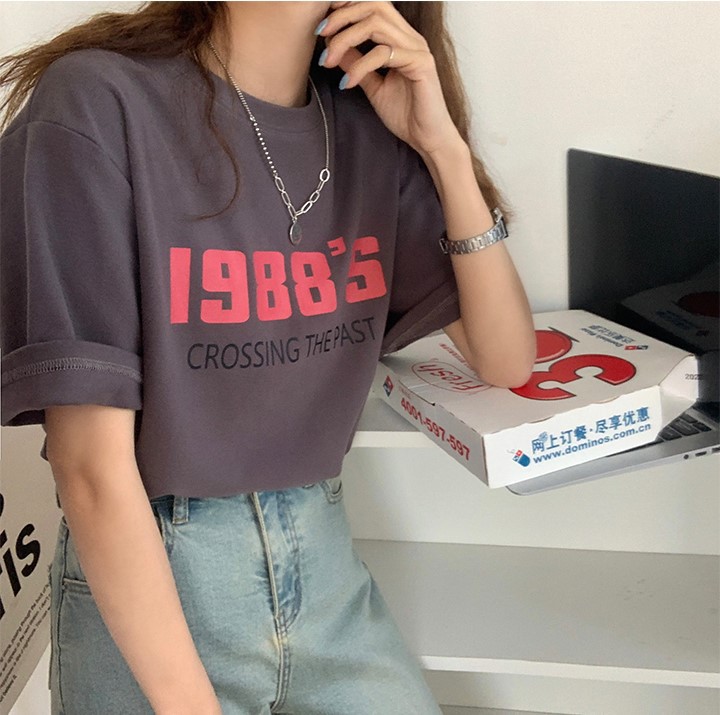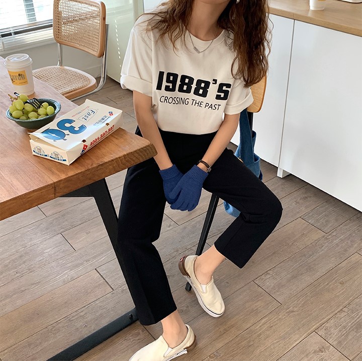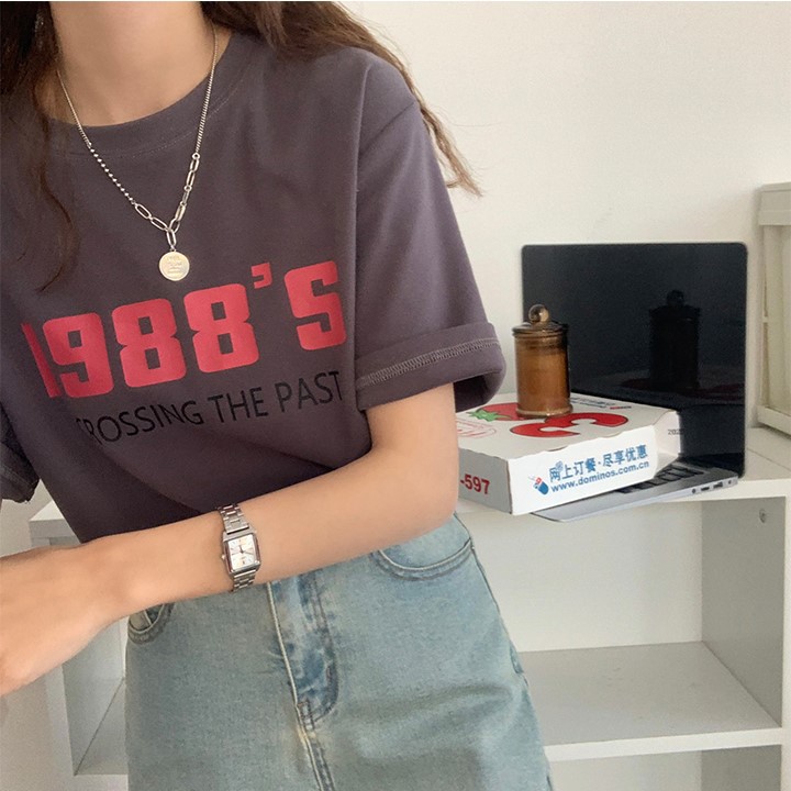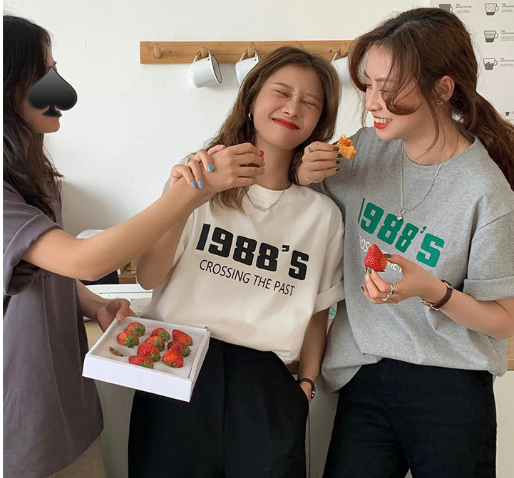 字母印花百搭圆领短袖T恤女2025夏季新款韩版宽松显瘦学生上衣潮