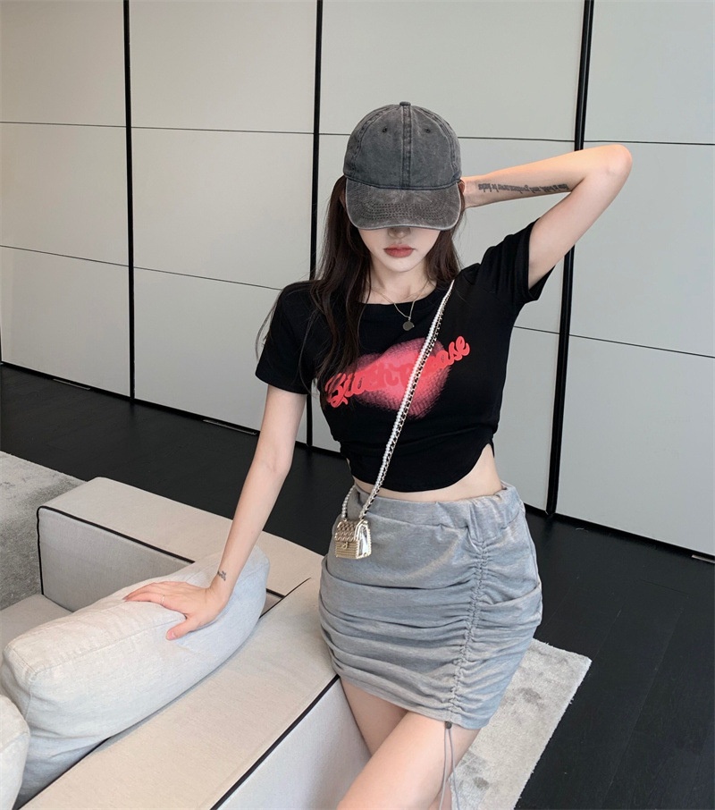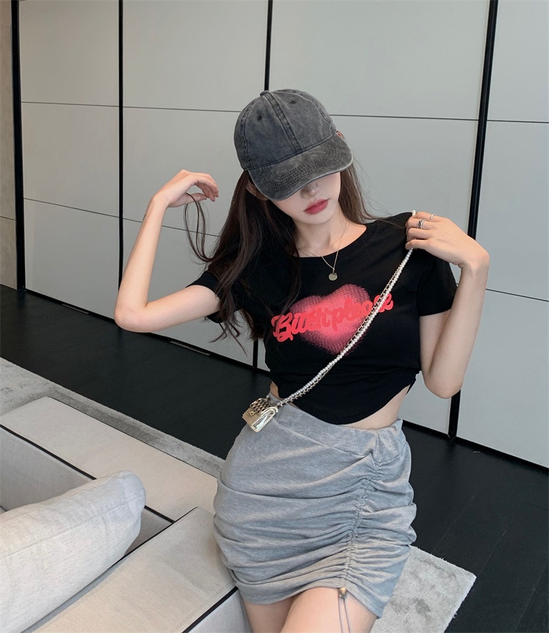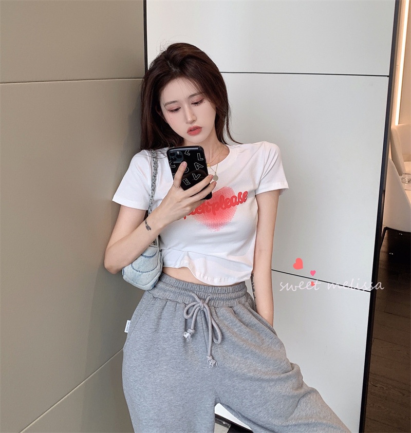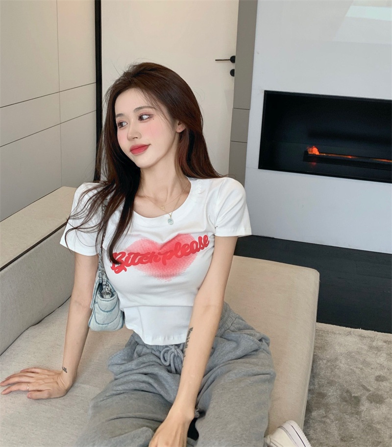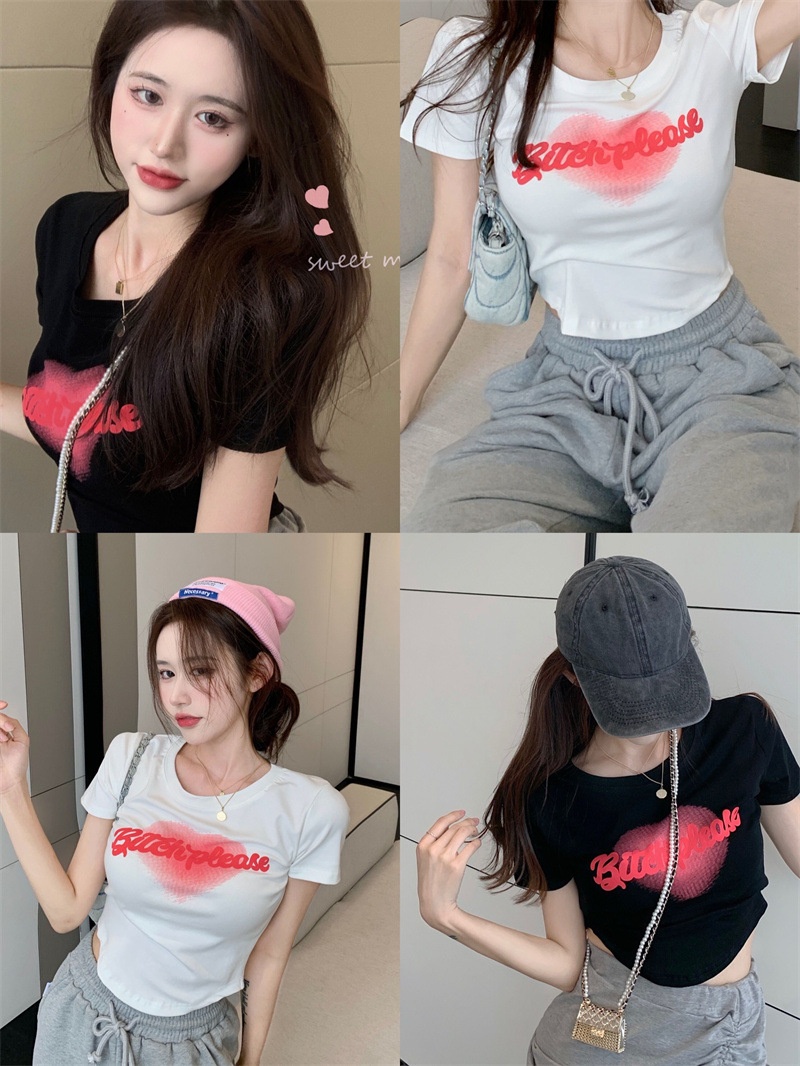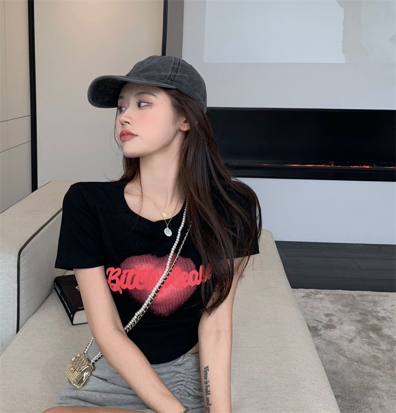 爱心字母印花T恤女装2025夏季新款ins修身短款设计感小众短袖上衣