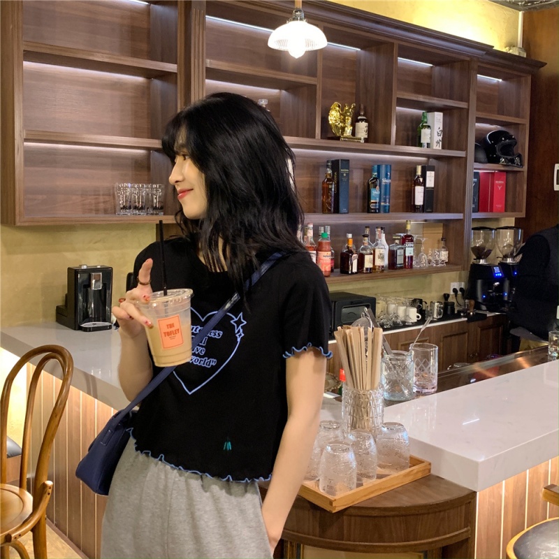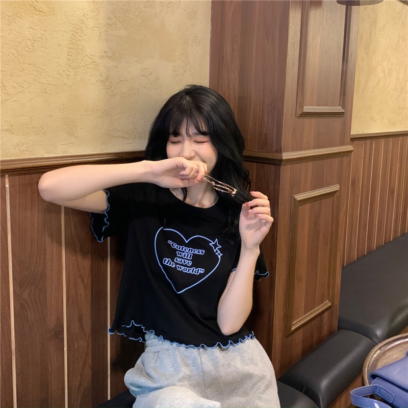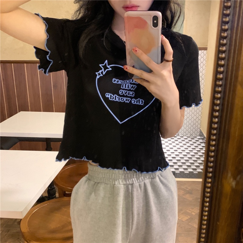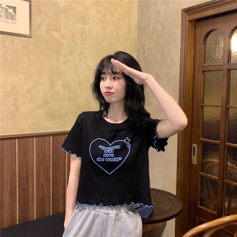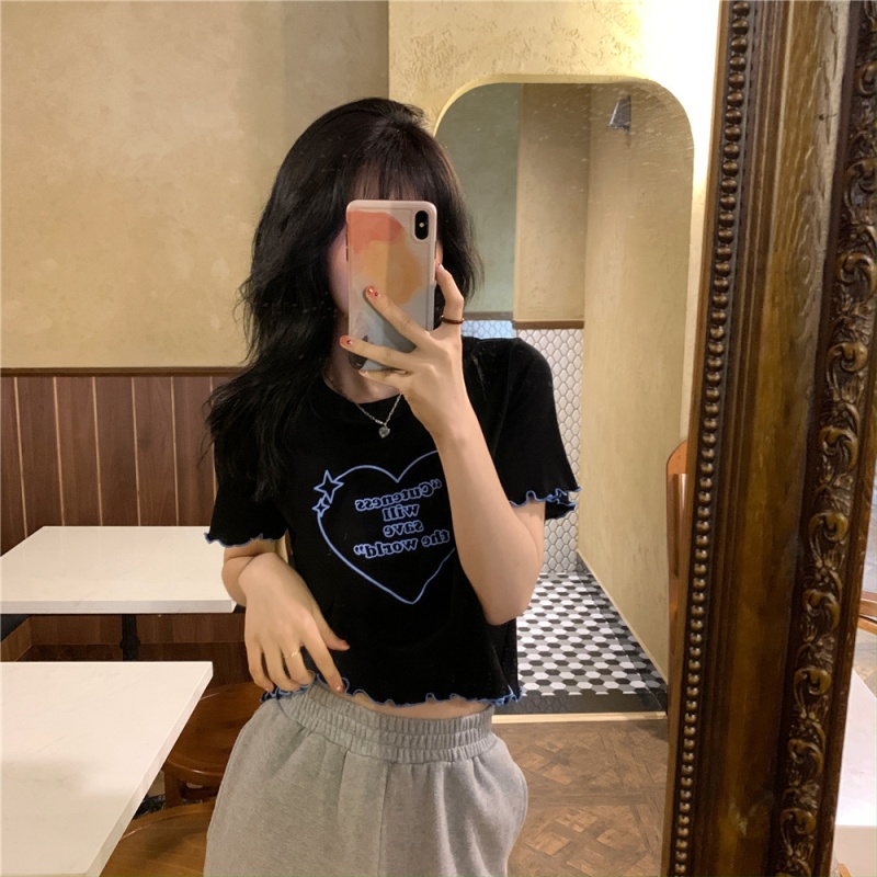 网红短款黑色T恤女2025新款夏季韩版修身辣妹穿搭减龄短袖上衣ins