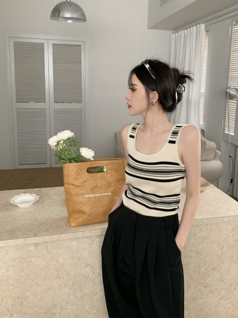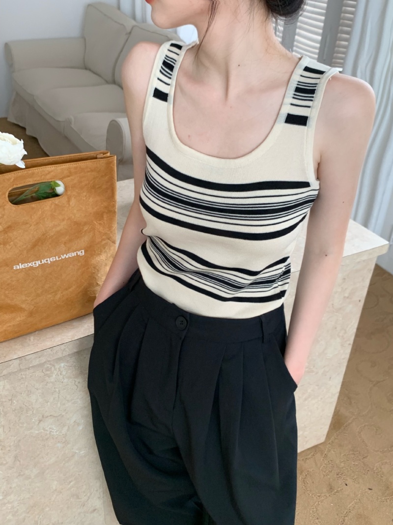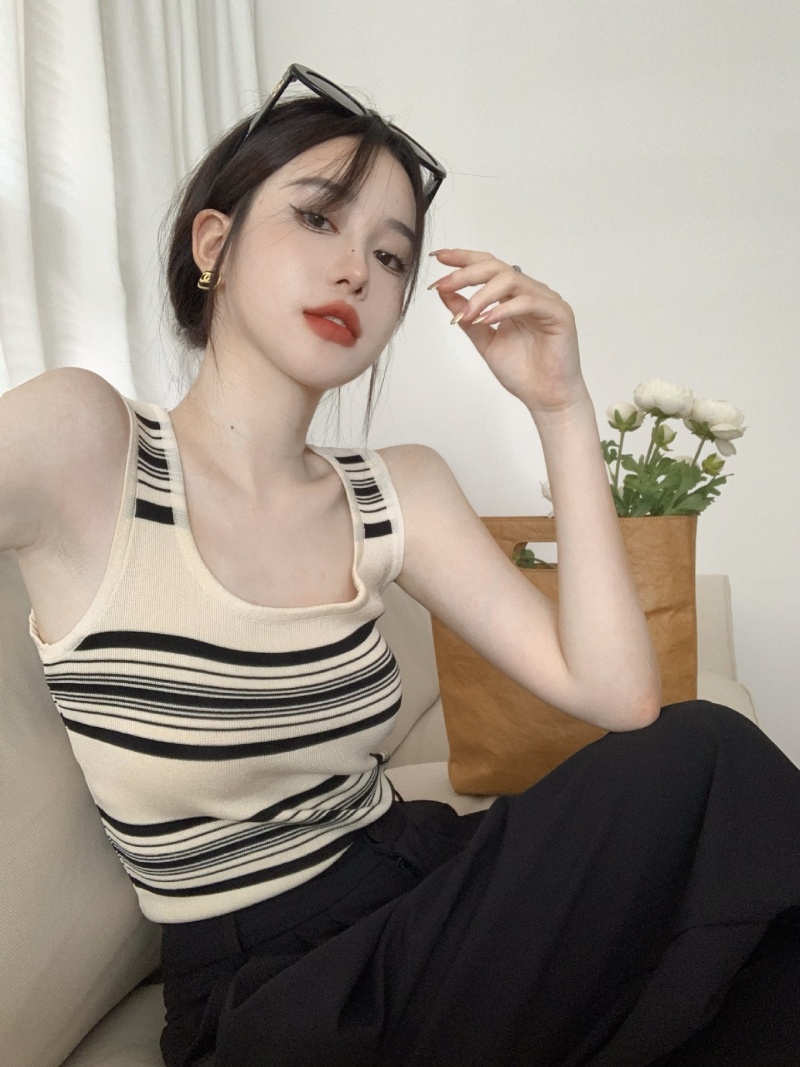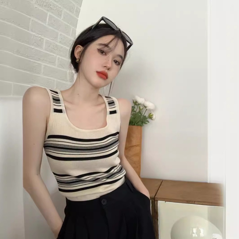 撞色条纹冰丝针织无袖背心设计感小众减龄百搭内搭遮副乳显瘦上衣