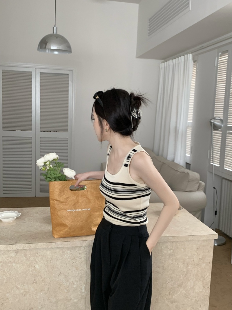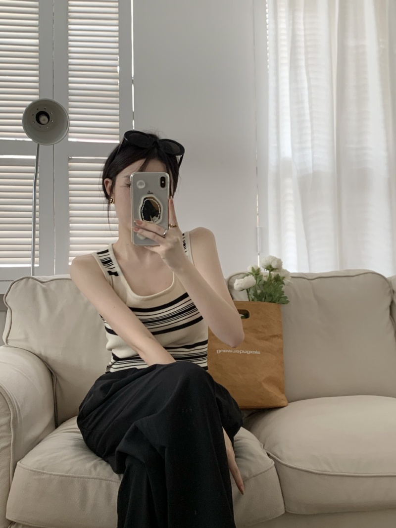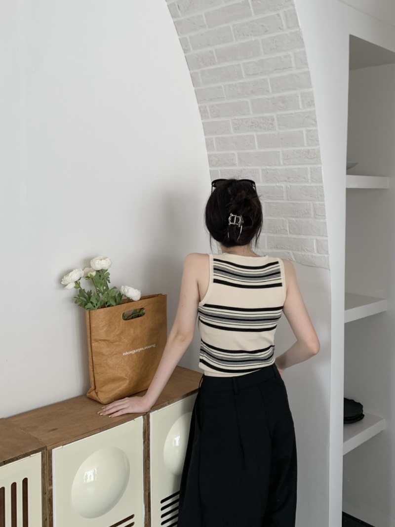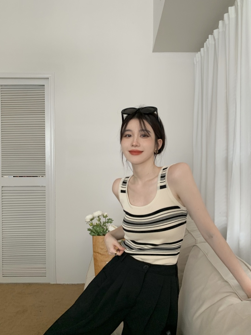 撞色条纹冰丝针织无袖背心设计感小众减龄百搭内搭遮副乳显瘦上衣