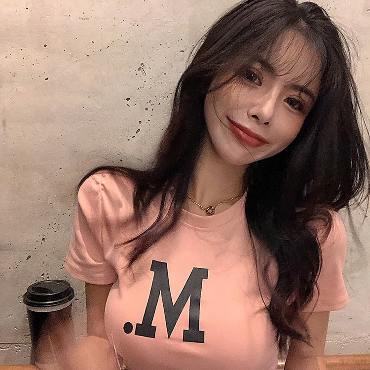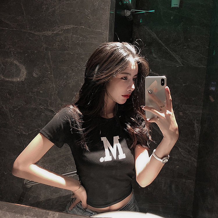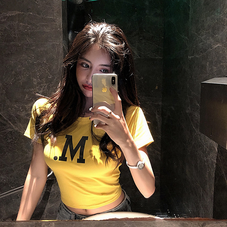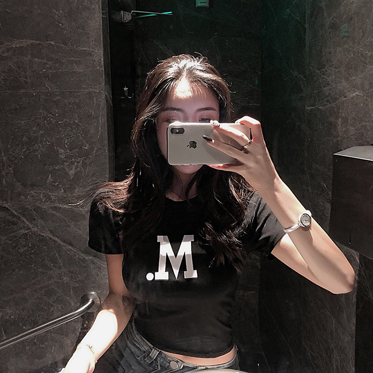 05#个性印花短款性感高腰露脐短袖夏露肚脐T恤女 双磨加厚牛奶丝