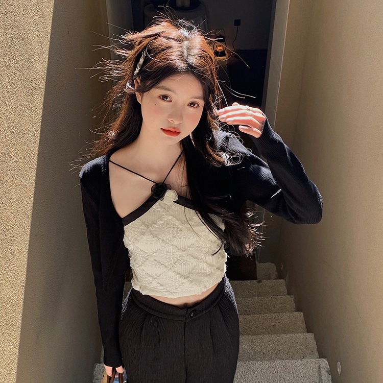 夏季短款纯色法式针织薄款挂脖吊带性感辣妹外穿露背加工定制上衣