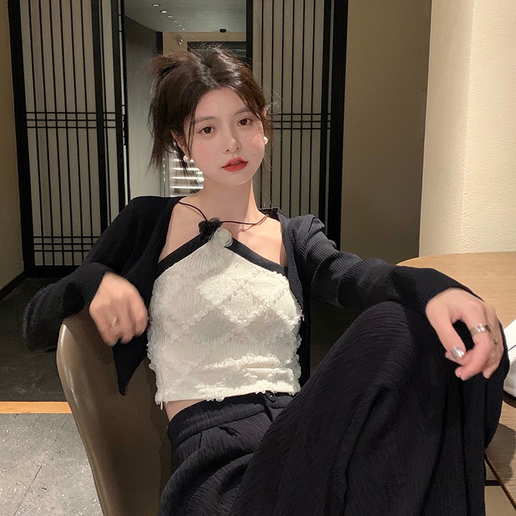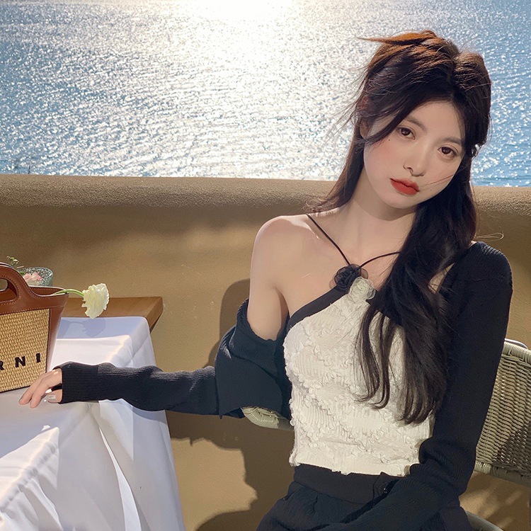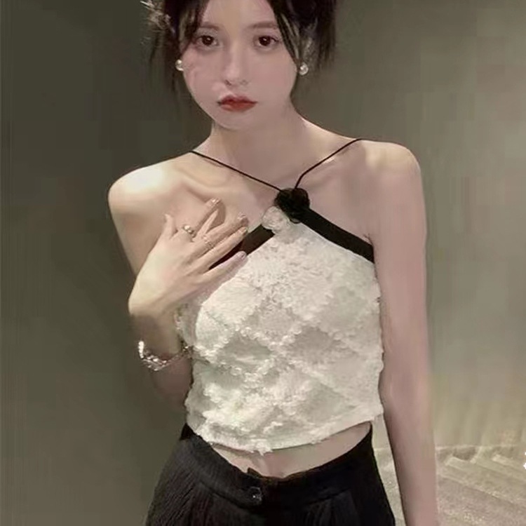 山茶花法式斜肩吊带背心女夏外穿小众设计感纯欲风挂脖小香风上衣